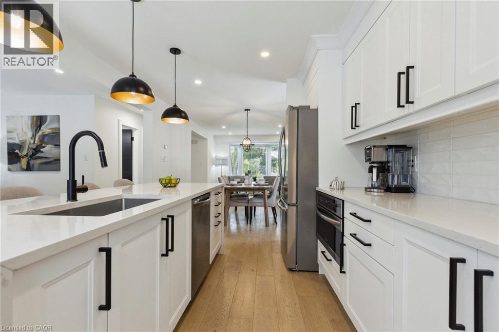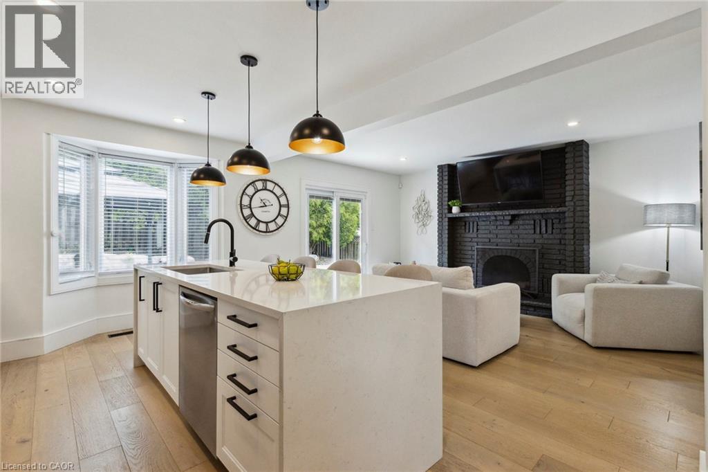 Welcome to the West End gem you've been waiting for where every detail is designed for real family living. Step into this beautifully reimagined 4-bedroom, 3-bathroom home in one of Guelphs most loved neighbourhoods. Fully renovated and thoughtfully updated, this home blends stylish modern finishes with functional spaces that truly work for how families live, gather, and grow today. Inside, you'll find a bright, open-concept layout with wide-plank engineered hardwood floors and a custom kitchen that makes both everyday meals and weekend entertaining a breeze. The show-stopping waterfall island is just waiting for pancake breakfasts and evening chats over wine.Two separate living areas including one with a cozy wood-burning fireplace give you the flexibility to create a playroom, reading nook, or a quiet space to unwind after bedtime routines.Outside, your private backyard oasis awaits. With nearly 400 sq ft of patio space, there is plenty of room for summer BBQs, cozy fire pits, or just watching the kids play. This is outdoor living, family-style. Upstairs, the spa-inspired primary suite is the retreat you didn't know you needed, complete with a huge walk-in closet and a luxury ensuite with a soaker tub, oversized glass shower, and double vanity.The finished lower level adds even more to love, including a dedicated work-from-home zone, bar area, and cold storage perfect for growing families or weekend guests.With newer mechanicals (Furnace 2023, A/C 2022, Water Softener & Water Heater 2023), all that is left to do is move in and make it your own.This isn't just a house its the backdrop for your families next chapter. Come see it for yourself and imagine the memories you'll make here. (69687158)