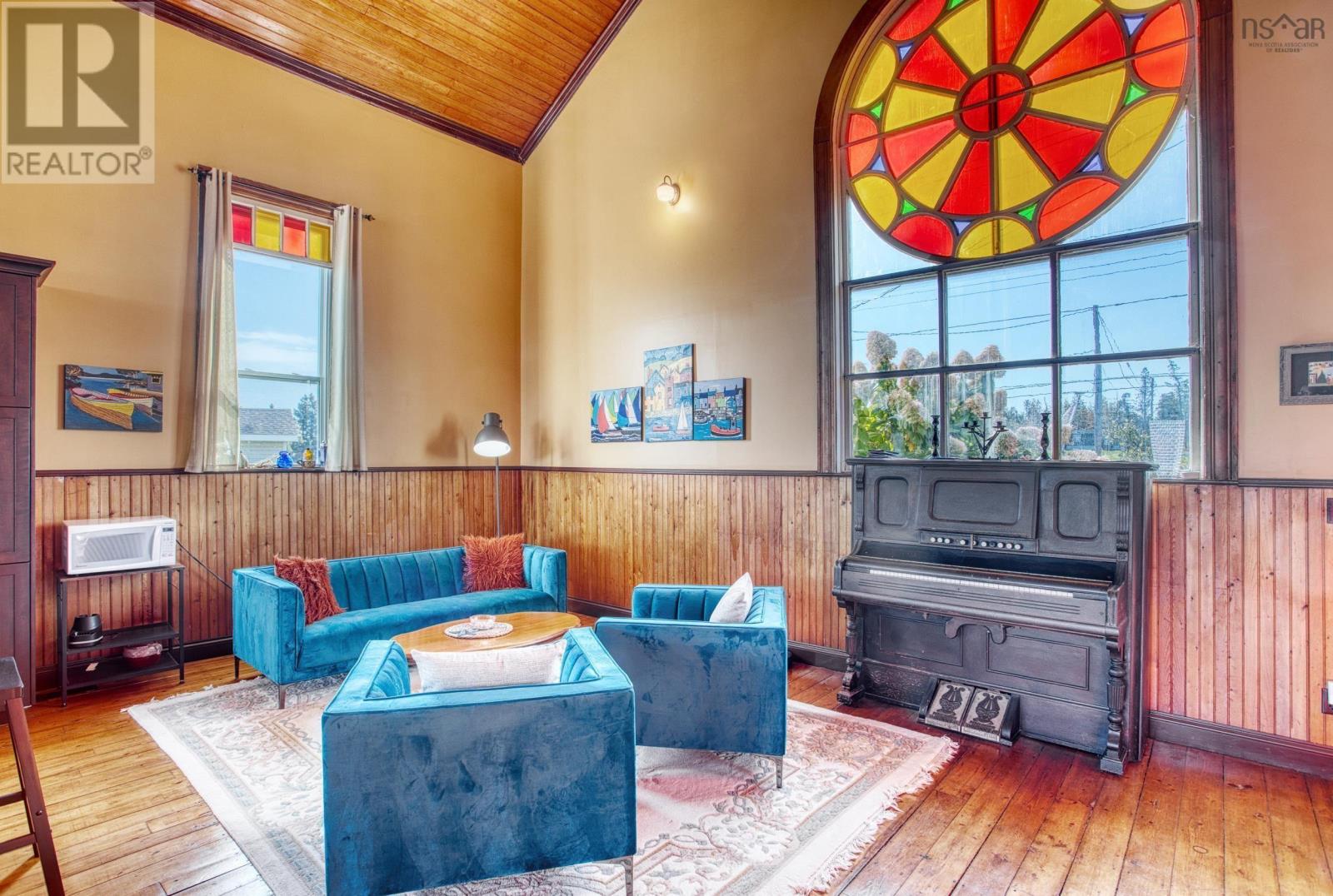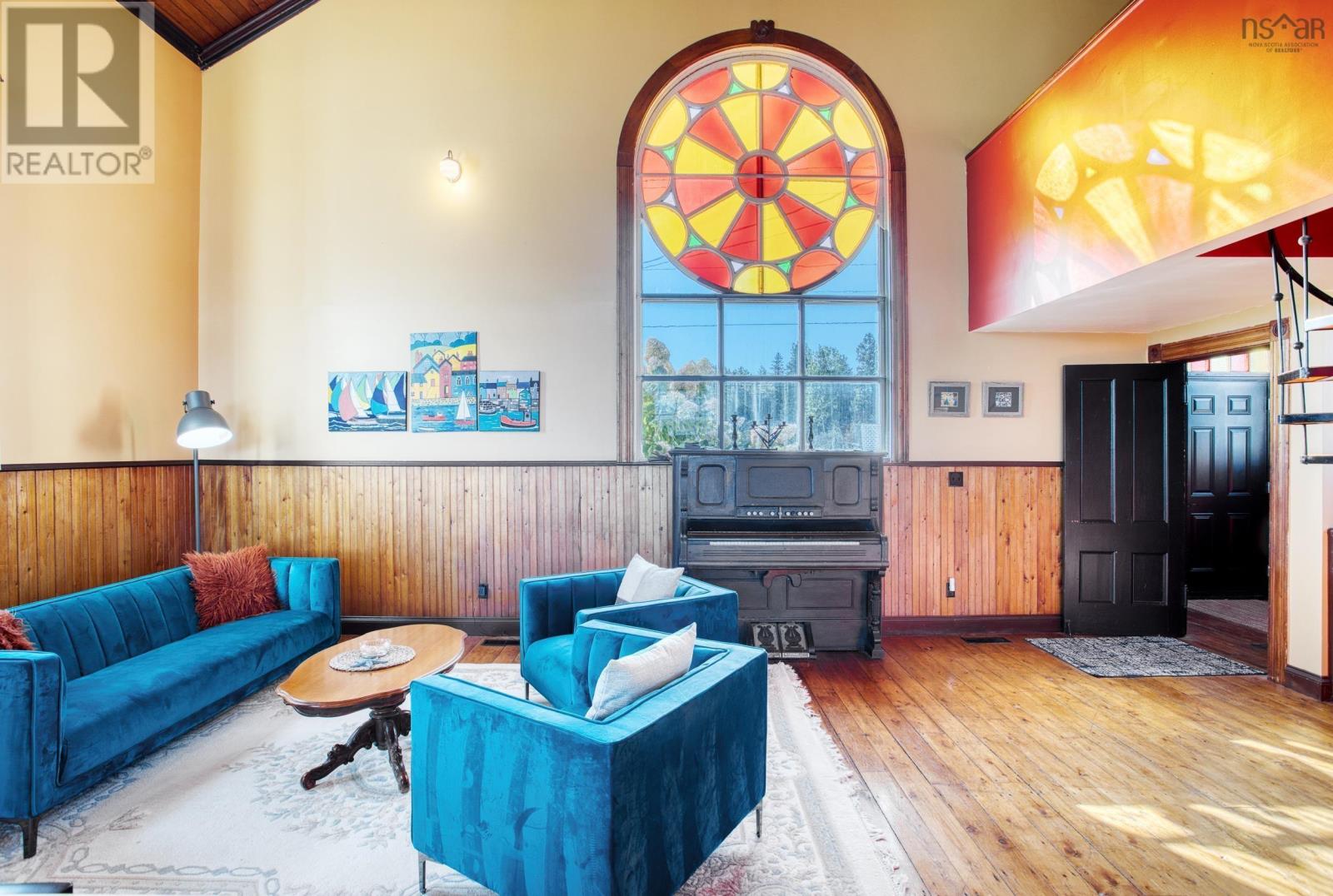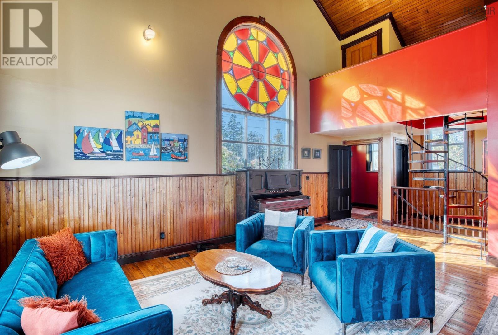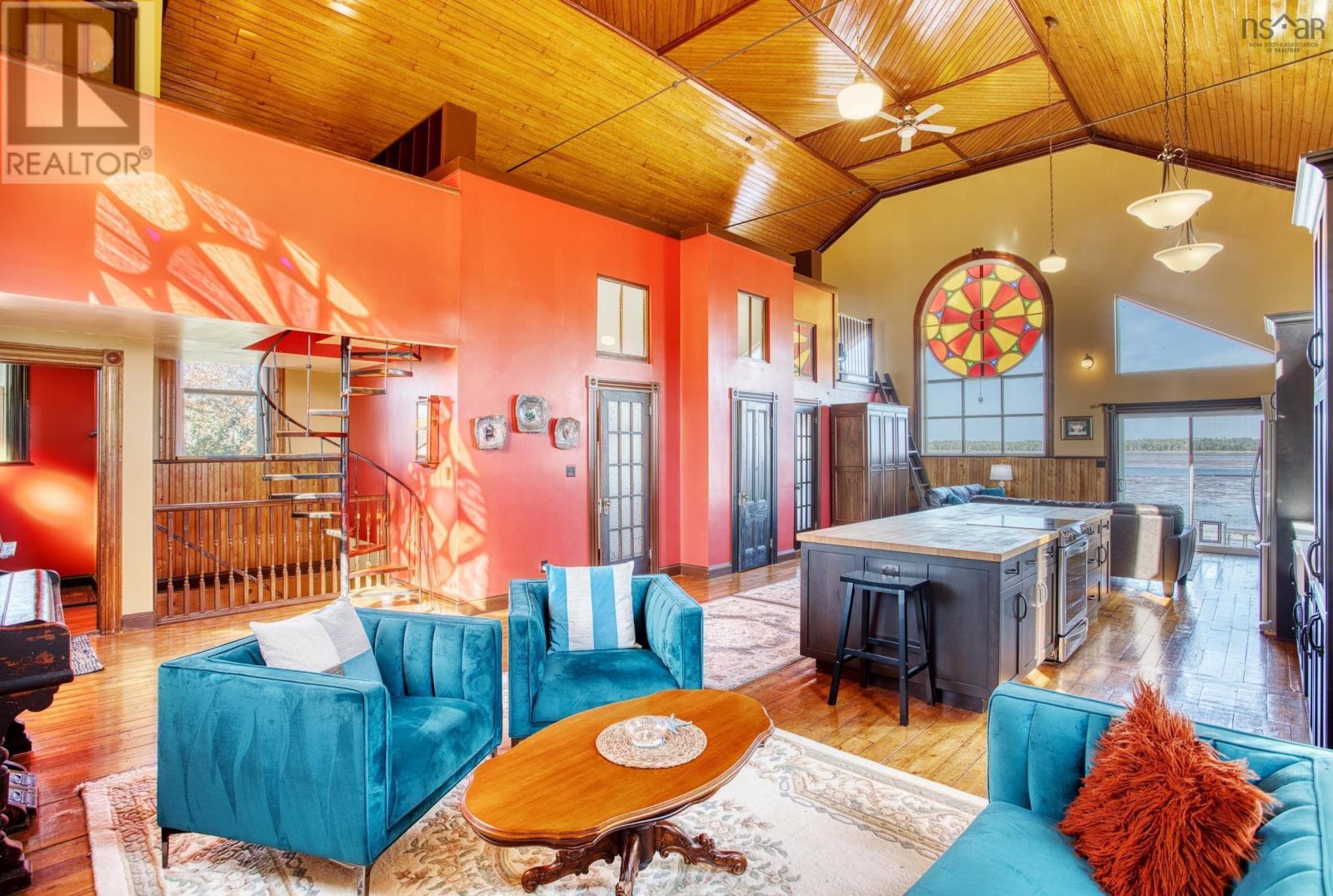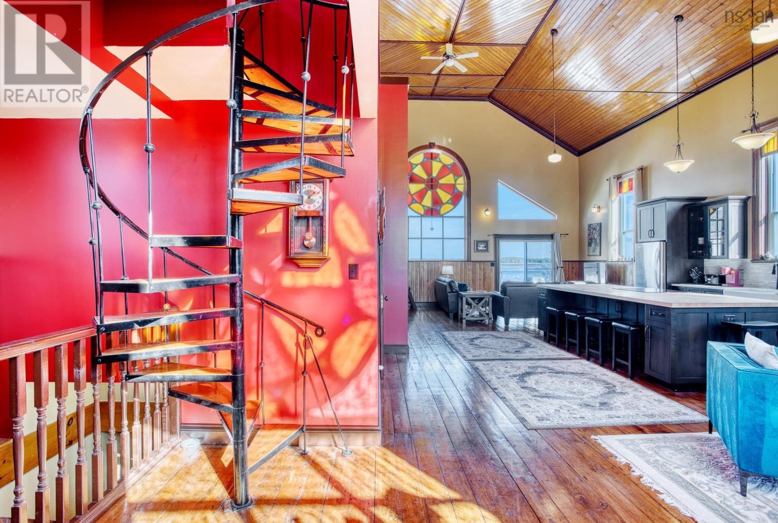 Discover a truly unique living experience in this magnificent church conversion that boasts breathtaking bay waterfront views. This one-of-a-kind property features a spacious two-bedroom layout with a charming bunk loft, perfect for family or guests. As you step inside, you'll be welcomed into a large foyer and enter into an open-plan living area that seamlessly combines modern elegance with historic character. The main attraction is the impressive custom kitchen, complete with a massive island, ideal for entertaining and culinary adventures. Refinished softwood floors add warmth and charm to the space. The three-piece bathroom features a generously sized custom-tiled shower. The defined living areas are filled with natural light, thanks to the large stained glass windows at either end, that highlight the floor to the peak vaulted ceilings. The basement currently accommodates a combined laundry and storage area, a den or office, and a utility room. All areas are defined by stud partitions and the walls are spray foamed and ready for finishing. One of the highlights of this property is the tiered deck accessible via patio doors, where you can relax and enjoy the mesmerizing ocean bay views. Multiple parking spaces are available, making this property an excellent short-term rental opportunity. Conveniently located near Fox Harbour golf course and the ski slopes of Wentworth, this church conversion is a slice of paradise for those seeking a unique blend of history, luxury, and coastal living. Don't miss the chance to make this exceptional property your own and wake up to the beauty of the bay every day. (231450154)