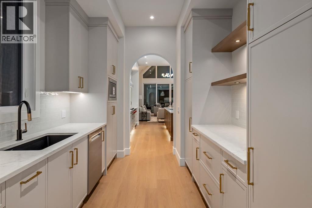 OPEN HOUSES Sat Jan 31st 4-6PM & Sun Feb 1st 12-2PM! Homes on this exclusive ridge rarely come to market, and this breathtaking two-storey estate is a shining example of elevated inner-city living. With 5,545.89 sq.ft. of exquisitely developed space, this 6 bedroom, 5.5 bath residence blends refined craftsmanship with functional luxury; set against a backdrop of sweeping valley and park views. Step inside to soaring ceilings, pristine engineered hardwood floors, and custom archway details that frame each thoughtfully designed space. The heart of the home begins in the sunlit dining area, perfect for hosting epic dinner parties, and highlighted by west-facing triple-glazed LUX windows. The adjacent chef’s kitchen impresses with stainless steel integrated appliances, including a Wolf gas cooktop, double wall ovens, classic white shaker cabinetry, and a hidden butler’s pantry for discreet prep and storage. The expansive great room invites relaxation with vaulted ceilings and a cozy microcement faced gas fireplace, opening directly to a sunny south-facing deck overlooking endless green space. A main floor guest suite (or executive office) with a private ensuite, a designer powder room, and a spacious mudroom with built-ins complete this level. The fully insulated triple car garage is EV-ready and lift-kit friendly, marrying form and function. Upstairs, a serene primary retreat features elegant vaulted ceilings, a custom walk-in closet, and a spa-inspired 5-piece ensuite with a soaker tub, dual vanities, and a glass shower with bench and niche. Three additional bedrooms (one with an ensuite), an upper laundry room with sink and storage, and a charming library nook provide comfort and convenience for the entire family. The fully developed basement is an entertainer’s dream: featuring a large media lounge, games area, wet bar with brick backsplash and undermount lighting, and a high calibre wine room that secretly accesses the highly systemized maintenance room. A versatil e home gym, sixth bedroom with walk-in closet, and additional full bathroom on this level ensure guests feel at home. Noteworthy highlights include: Hydronic in-floor heat in the basement; 2 High-Efficiency furnaces & A/C units; built-in speakers throughout; and quartz countertops in all bathrooms. Located minutes from the University of Calgary, Foothills Hospital, and local shops and restaurants, this timeless home sits in a top-tier school catchment and offers quick access to major routes while maintaining a tranquil, park-like setting. A truly unique opportunity to own a well-appointed, move-in ready home in one of the city’s most prestigious enclaves. (31191910)