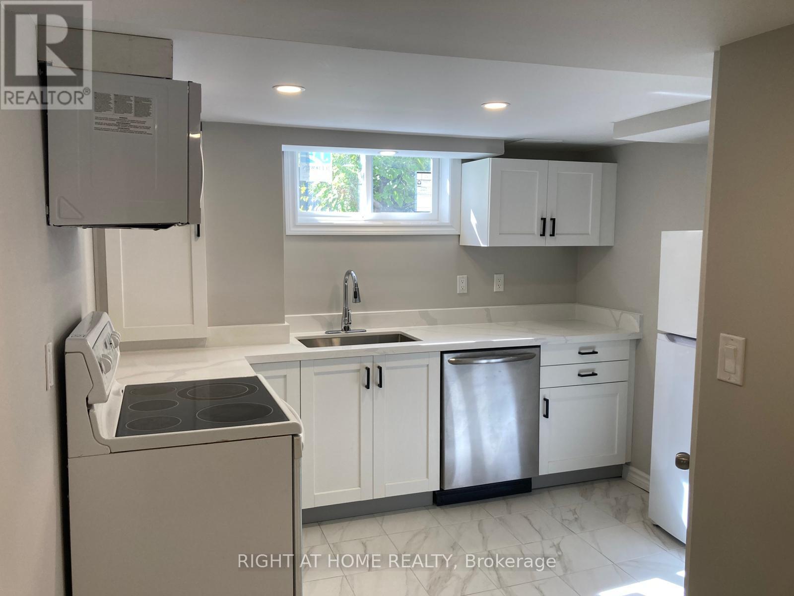 Very spacious and bright newly renovated basement apartment featuring 2 bedrooms, 1 bathroom, and a modern kitchen with brand-new cabinets, quartz countertop, dishwasher, microwave. This unit offers 3 brand-new sunshine-side windows, brand-new laundry, private entrance through the garage, and is carpet-free with new vinyl flooring and pot lights throughout. The bathroom has been upgraded with a new glass shower set, base, and plumbing. Comfort is ensured with brand-new central A/C, furnace, and an owned tankless water heater. Tenants pay 40% of water, hydro, gas, and internet. Two parking spots on the left side of the driveway are included. Conveniently located near schools, highways, and all amenities. No backyard access. Ready to move in! (41394831)