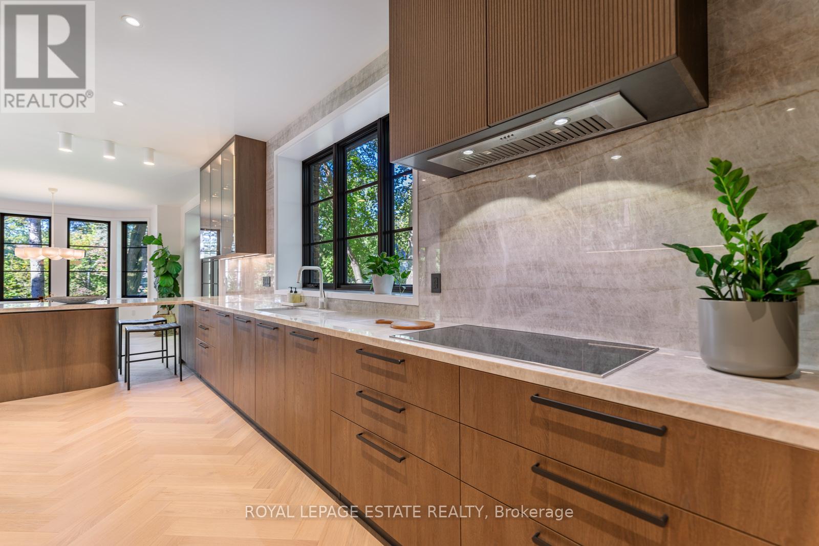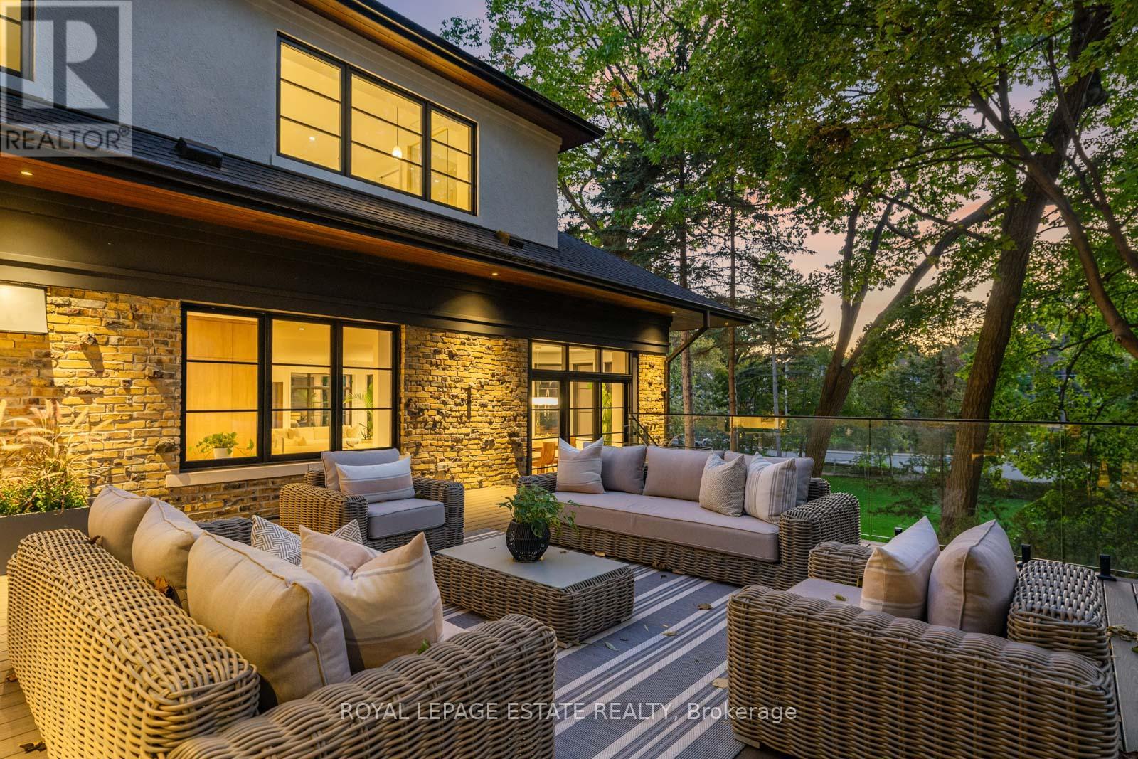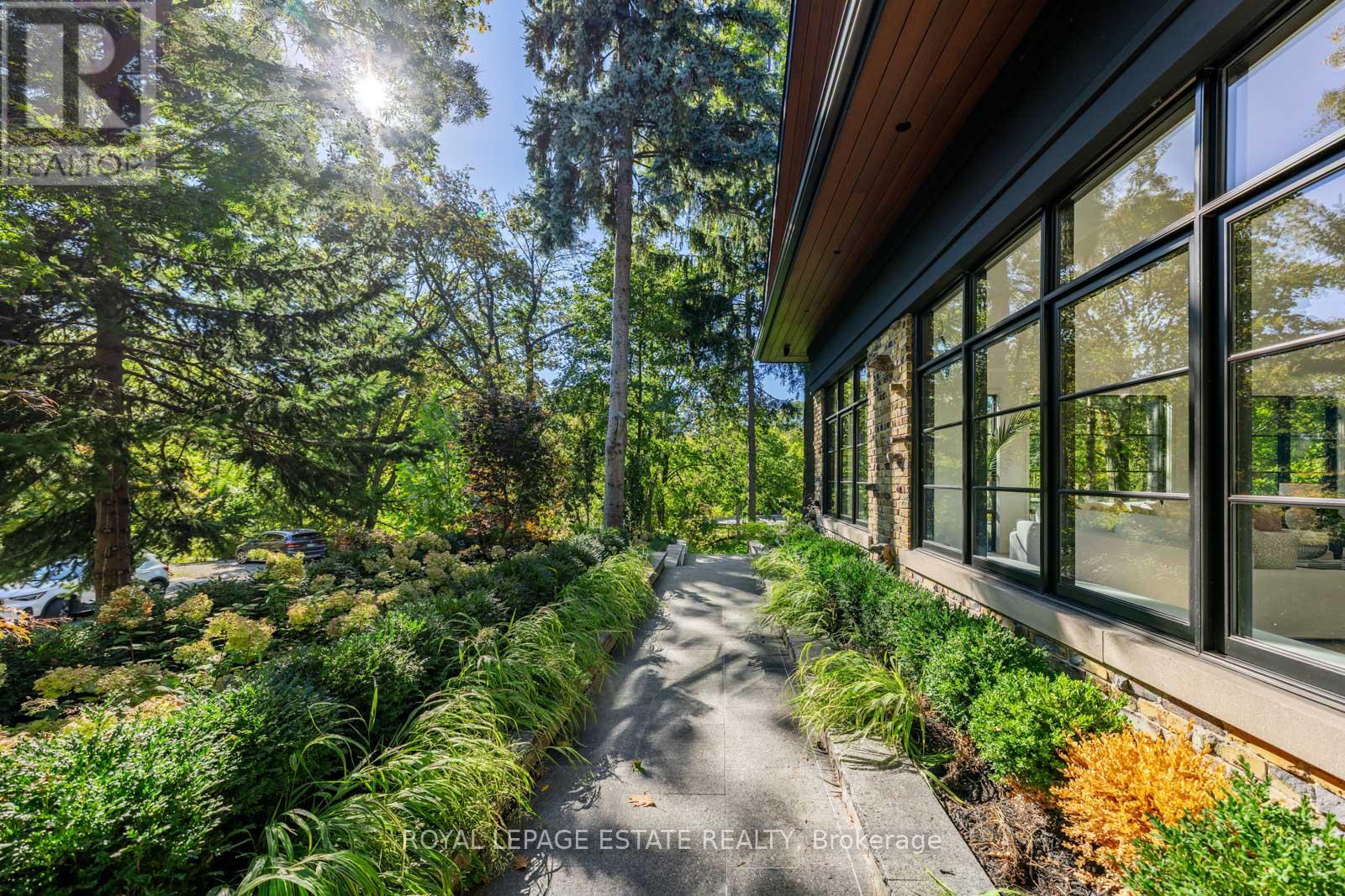 Completely restored and reimagined, Longwood House is a landmark estate in a coveted, private pocket of The Beach. Once the summer retreat of a 19th-century lumber baron, this iconic residence now stands as a masterful blend of historic grandeur and art-deco sophistication. Commanding nearly half an acre across two lots, 8 Crown Park Road sits privately perched at the end of a quiet cul-de-sac, surrounded by the lush beauty of Ivan Forrest Gardens and overlooking Glen Manor Drive and the Glen Stewart Ravine. Inside, the scale is breathtaking with three full levels, seven walkouts, and over 8,000 sq. ft. of living space (Main: 2,871 sq. ft. | 2nd: 2,425 sq. ft. | Lower: 3,074 sq. ft.). Every inch has been meticulously rebuilt with timeless craftsmanship and curated materials sourced from around the world: imported tile from Spain and South America, alabaster lighting in the living room, pantry, and bar, and three custom gas fireplaces wrapped in bespoke marble. The grounds are a private oasis. Over $1M in landscaping includes restored original brick (including rare clinker brick), solid wood soffits, a hydronic heated driveway, walkway, entry, and garage floor, a full-property irrigation system, Ebel stone retaining walls with granite caps, and an expansive rear terrace finished in black granite. Elegant, versatile spaces throughout offer both light and warmth from the stately foyer, sunlit dining room, and Scavolini millwork home office, to the gym, games' room, two wet bars, wine cellar, and in-law suite potential. With wall-to-wall windows framing lush ravine and garden views from every angle, Longwood House truly is The Crown of the Beach, your own private park in the heart of the city. (41427401)
