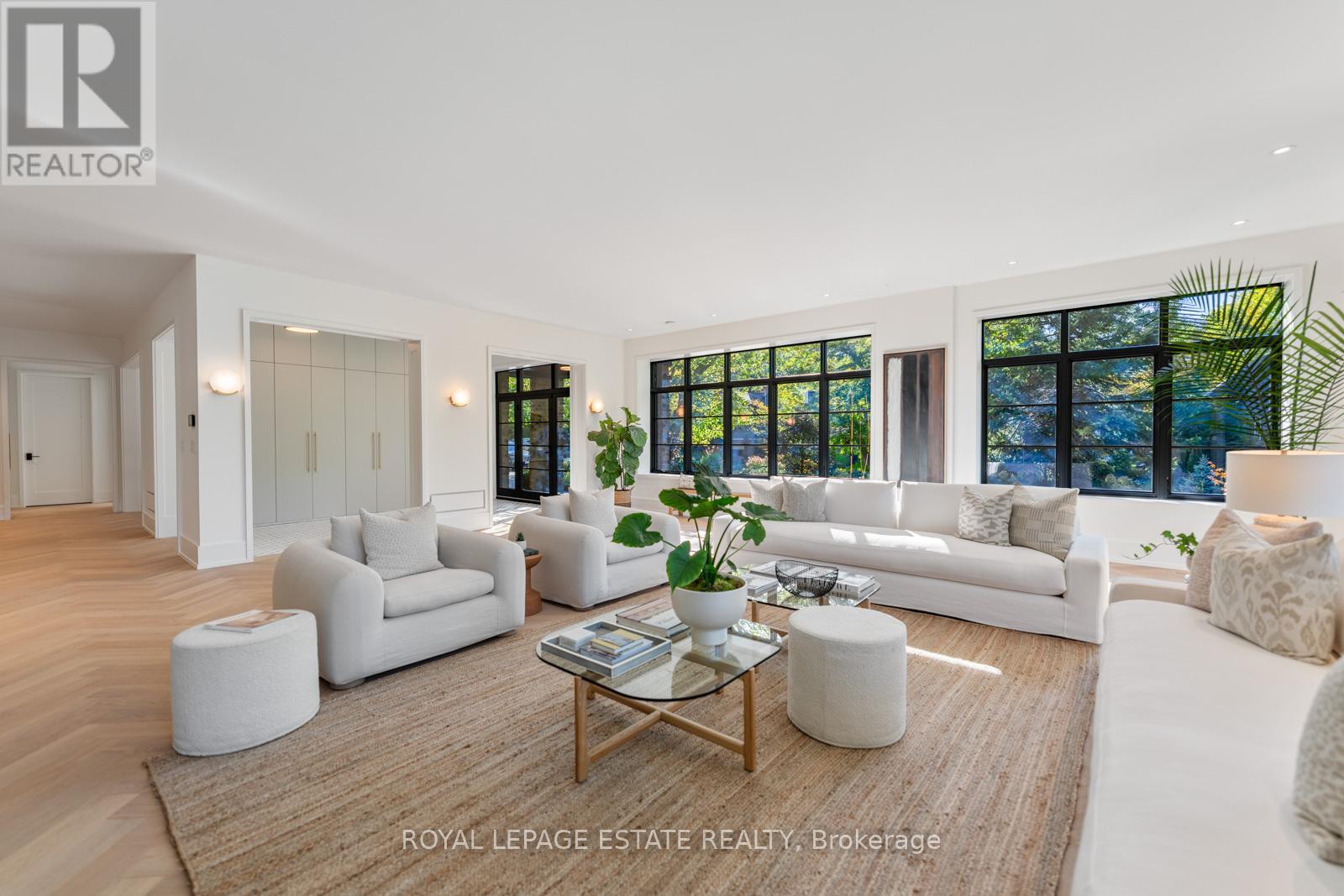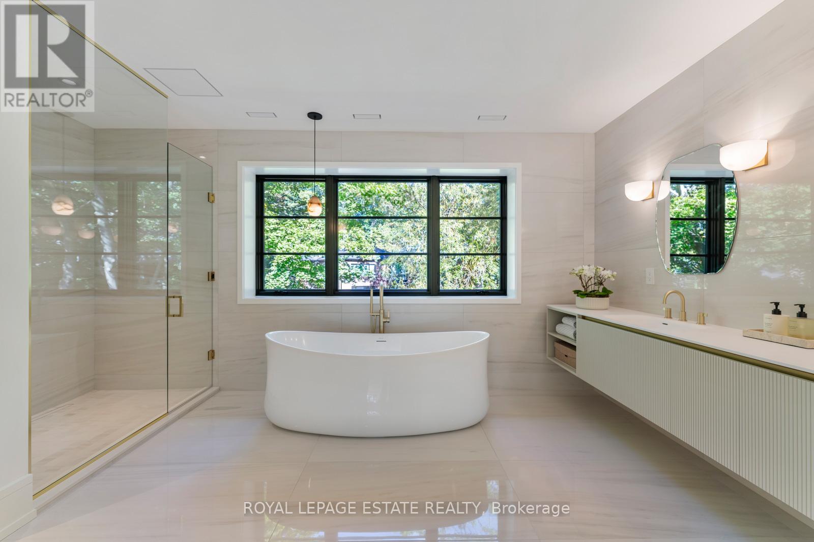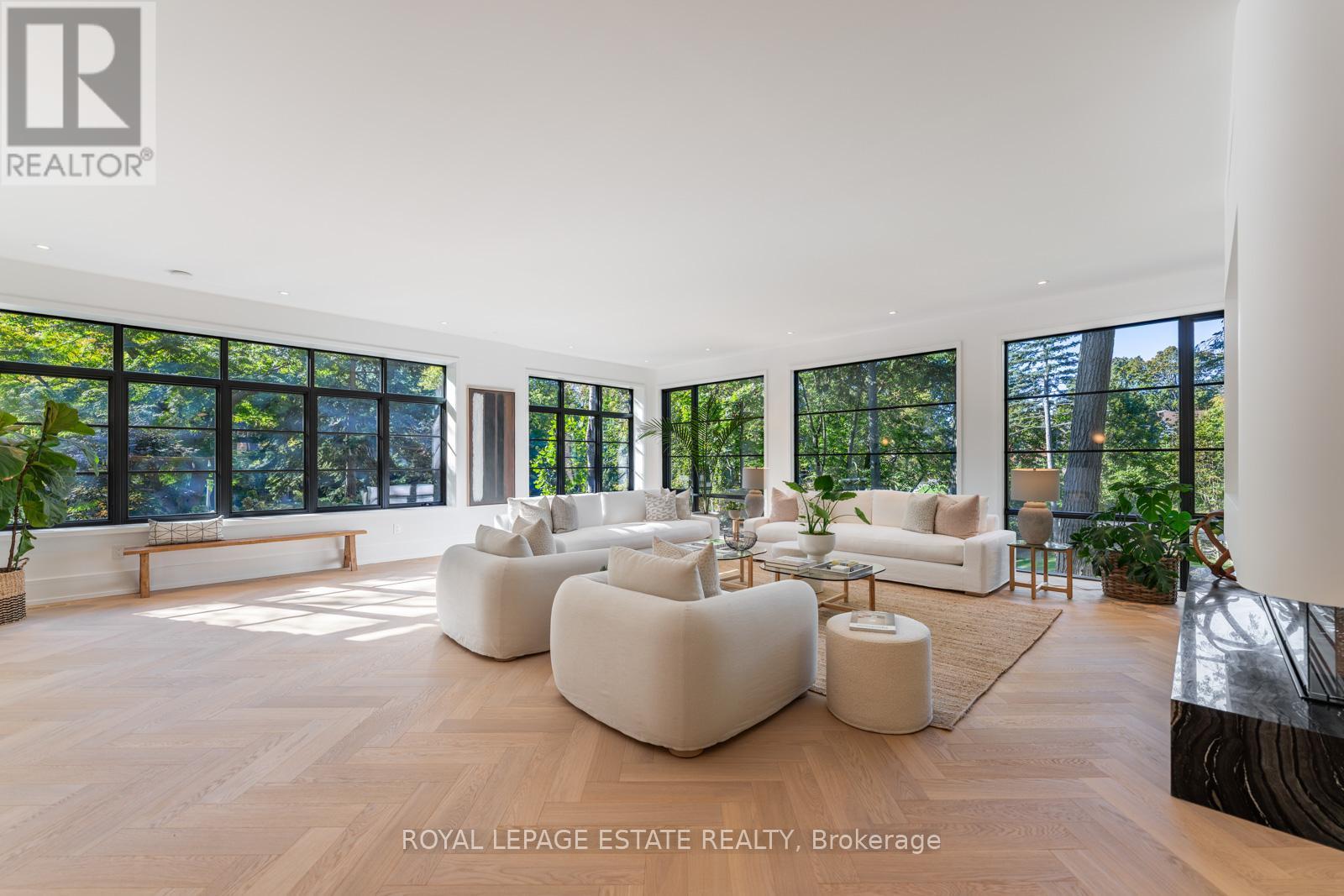 Completely restored and reimagined, Longwood House is a landmark estate in a coveted, private pocket of The Beach. Once the summer retreat of a 19th-century lumber baron, this iconic residence now stands as a masterful blend of historic grandeur and art-deco sophistication. Commanding nearly half an acre across two lots, 8 Crown Park Road sits privately perched at the end of a quiet cul-de-sac, surrounded by the lush beauty of Ivan Forrest Gardens and overlooking Glen Manor Drive and the Glen Stewart Ravine. Inside, the scale is breathtaking with three full levels, seven walkouts, and over 8,000 sq. ft. of living space (Main: 2,871 sq. ft. | 2nd: 2,425 sq. ft. | Lower: 3,074 sq. ft.). Every inch has been meticulously rebuilt with timeless craftsmanship and curated materials sourced from around the world: imported tile from Spain and South America, alabaster lighting in the living room, pantry, and bar, and three custom gas fireplaces wrapped in bespoke marble. The grounds are a private oasis. Over $1M in landscaping includes restored original brick (including rare clinker brick), solid wood soffits, a hydronic heated driveway, walkway, entry, and garage floor, a full-property irrigation system, Ebel stone retaining walls with granite caps, and an expansive rear terrace finished in black granite. Elegant, versatile spaces throughout offer both light and warmth from the stately foyer, sunlit dining room, and Scavolini millwork home office, to the gym, games' room, two wet bars, wine cellar, and in-law suite potential. With wall-to-wall windows framing lush ravine and garden views from every angle, Longwood House truly is The Crown of the Beach, your own private park in the heart of the city. (41427401)