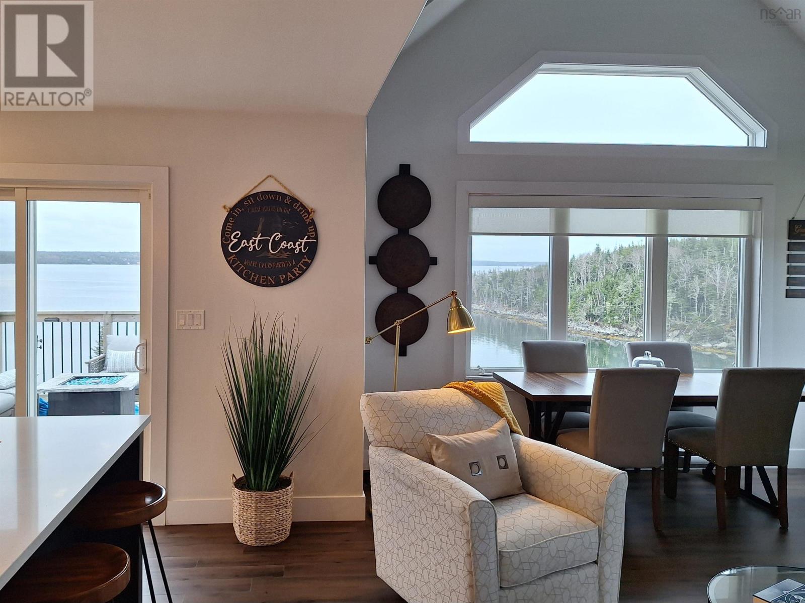 Wake up to panoramic ocean views! Perched high above the sparkling waters of Jeddore Harbour, this 4 year young Stonewater masterpiece offers a lifestyle of luxury and tranquility in the prestigious Jeddore Shores Community. With 2.4 acres of MU-zoned land and 126 feet of private waterfront, the possibilities are endless, whether you're dreaming of a dock, a boathouse, or simply a serene and naturally beautiful landscape to the water's edge. Step inside to discover a thoughtfully designed 3 bedroom, 2.5 bathroom home where every detail speaks of quality. The chefs kitchen features quartz countertops, a large island perfect for entertaining, and a propane cooktop. The main floor primary suite is a true retreat, while the walkout lower level offers a cozy den with breathtaking views that stretch across the harbour. Additional highlights include: Propane fireplace for cozy evenings Ductless heat pump for year-round comfort Expansive driveway with ample parking Generous storage on all levels The vibrant local community is a hidden gem, with charming shops, seasonal events, and a strong support for small businesses. Summer and fall bring the town to life, an ideal time to explore, connect and become involved personally and in business. For a full list of features, please refer to the About the Home document. (231508602)