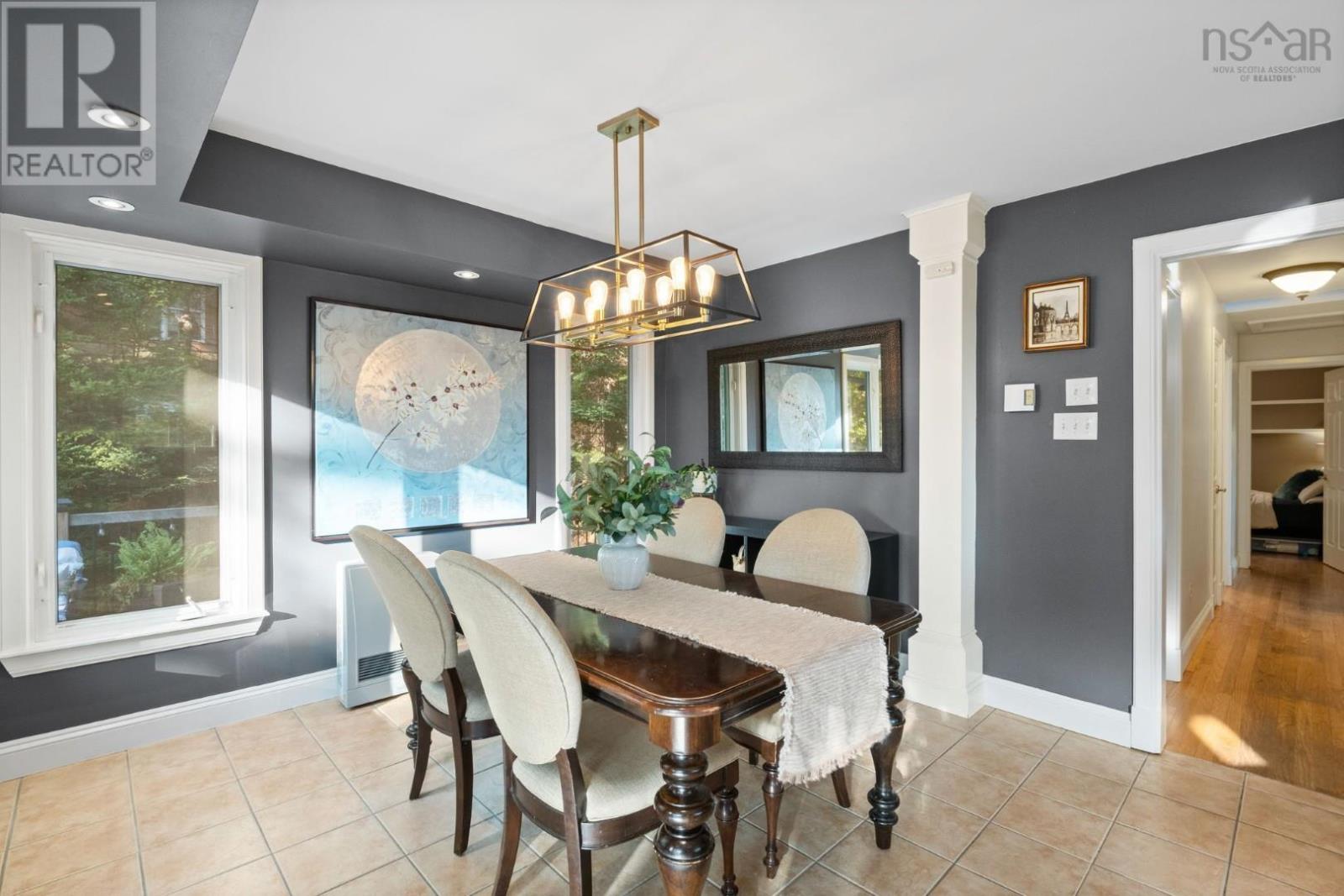 Set quietly on a large, tree-canopied lot in the heart of Bedford, 15 Merrill Drive feels worlds away from the city - yet it's just minutes from everything. This re-imagined raised bungalow blends timeless character with thoughtful design, creating a one-of-a-kind home thats both flexible and inspiring. The welcoming entry opens to a bright main living area where natural light flows across hardwood floors and a classic fireplace anchors the room. From here, glimpses of the Bedford Basin remind you that this is no ordinary property. Two well-proportioned bedrooms on the main level - including one tucked privately to the side with its own half bath - offer versatility for family or guests. A beautifully updated full bath completes the wing. At the back, the home opens into an exceptional addition - a warm, open-concept space that brings everyone together. The dining area sits beneath a subtly dropped ceiling with accent lighting, leading to a stunning kitchen with shaker cabinetry, granite counters, subway tile backsplash, and a walk-in pantry. A cozy reading nook overlooks mature trees and the private yard beyond - a perfect retreat for morning coffee or quiet reflection. Upstairs, the entire top floor is devoted to a breathtaking primary suite. Sunlight pours through windows on all sides, capturing Basin views and a sense of calm thats hard to describe. The suite features a walk-in closet, spa-inspired ensuite with double vanity, soaker tub, and walk-in shower, plus a charming widows walk - an intimate spot to pause and take in the day. The lower level continues the theme of flexibility with a bright rec room, fourth bedroom, office, full bath, laundry, and built-in garage. Step outside and youre enveloped in privacy - new roof shingles (2025) a spacious deck, side yard, and mature trees creating a peaceful urban oasis. 15 Merrill Drive is a home that stands apart - a blend of comfort, character, and lifestyle that you wont find anywhere else. (231511962)