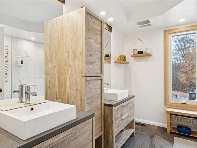 WOW! Beautiful bungalow on 2.7 acres in La Pêche, featuring 3 bedrooms, 2 bathrooms, and an open-concept layout with hardwood floors. Renovated kitchen with ample storage, separate laundry room, and large double garage. Exterior highlights include interlock and flagstone driveway, front and back decks, Jacuzzi hot tub on stone patio, and a private tennis court. Direct Gatineau Park access, just 5 minutes from Lac Philippe Beach (season pass available). Central heat pump. A peaceful and elegant retreat! (41671700)