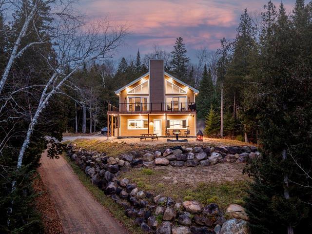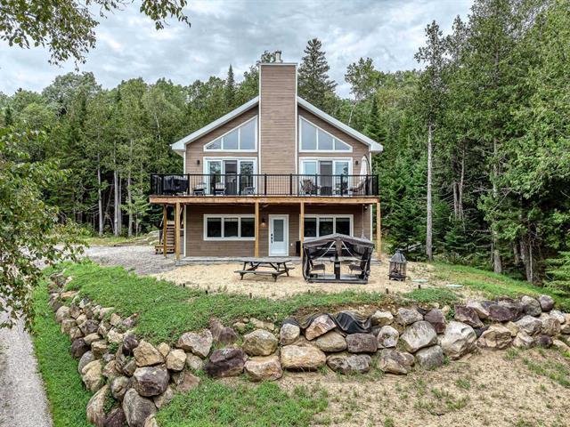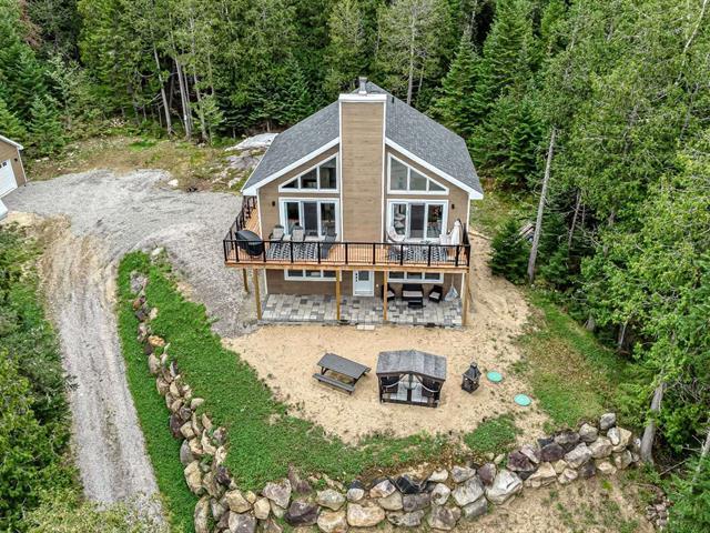 Cette splendide maison en hauteur est un véritable havre de paix, idéale pour ceux qui recherchent à la fois le confort moderne et la beauté de la nature. Elle vous offre 3 chambres à coucher, 2 salles de bain, plancher chauffant pour tout le RDC et salle de bain au 2e étage, beaucoup d'espace de rangement, fenestration remarquable, foyer au bois, toit cathédrale, aire ouverte, garage chauffé, terrain de 40 041 pc et tout près des sentiers pédestres, du lac Taureau, de la Baie Dominique (et plage), de la marina et du village ! Une prise pour borne pour voiture électrique a été ajoutée ! Une visite vous convaincra, le bonheur est ici ! (39057160)