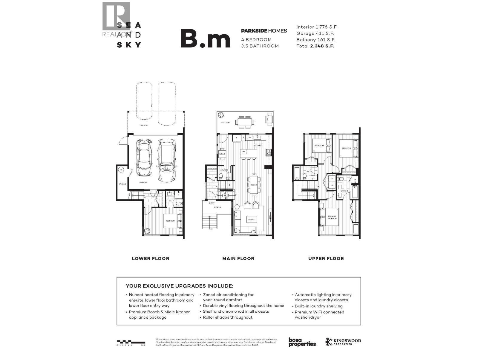 Last chance to own the most coveted floor plan at SEAandSKY! This final CORNER "B" plan home of the Parkside collection is located along the shoreline community park and has incredible views of the blind channel on one side and the Chief on the other. Premium upgrades include - air conditioning, Bosch & Miele appliances, heated entryways and ensuite washrooms, premium washer/dryer, vinyl flooring throughout and more. DOUBLE CAR garage with parking for 2 more vehicles on the driveway. Steps away from the future 19,000 square ft Activity Centre and pedestrian bridge to downtown. The bridge is nearing completion! Don't miss your opportunity to own the most desirable floor plan in the best location at SEAandSKY. (32077852)