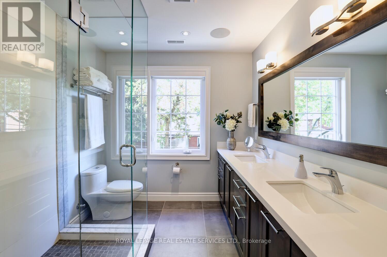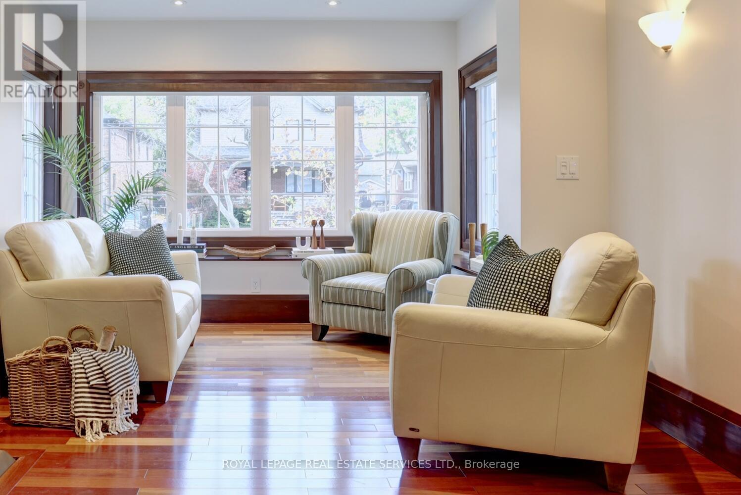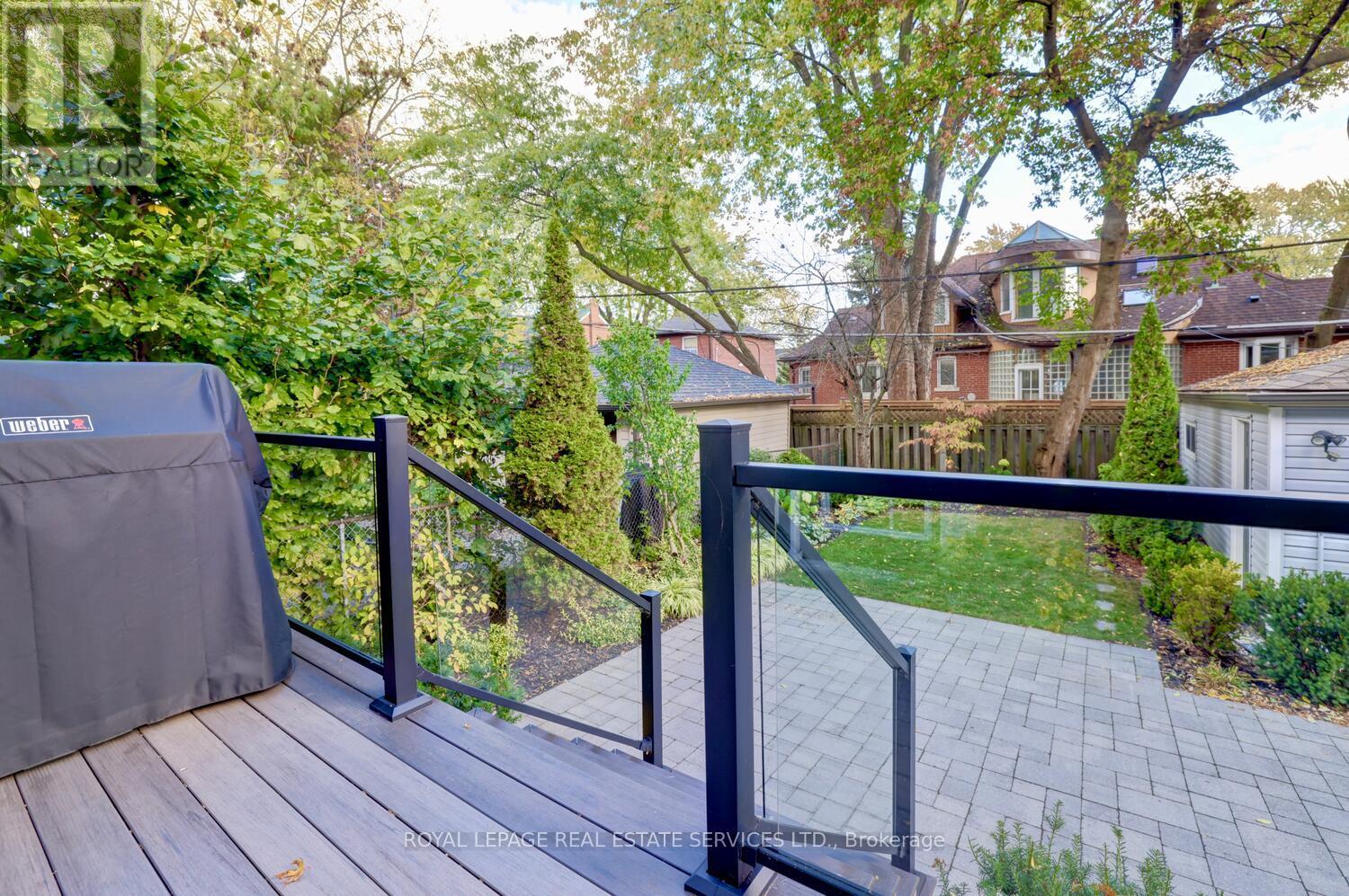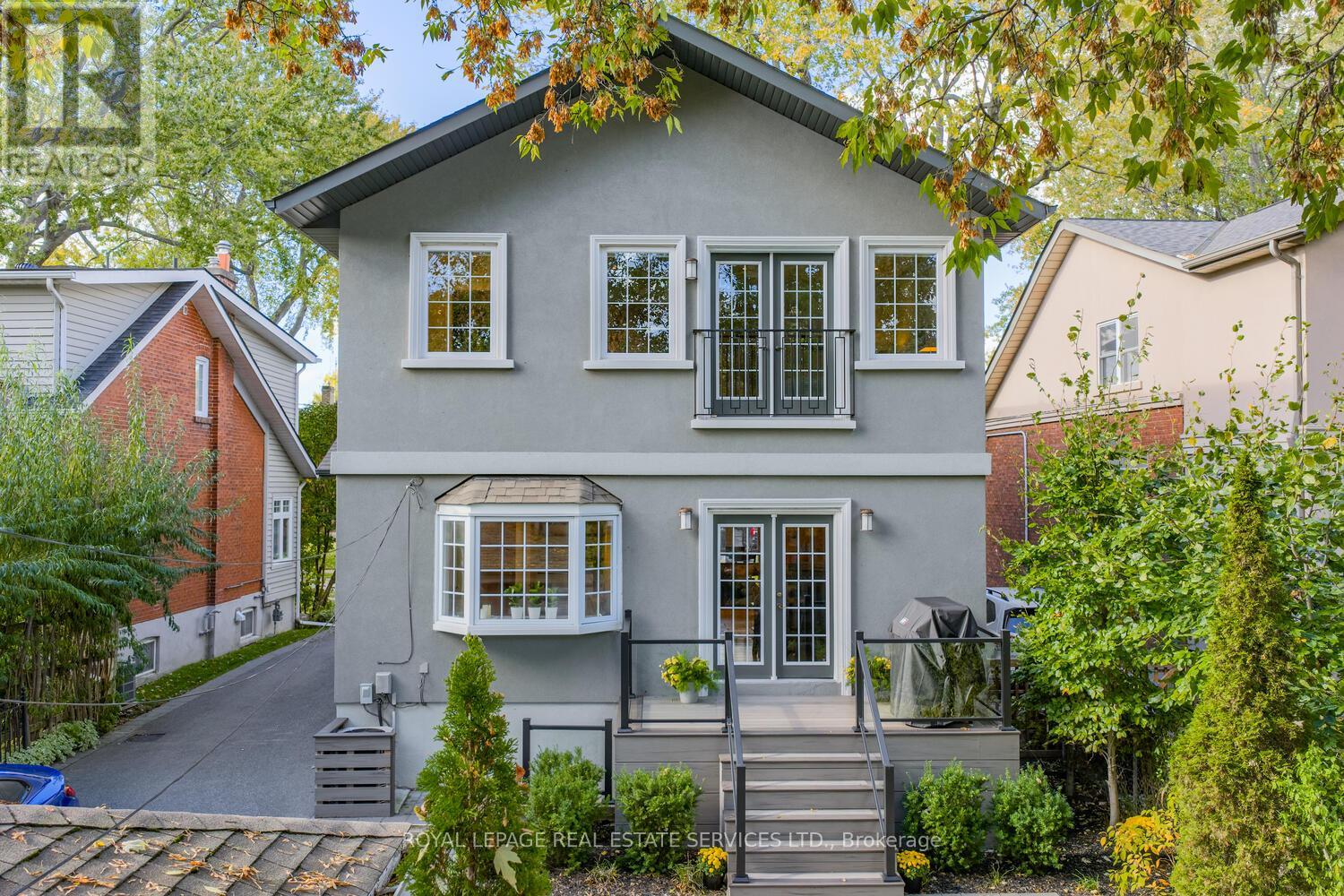 Beautifully located on a prime 40 x 110 foot lot on one of the most sought-after tree-lined Lakeside streets in "Olde Mimico," this two-storey home offers almost 3000 sqft of living space. The yard is professionally landscaped w/ gorgeous gardens, interlocking walkways & patios, deck wrapped in composite w/ glass railings, a private garden, & a long, private paved driveway that accommodates 7 cars & leads to a detached 2 car garage w/ electrical power.The interior is beautifully appointed throughout, 3 + 1 bedrooms, 4.5 baths, & offers lots of great living space. On the main floor, the living & dining room features classic wood details, a window wrapped den, a wood burning fireplace & more. The large eat-in kitchen provides generous counter & cupboard space. The kitchen is well equipped w/ granite countertops & stainless steel appliances. The eat-in area has a double door walkout to deck/patio & family room w/ a large bay window overlooking the garden & includes a powder room. An elegant wide staircase leads to the second floor, where you'll find three bedrooms, including a luxurious primary suite w/ a large walk-in closet, & a beautiful 4-piece ensuite. The other two bedrooms overlook the front yard & have ample closet space. The main bathroom is a stunning 3 piece bathroom.The fully finished basement presents flexible living options & can easily be converted to a suite w/ it's own separate entrance, w/ 2 elegant bathrooms, a 3-piece & a 5 piece, tile flooring, pot lighting, rough-in kitchen/bar area & large rec room, a fourth bedroom w/ wall to wall closets for ample storage, a laundry room w/ sink & a furnace room complete the lower level. Located just steps from the lake, schools, parks, trails, library, & top-rated restaurants - This home is a rare opportunity in a coveted neighborhood. Excellent access to public transit, major highways, Toronto's Airports & downtown make this an ideal location for those seeking both convenience and tranquility. (41498357)