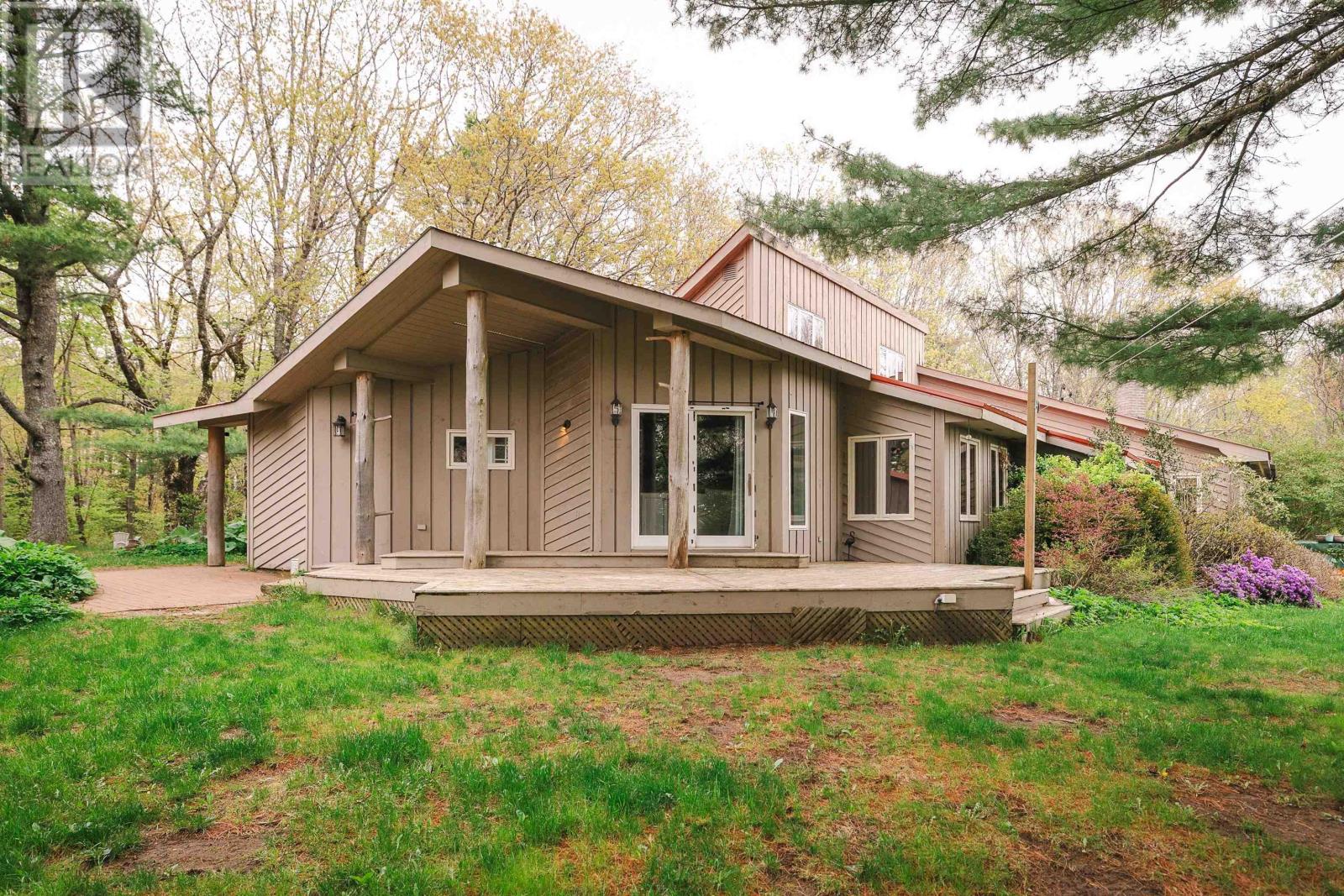 COUNTRY SERENITY, ACREAGE, RIVERFRONT. Located on almost 22 acres of field, forest, trails, with 800' of direct frontage on the Gold River. This location in Chester Basin near the main route between the South Shore and the Valley, is ideal for those wanting a home with lots of privacy close to conveniences. The original log home has had two additions over the years, features a chef's delight kitchen, hardwood floors, living room with vaulted ceiling and efficient wood stove insert, sun room and main floor primary suite. The property offers a bunky for a studio, spacious workshop, outdoor shower a serene location in the midst of nature close to conveniences. (231556126)