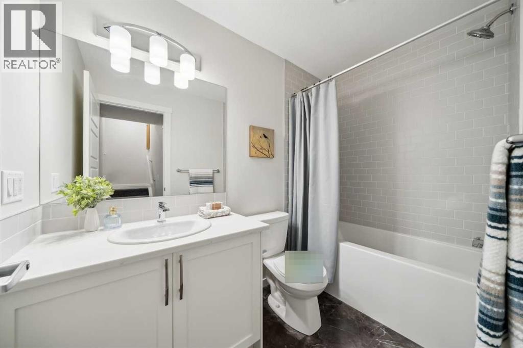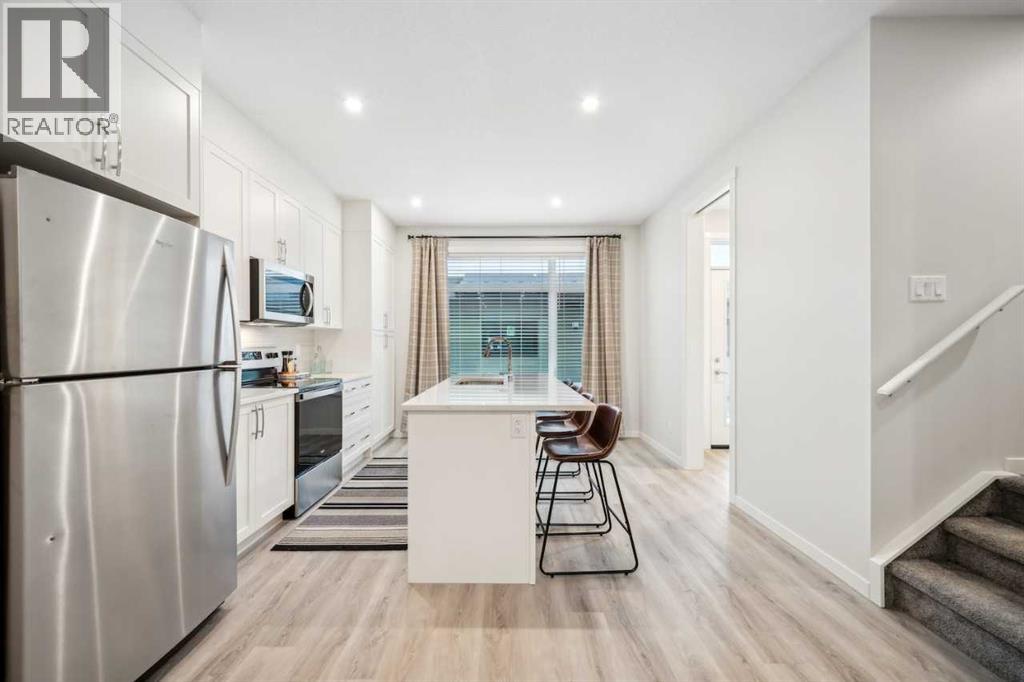 Welcome to ZEN Greystone, a vibrant and walkable community in the heart of Cochrane. This beautifully designed 3-bedroom, 2.5-bath townhome offers 1,434 sq. ft. of modern living space. The open-concept main floor features a spacious kitchen with stainless steel appliances, quartz countertops, and a large island that flows into the dining and living areas — perfect for entertaining. Upstairs, the primary bedroom includes a walk-in closet and an ensuite with a double vanity, while two additional bedrooms, a full bath, and upper-floor laundry provide everyday convenience. (31311463)