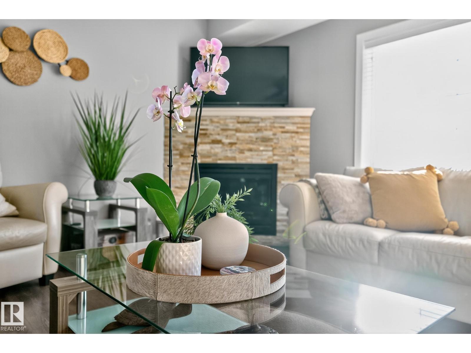 Recently Renovated! This 1739 sqft 2 bed, END UNIT TOWNHOUSE has 4 bathrooms! Located in South Terwillegar includes HEAT & WATER in the condo fee. Open Concept Main Floor boasts a Gourmet kitchen w/high-end appliances, Spacious Peninsula Kitchen, Cherry Wood Cabinets, and an abundance of drawers/cabinets throughout. Patio door access off kitchen to balcony (w/ gas-line). Air Conditioning. Large south facing windows for natural sunlight throughout. The Living Room and main floor has Stone Faced f/p, with newer luxury vinyl plank flooring, dining area & 9 ft ceilings and main floor laundry. Upstairs features large master w/16 ft loft ceiling, walk-in closet & 4-piece ensuite w/ soaker tub. Additional bedroom features a large walk in clodet & 4 piece bath completes the second floor. Recently renovated finished basement. ATTACHED SINGLE GARAGE, additional parking on outside pad - visitor parking steps from unit. Walking to spray park, public transport, shops & amenities. Quick access to Anthony Henday! (33519218)
