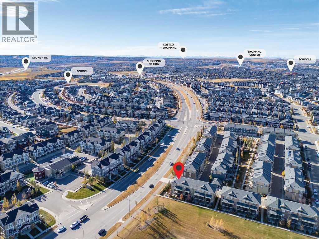 Discover the perfect blend of style, comfort, and luxury in this spectacular end-unit townhome perfectly positioned to capture beautiful green space views in the highly desirable community of Evanston. With 3 spacious bedrooms plus a versatile den, 2.5 bathrooms, a double attached garage, and high-end designer upgrades throughout, this home offers the ideal combination of elegance and practicality — all in impeccable condition. From the moment you arrive, you’ll be greeted by stunning curb appeal and a meticulously landscaped, enclosed front patio — a serene outdoor space that sets the tone for what’s inside. Step through the front door into a flexible main-level den, perfect for a home office, creative space, or playroom. This level also provides direct access to the double attached garage, ensuring comfort and convenience year-round. The main living area is open, bright, and beautifully designed to make the most of every inch. Expansive windows flood the space with natural light, highlighting the modern finishes and creating an inviting atmosphere that’s perfect for relaxing or entertaining. The living room flows seamlessly into a dining area and a chef-inspired kitchen that will take your breath away. The gourmet kitchen features custom full-height cabinetry, quartz countertops, a designer tile backsplash, stainless steel appliances, a corner pantry, and a large central island that’s perfect for hosting friends or preparing meals for your family. Whether you’re cooking a quick breakfast or entertaining guests, this kitchen delivers in both function and style. Off the living room, step onto your private balcony overlooking the lush green space — a peaceful retreat with no homes directly in front, offering a rare sense of privacy and tranquility. Upstairs, the primary suite is a true sanctuary, complete with a walk-in closet and a luxurious ensuite bathroom featuring contemporary fixtures and finishes. Two additional bedrooms provide plenty of space for family memb ers or guests, and a full main bathroom plus convenient upper-level laundry make daily living effortless. This home is loaded with premium upgrades, including central air conditioning, luxury vinyl plank flooring, modern lighting fixtures, and custom window coverings. Every detail has been thoughtfully curated to create a sophisticated, move-in-ready home that feels both stylish and comfortable. Evanston is one of Calgary’s most vibrant and family-friendly communities, known for its excellent schools, scenic parks, walking paths, and an abundance of nearby amenities. You’ll be just minutes from shopping centers, restaurants, coffee shops, and fitness facilities, with easy access to Stoney Trail and 14th Street NW for quick commutes anywhere in the city. (31334242)
