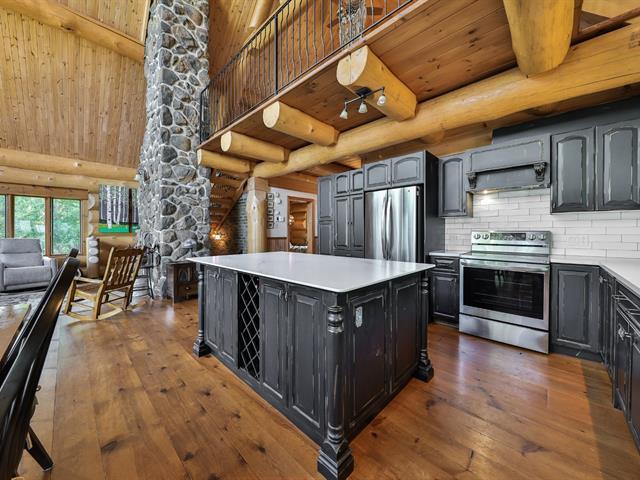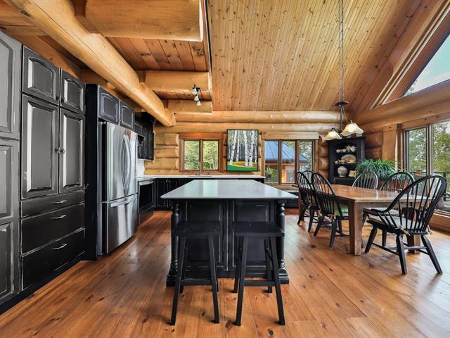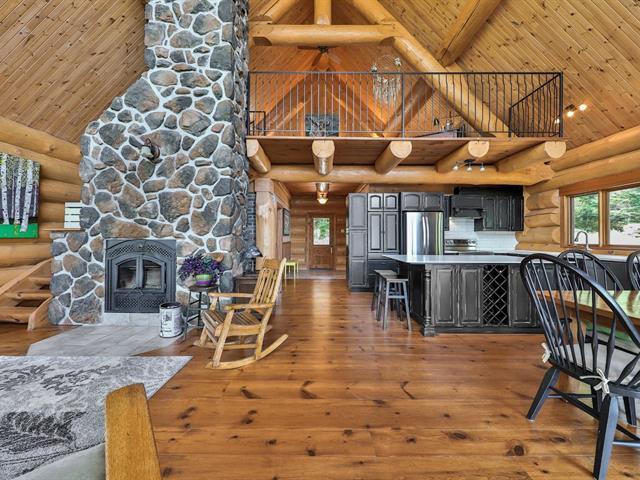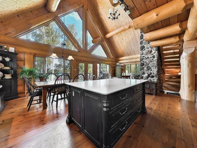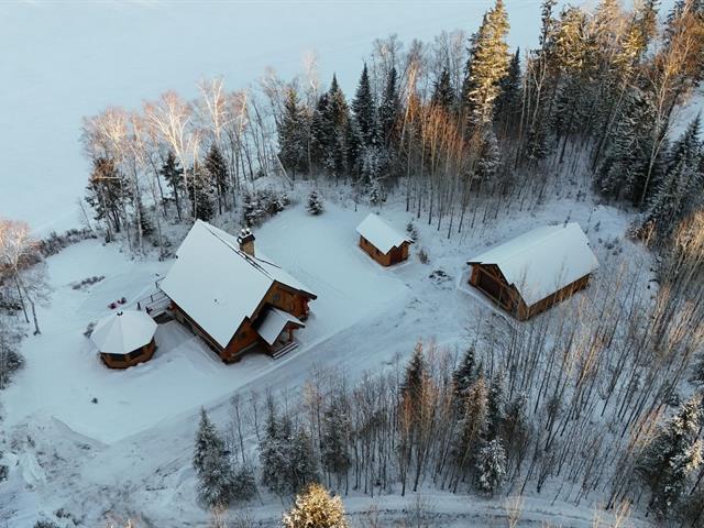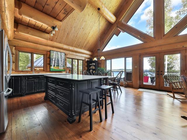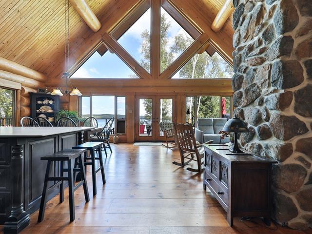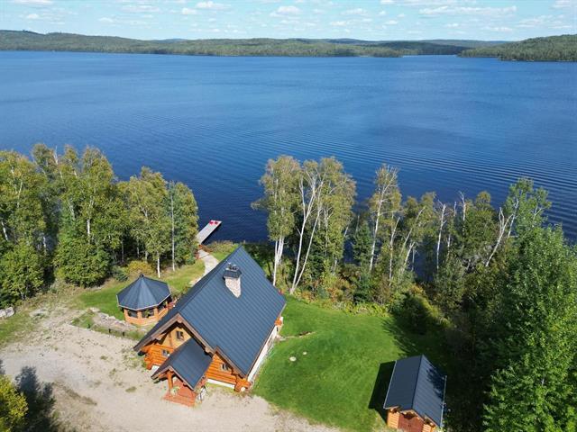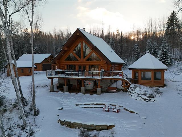 Welcome to 10 Ch. des Cantonniers S. This charming Scandinavian wooden house offers a magnificent view of the lake thanks to its large windows. Outside, a large gallery leads to an octagonal gazebo. The garden level includes a family room with fireplace, a bedroom and a bathroom. The heated double garage and the shed are built in logs. Everything is powered by a 60 kW generator. Located near the Lac Taureau reservoir, the property is ideal for outdoor enthusiasts, with access to beaches, hiking, snowmobiling and mountain biking. We look forward to showing you around! (40983765)