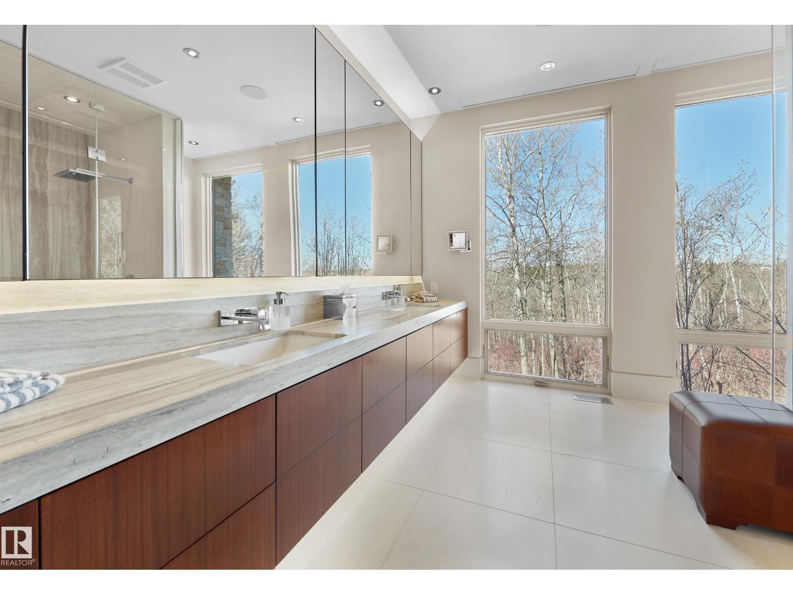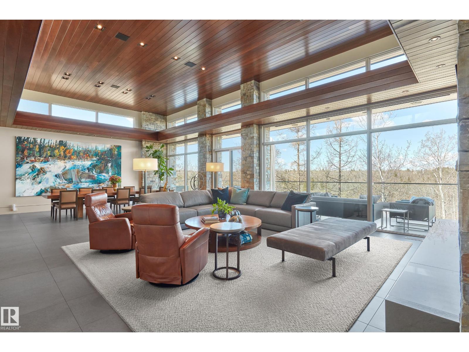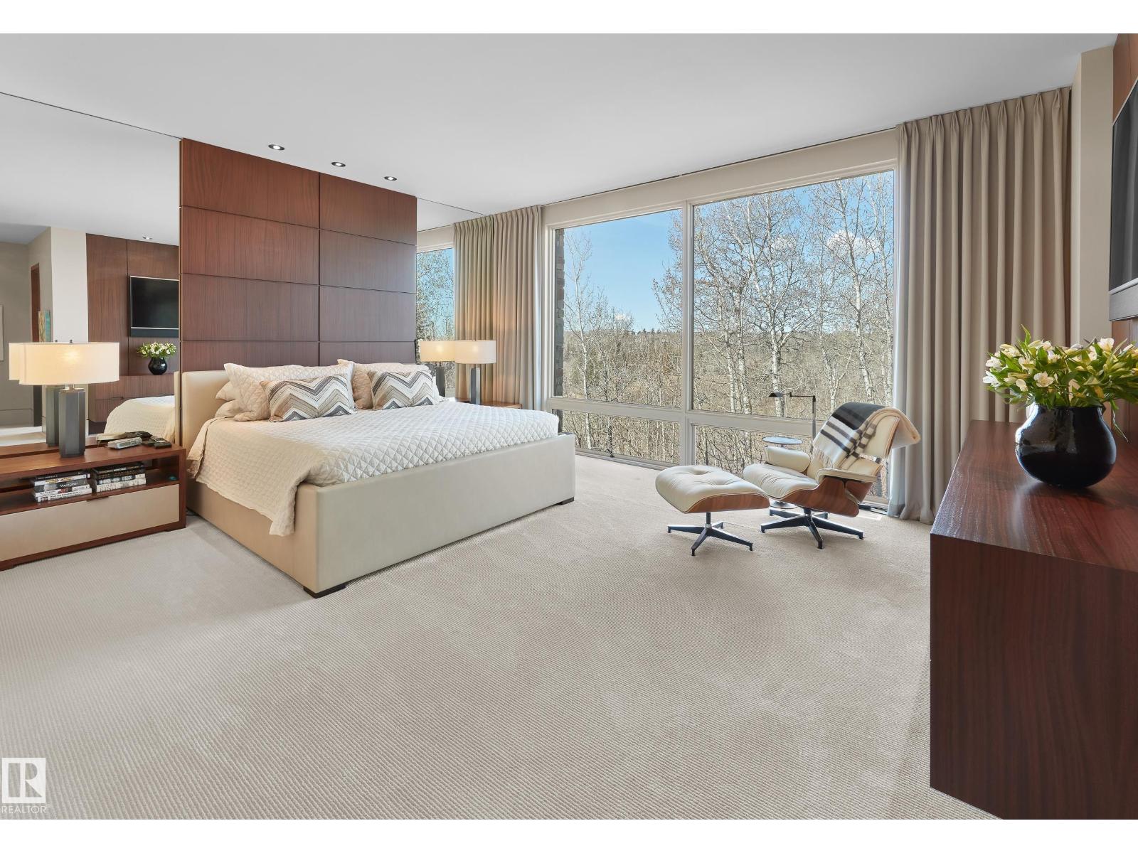 Panoramic RIVER VALLEY views – backing onto Whitemud Creek Ravine – full unobstructed view on this over 12,000sqft lot! The stunning home encompasses 5897 SQFT of developed living space with walkout basement – luxury beds, Gym, Art Room, Office, 2.5 baths, 15ft ceilings – North & South Garages - Quad attached garage (extra height for car lifts) – the entire back of the home is floor to ceiling windows.The attention to detail provides the perfect fusion between structural strength & architectural form – Urbis Architecture, Mitchell Freedland Design/Vancouver! This home seamlessly blends indoor/outdoor spaces capturing all elements of luxury – Flawless design covers every inch of this stunning home well-appointed & sophistication throughout. Every finish was hand selected for a luxurious feel - custom millwork & cabinetry, superior lighting & plumbing fixtures - the craftsmanship is like no other fit & finish you have never seen before – West Coast Luxury in YEG - boasting every state-of-the-art finish. (33544693)