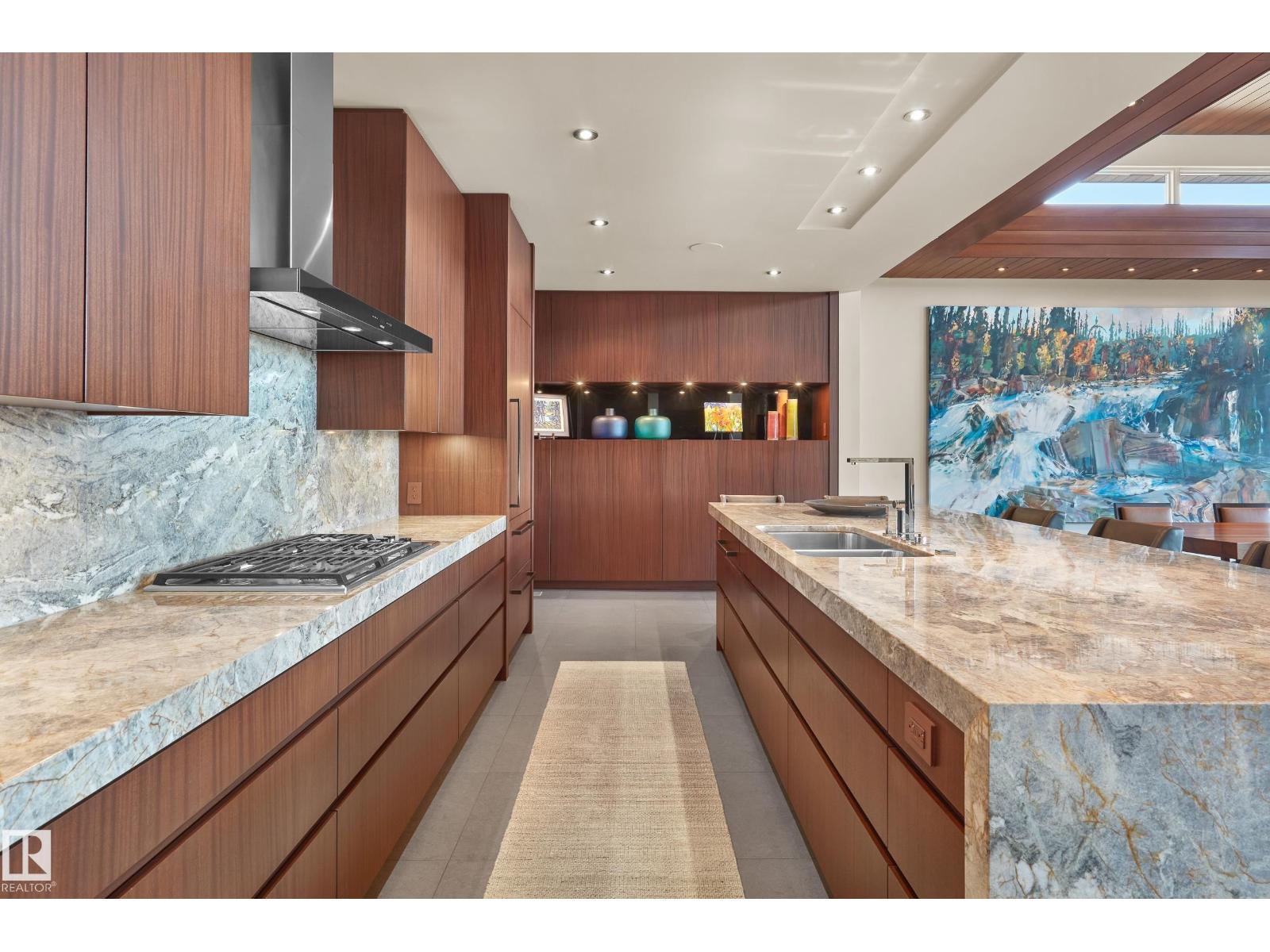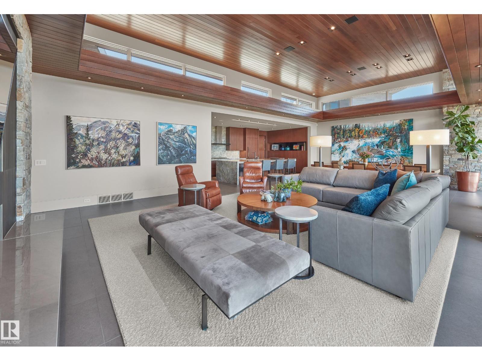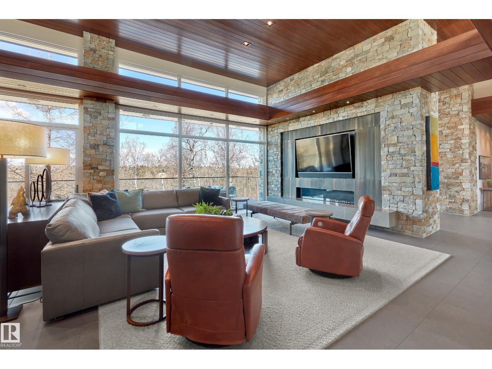Panoramic RIVER VALLEY views – backing onto Whitemud Creek Ravine – full unobstructed view on this over 12,000sqft lot! The stunning home encompasses 5897 SQFT of developed living space with walkout basement – luxury beds, Gym, Art Room, Office, 2.5 baths, 15ft ceilings – North & South Garages - Quad attached garage (extra height for car lifts) – the entire back of the home is floor to ceiling windows.The attention to detail provides the perfect fusion between structural strength & architectural form – Urbis Architecture, Mitchell Freedland Design/Vancouver! This home seamlessly blends indoor/outdoor spaces capturing all elements of luxury – Flawless design covers every inch of this stunning home well-appointed & sophistication throughout. Every finish was hand selected for a luxurious feel - custom millwork & cabinetry, superior lighting & plumbing fixtures - the craftsmanship is like no other fit & finish you have never seen before – West Coast Luxury in YEG - boasting every state-of-the-art finish. (33544693)