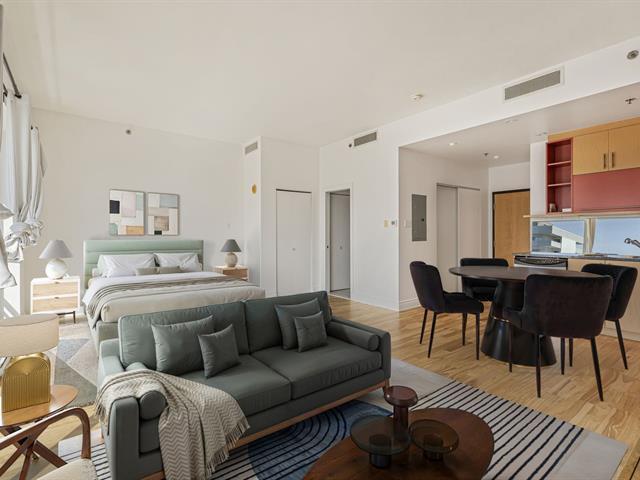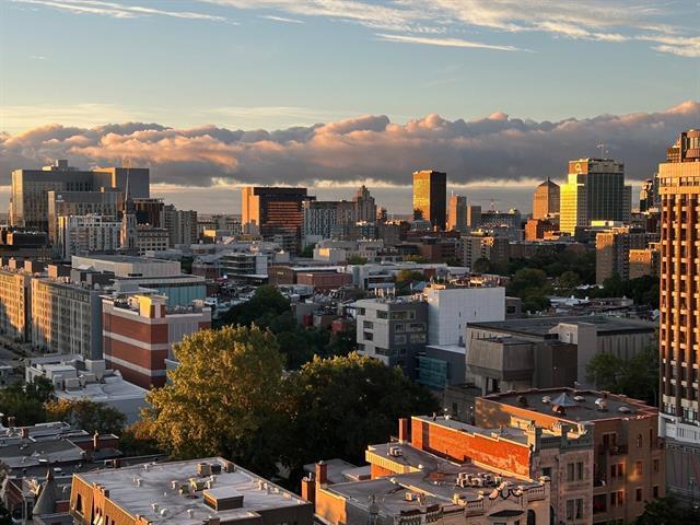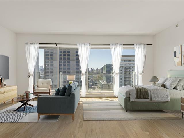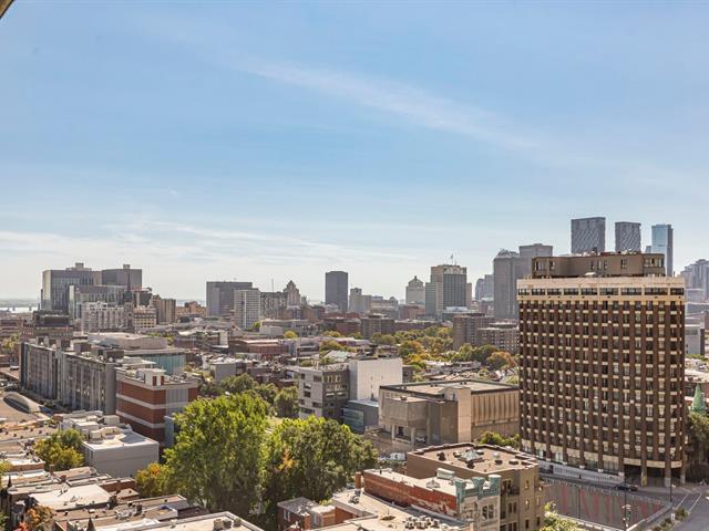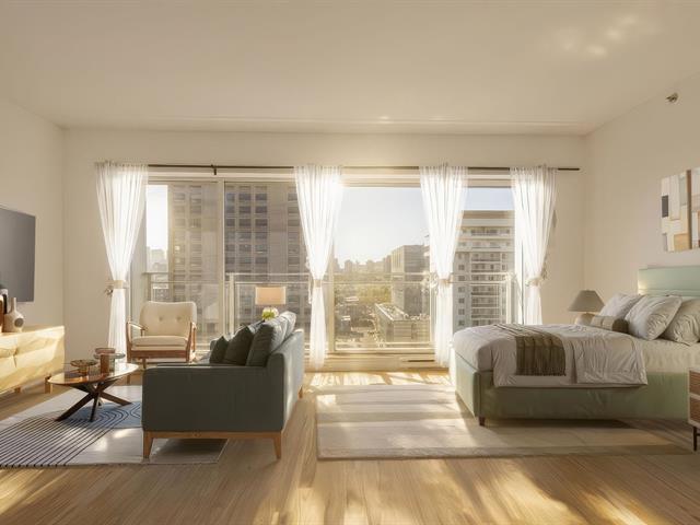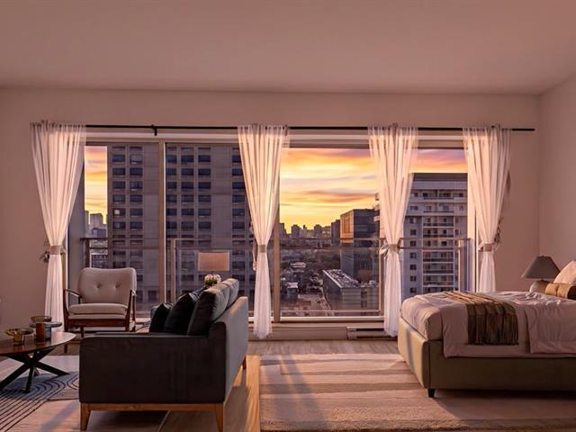 VIEWS! Stunning 14th-floor condo offering a spacious, sun-filled, refined living space framed by breathtaking panoramic vistas. The open-concept loft layout seamlessly integrates a welcoming living area with a stylish, functional kitchen perfect for both living & entertaining. This unit features a large private in-suite storage space as well as an additional exclusive storage area in the building's basement. Situated in the prestigious 801 Sherbrooke project, you'll be just STEPS from the Sherbrooke METRO, downtown, and the Plateau -one of MTL most sought-after areas celebrated for its vibrant atmosphere, cultural richness, resto & cafés! (51467627)