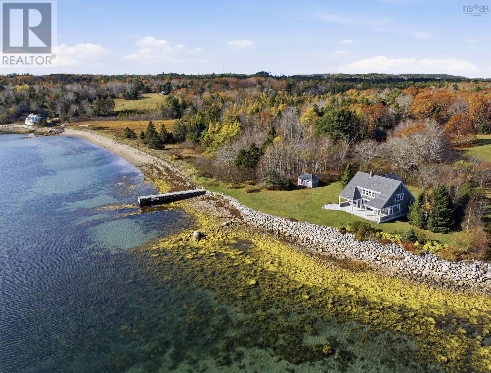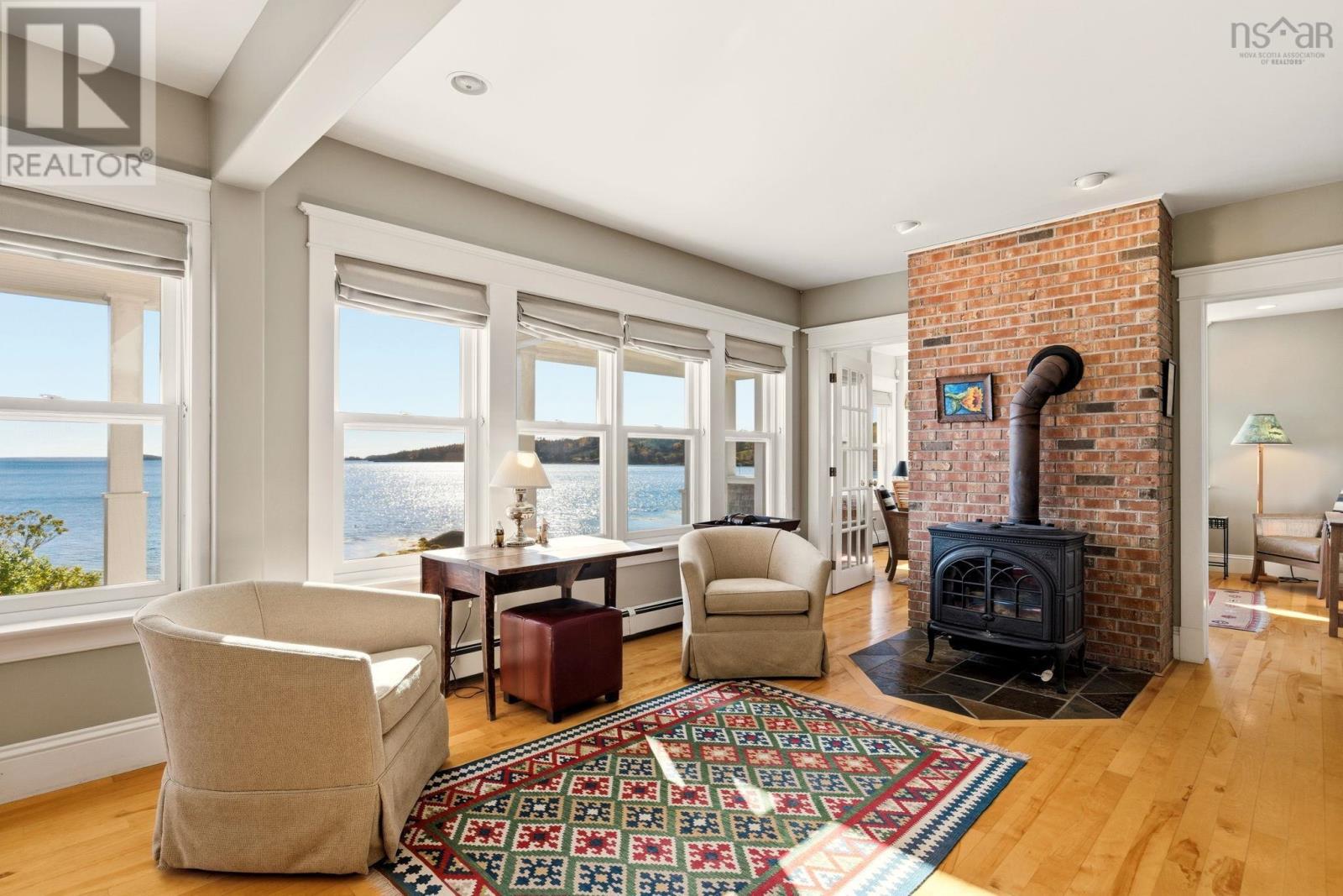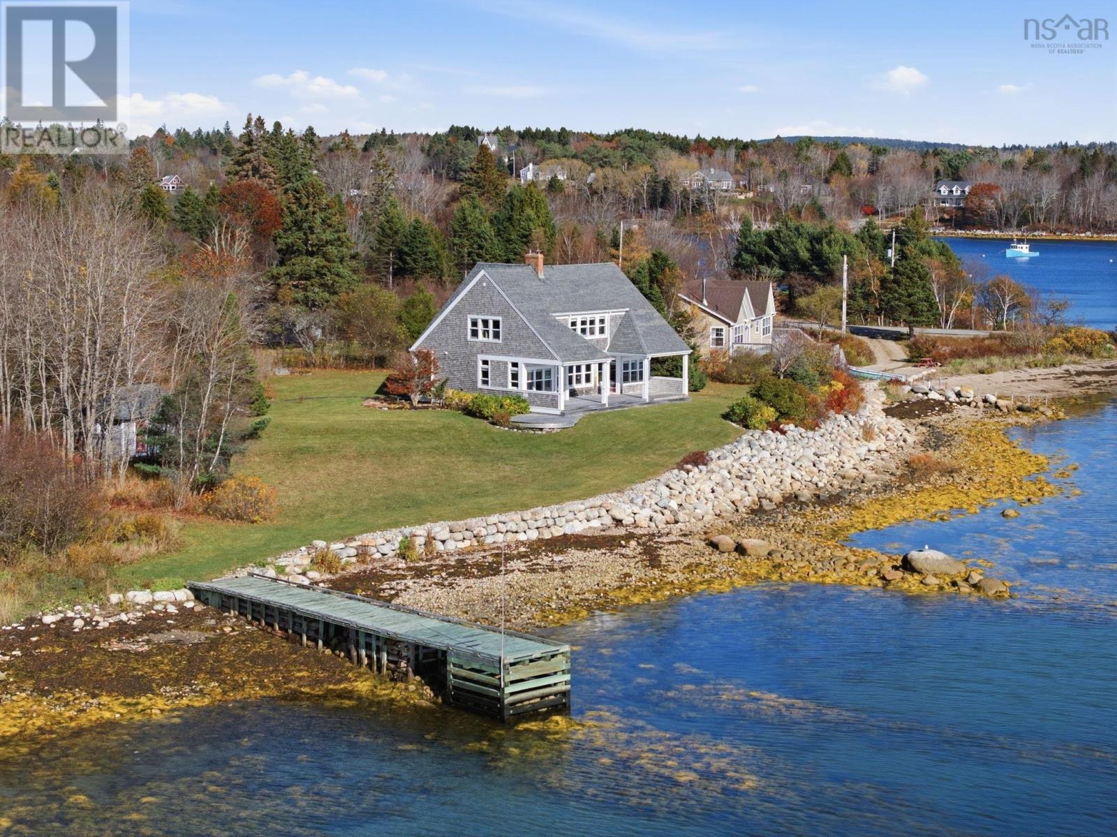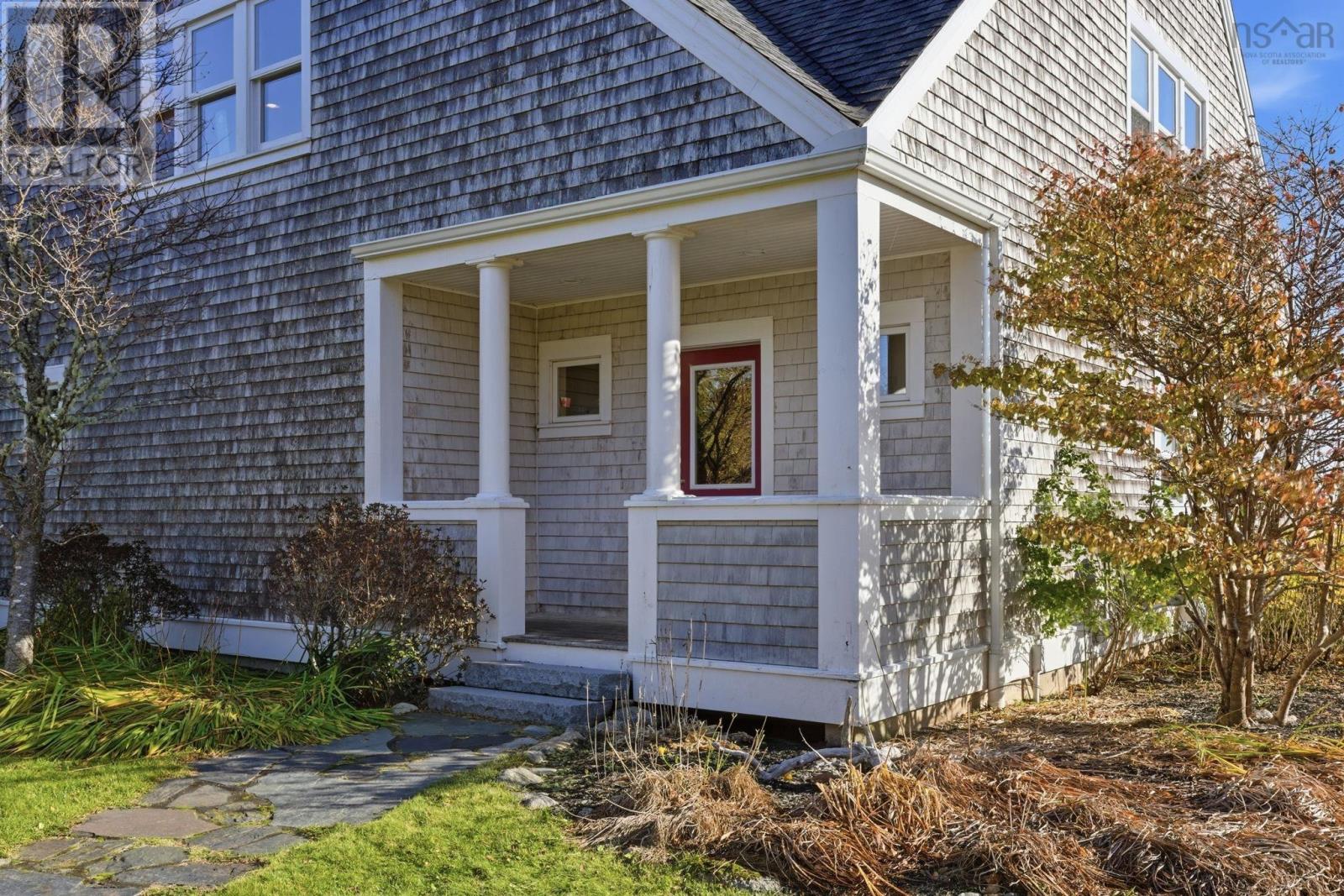 A genuine rarity, the property at 85 Oak Wood Drive is located at the very end of a wooded road. Arrival is a captivating experience, with a south facing vista straight down the cove with Graves Island on the left, Lobster Point on the right and Tancook Island, framed perfectly on the horizon. On over an acre of land, with 311 feet of ocean frontage this 25-year-old home has a contemporary design with Cape Cod aesthetic. Landscaped to perfection, the lush lawns cascade down to a 65-foot-long wharf. Directly in front of the house is a reinforced rock sea wall along the shoreline tapering off to gorgeous sand as you head west along the beach past the wharf. Retreat to the full-length waterside deck (partially covered) after your morning walk or pull out a kayak/paddleboard from the waterside shed for more seaside adventures. With over two thousand square feet of living area, the layout manages to showcase the ocean view from every room. The main floor celebrates open concept with south facing light streaming in over the spruce floors. The kitchen features a propane gas range, Bosch appliance, and cedar cabinetry. The dining room and living room are anchored by the wood stove and the den has a wood burning fireplace for those peaceful cozy evenings. Comfortable living was the intention, with a main floor powder room and two entrance foyers. The second floor has four bedrooms, two full bathrooms including an ensuite, two walk-in closets and laundry facilities. A poured cement foundation enabled a full thousand square foot basement with high ceilings. It would be a great floor to add a recreation room, gym, and media space. Adjacent to the hiking trails of Graves Island, the property is also five KM to downtown Chesters amenities: grocery, hardware, liquor store, pharmacy, gas station and health clinic. It is a singular village where everything is possible: art, theatre, sailing, golf, tennis, restaurants and shops. (231631069)