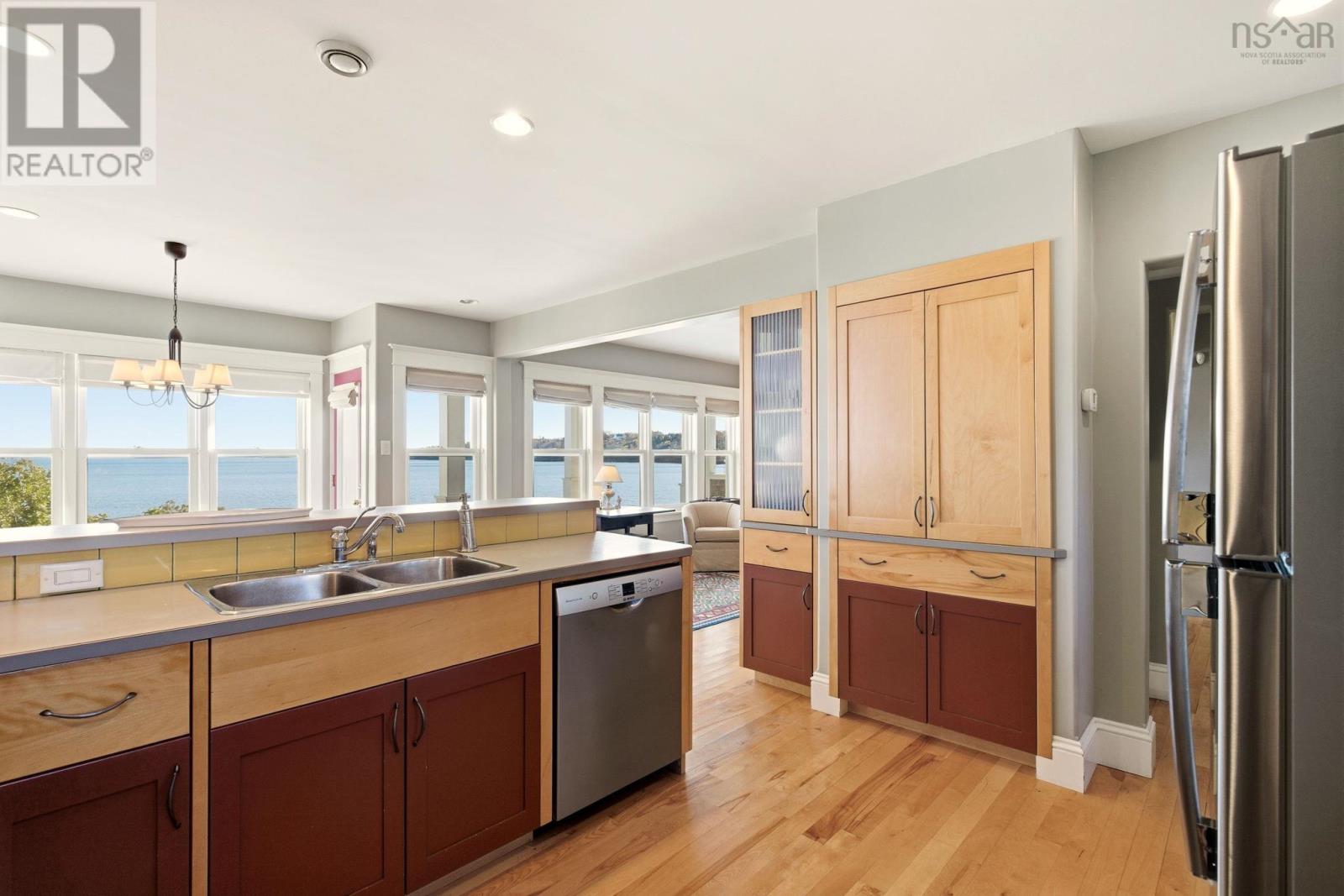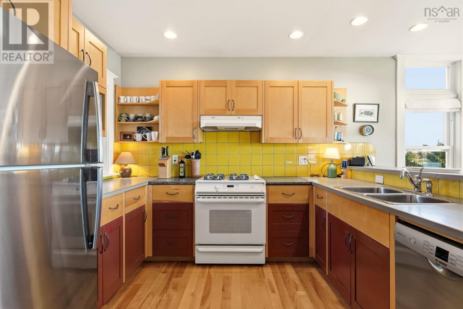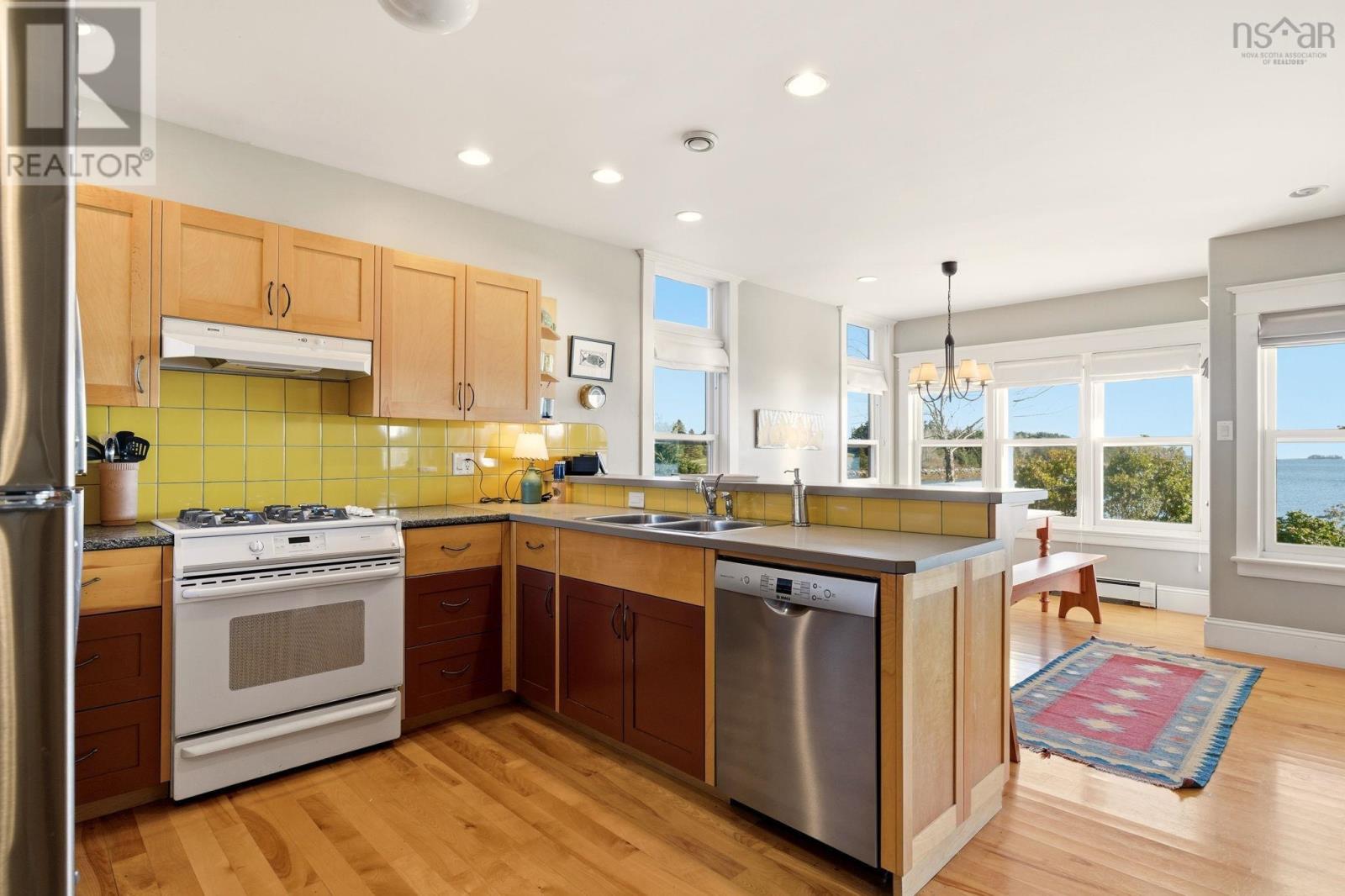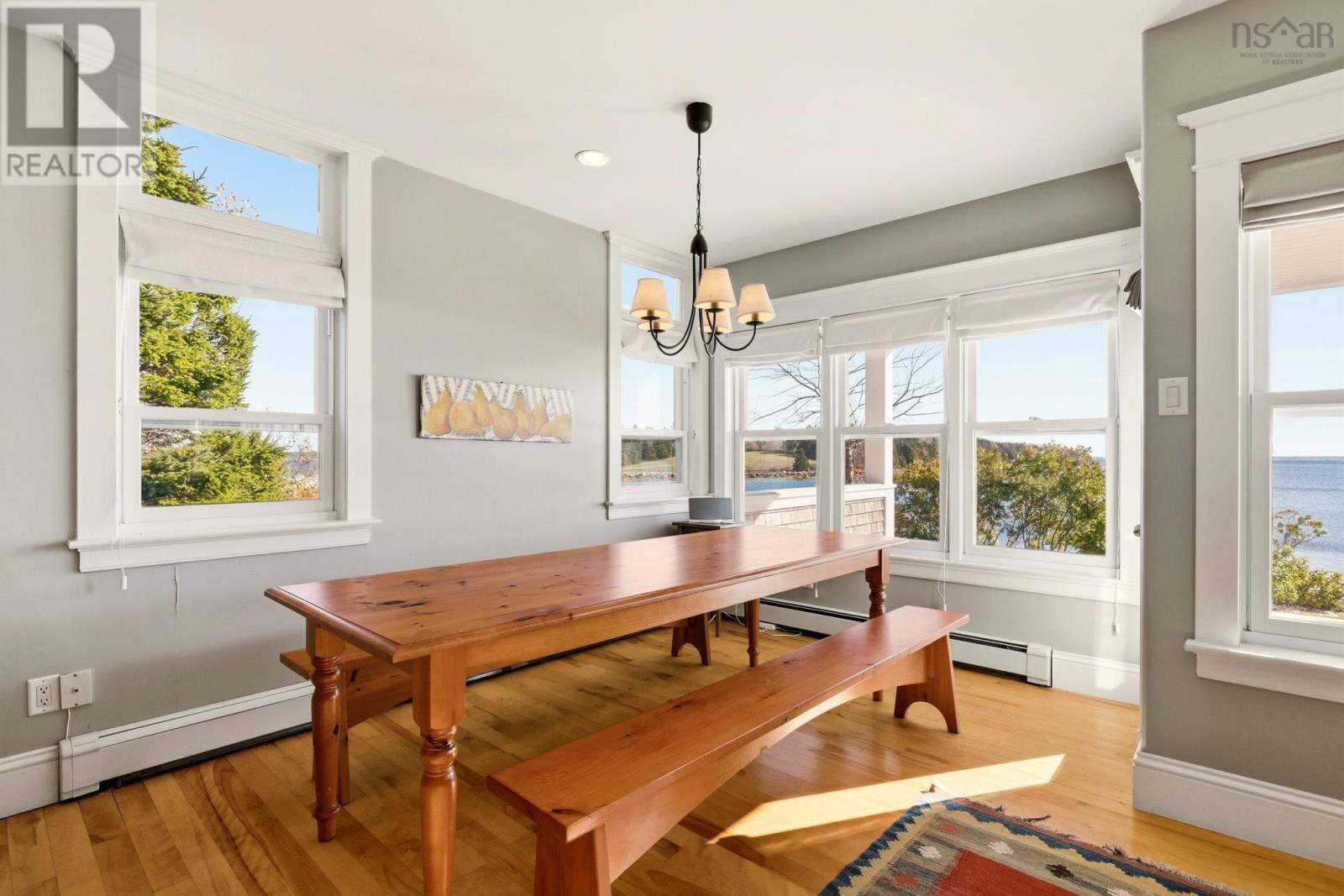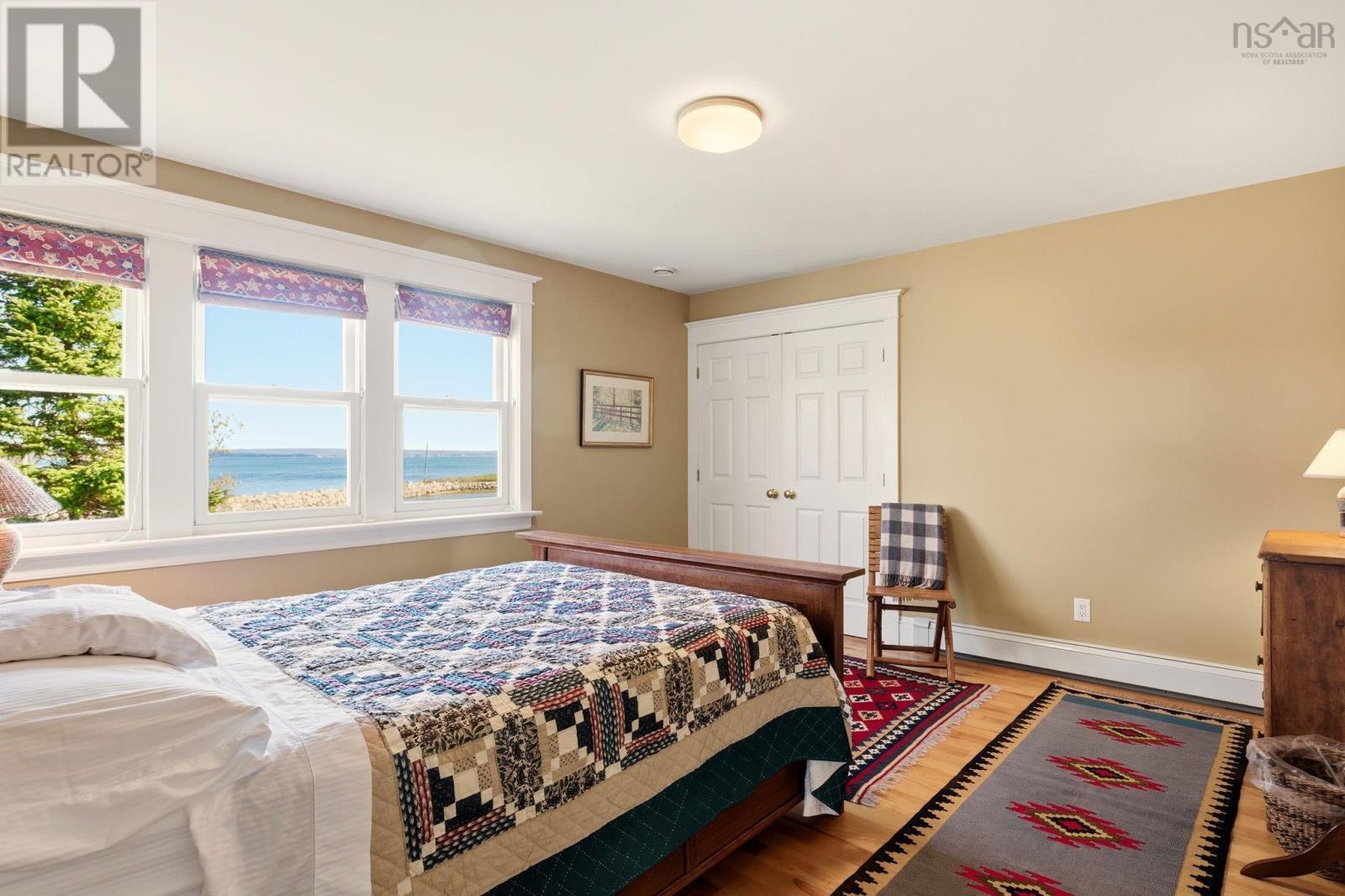 A genuine rarity, the property at 85 Oak Wood Drive is located at the very end of a wooded road. Arrival is a captivating experience, with a south facing vista straight down the cove with Graves Island on the left, Lobster Point on the right and Tancook Island, framed perfectly on the horizon. On over an acre of land, with 311 feet of ocean frontage this 25-year-old home has a contemporary design with Cape Cod aesthetic. Landscaped to perfection, the lush lawns cascade down to a 65-foot-long wharf. Directly in front of the house is a reinforced rock sea wall along the shoreline tapering off to gorgeous sand as you head west along the beach past the wharf. Retreat to the full-length waterside deck (partially covered) after your morning walk or pull out a kayak/paddleboard from the waterside shed for more seaside adventures. With over two thousand square feet of living area, the layout manages to showcase the ocean view from every room. The main floor celebrates open concept with south facing light streaming in over the spruce floors. The kitchen features a propane gas range, Bosch appliance, and cedar cabinetry. The dining room and living room are anchored by the wood stove and the den has a wood burning fireplace for those peaceful cozy evenings. Comfortable living was the intention, with a main floor powder room and two entrance foyers. The second floor has four bedrooms, two full bathrooms including an ensuite, two walk-in closets and laundry facilities. A poured cement foundation enabled a full thousand square foot basement with high ceilings. It would be a great floor to add a recreation room, gym, and media space. Adjacent to the hiking trails of Graves Island, the property is also five KM to downtown Chesters amenities: grocery, hardware, liquor store, pharmacy, gas station and health clinic. It is a singular village where everything is possible: art, theatre, sailing, golf, tennis, restaurants and shops. (231631069)