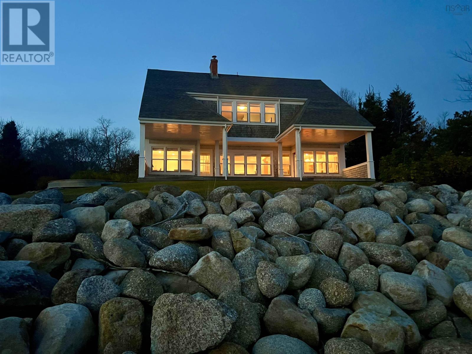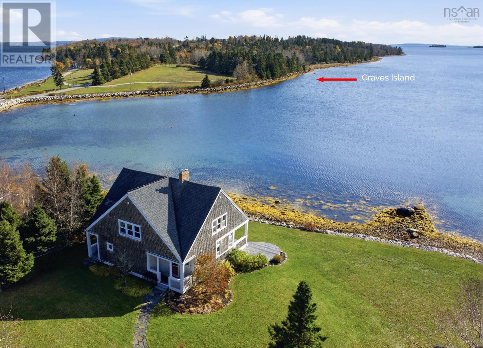 From Halifax, take Highway 103 to Chester. Take Exit 7 to Highway 3 and make a right. Follow to past Graves Island exit, and take the next left at Oakwood Drive. Property is at the end of the road on the water.