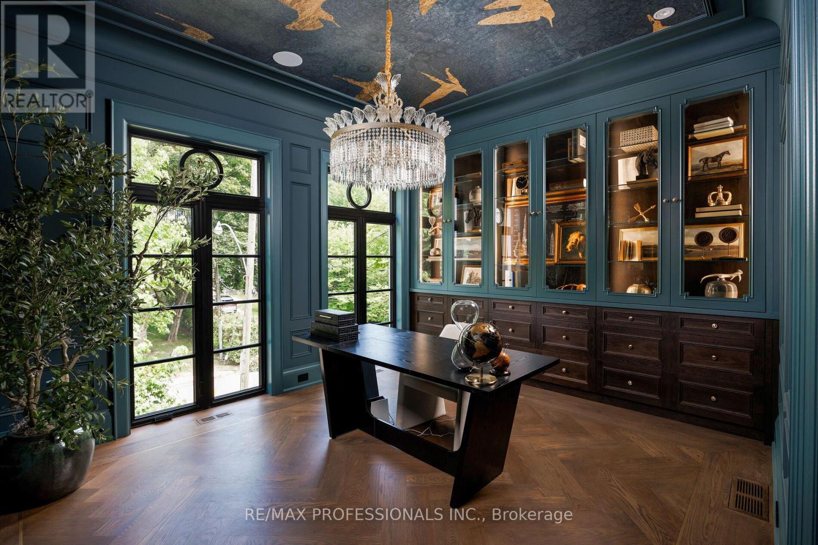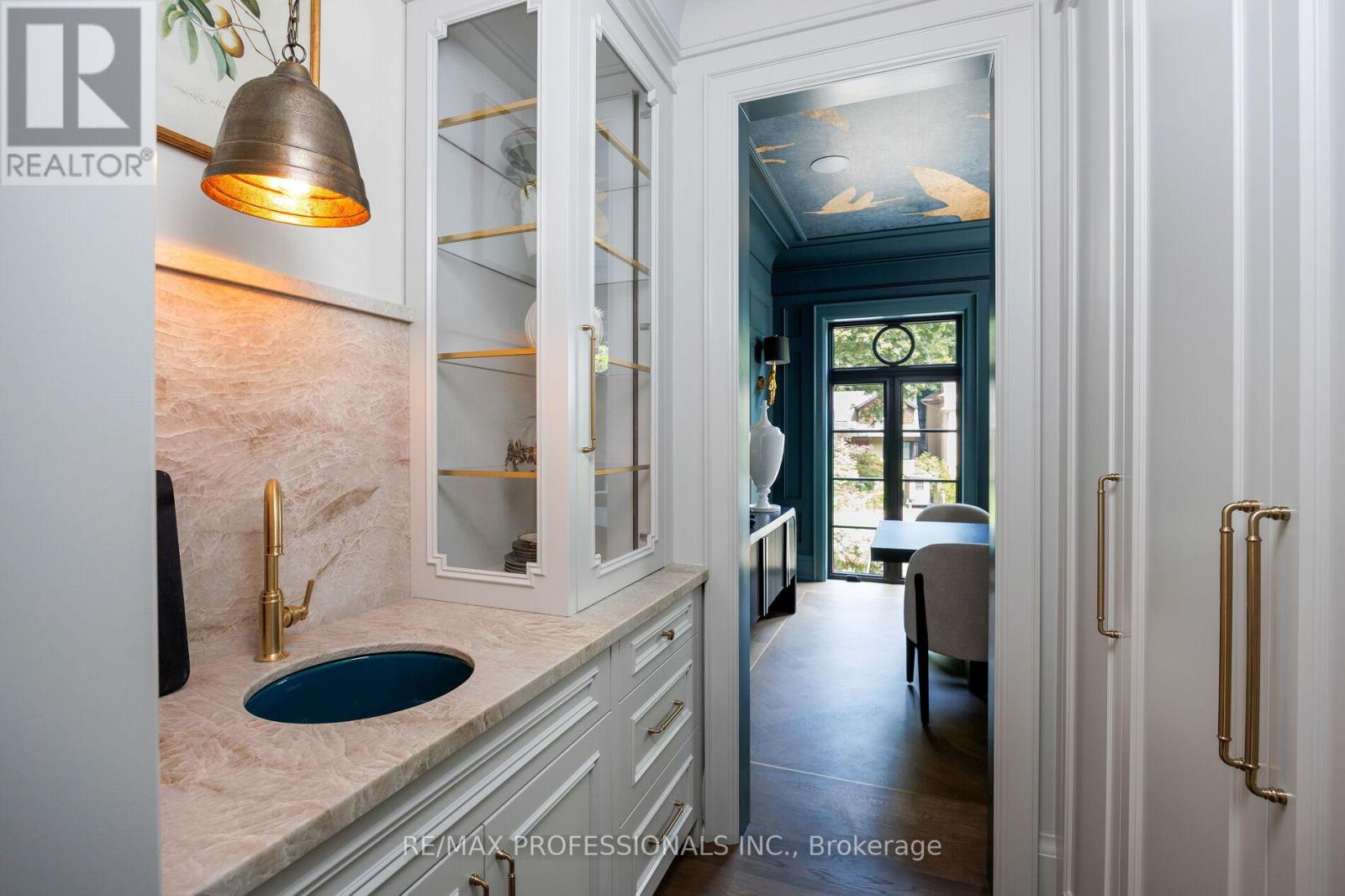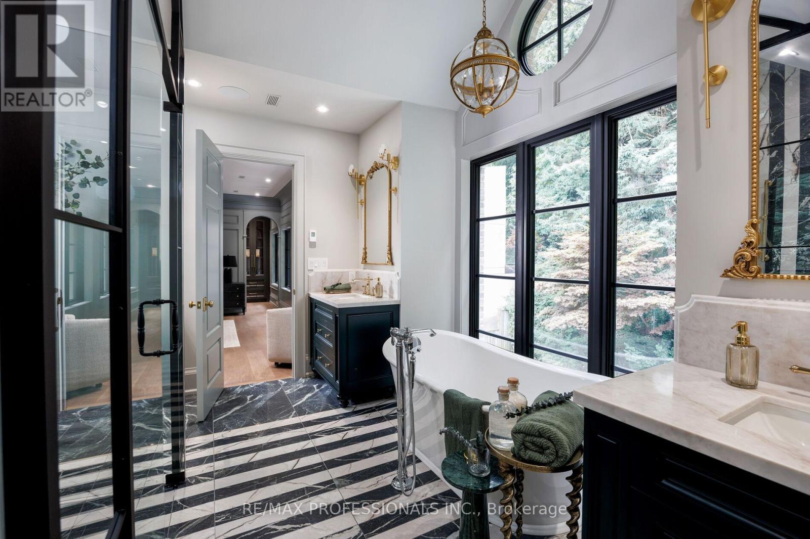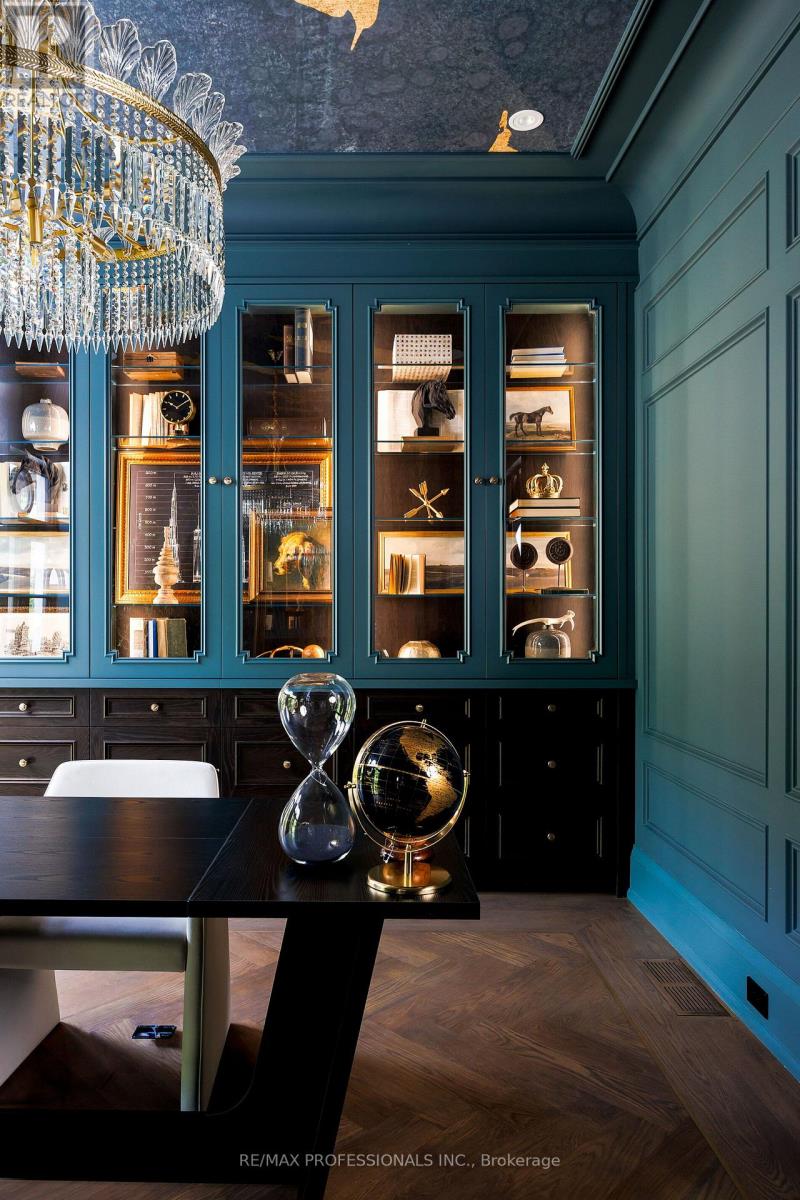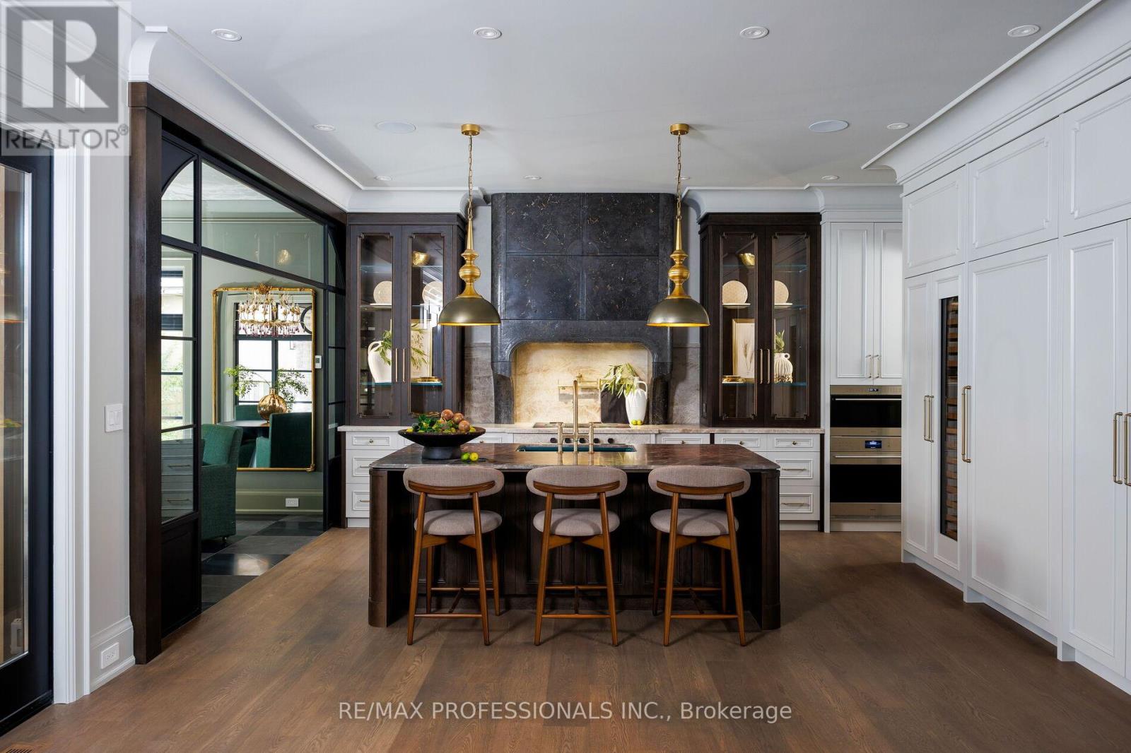 Nestled on a quiet cul-de-sac in a rare, beautiful ravine setting, this 5,000+ sq ft French-inspired estate architecturally refined by Hausworks, built by Atelier Custom Homes and designed and styled by Rizo Lola Designs offers three levels of refined luxury built with the finest curated materials. The main floor features a formal dining room, elegant office, and a stunning open-concept kitchen and family room with high-end appliances, honed quartzite & marble countertops, custom fine cabinetry, a large center island and a breakfast nook with ravine views. The family room, anchored by a limestone fireplace, flows into a sunroom overlooking the ravine. Upstairs boasts four spacious bedrooms, including a serene primary retreat with a grand walk-in closet and spa-like ensuite with oversized glass shower and heated floors. The lower level offers a wine room, wet bar, rec room with fireplace and custom built-ins, radiant heating, a fifth bedroom/office, full bath with steam shower, and gym. The exterior blends aged brick with limestone, professionally landscaped grounds, cobblestone driveway with snowmelt system, Generac generator, custom stone patio/walkway, and in-ground irrigation. Situated on an impressive ravine lot in one of the city's most prestigious enclaves, close to top schools, parks, and major routes, this residence delivers unmatched privacy, elegance, and lifestyle for the most discerning buyer. (41664795)