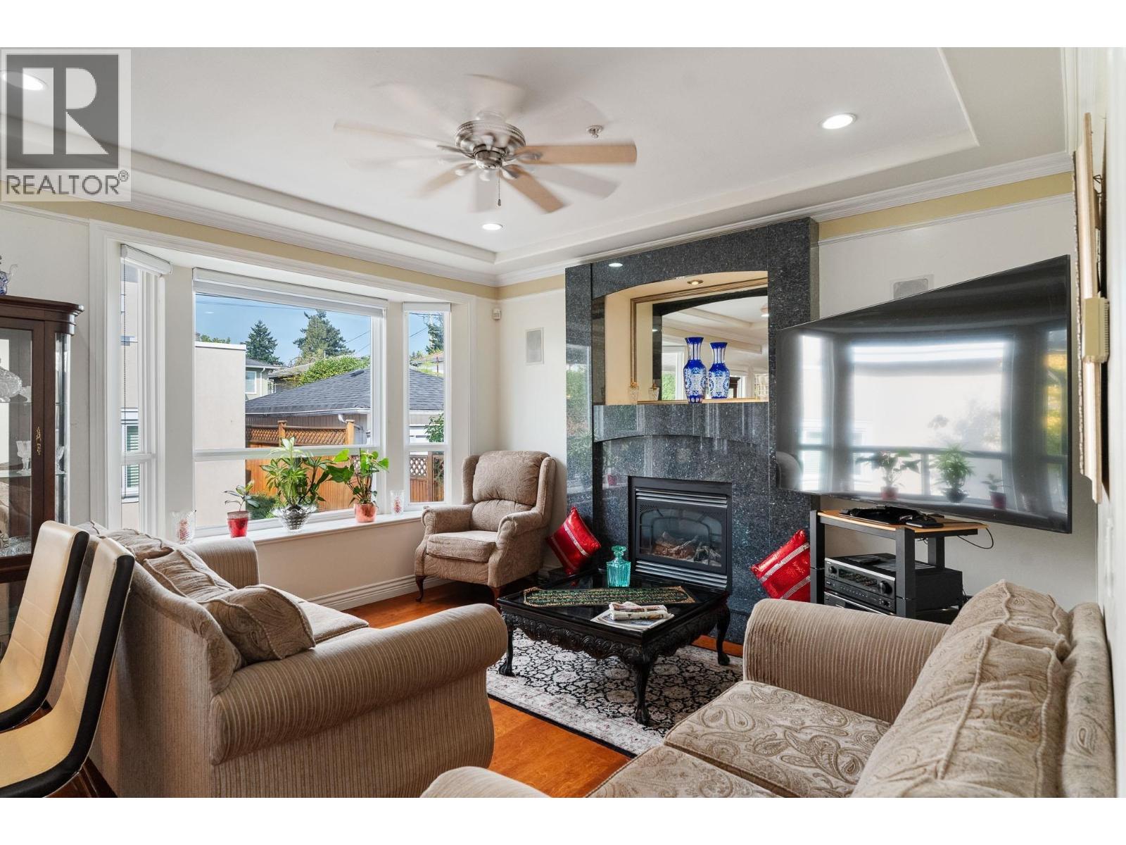 Stunning 3-level residence in sought-after Vancouver South with southern views, offering 7 bedrooms and 6 bathrooms including a 2-storey laneway home with its own living area, kitchen, bedroom and bath. The main house features 3 spacious bedrooms upstairs, each with ensuite, highlighted by a primary retreat with Jacuzzi tub and steam shower. An elegant open-concept kitchen with island, maple cabinetry, granite accents, and premium appliances flows to bright living areas with fireplaces and hardwood flooring. The lower level includes a self-contained 2-bedroom suite with separate entry, ideal for family or mortgage helper. Enjoy a covered deck, private backyard with lane access, & quality touches like built-in vacuum & surround sound, all close to parks, schools, Langara College, & transit. (32179978)