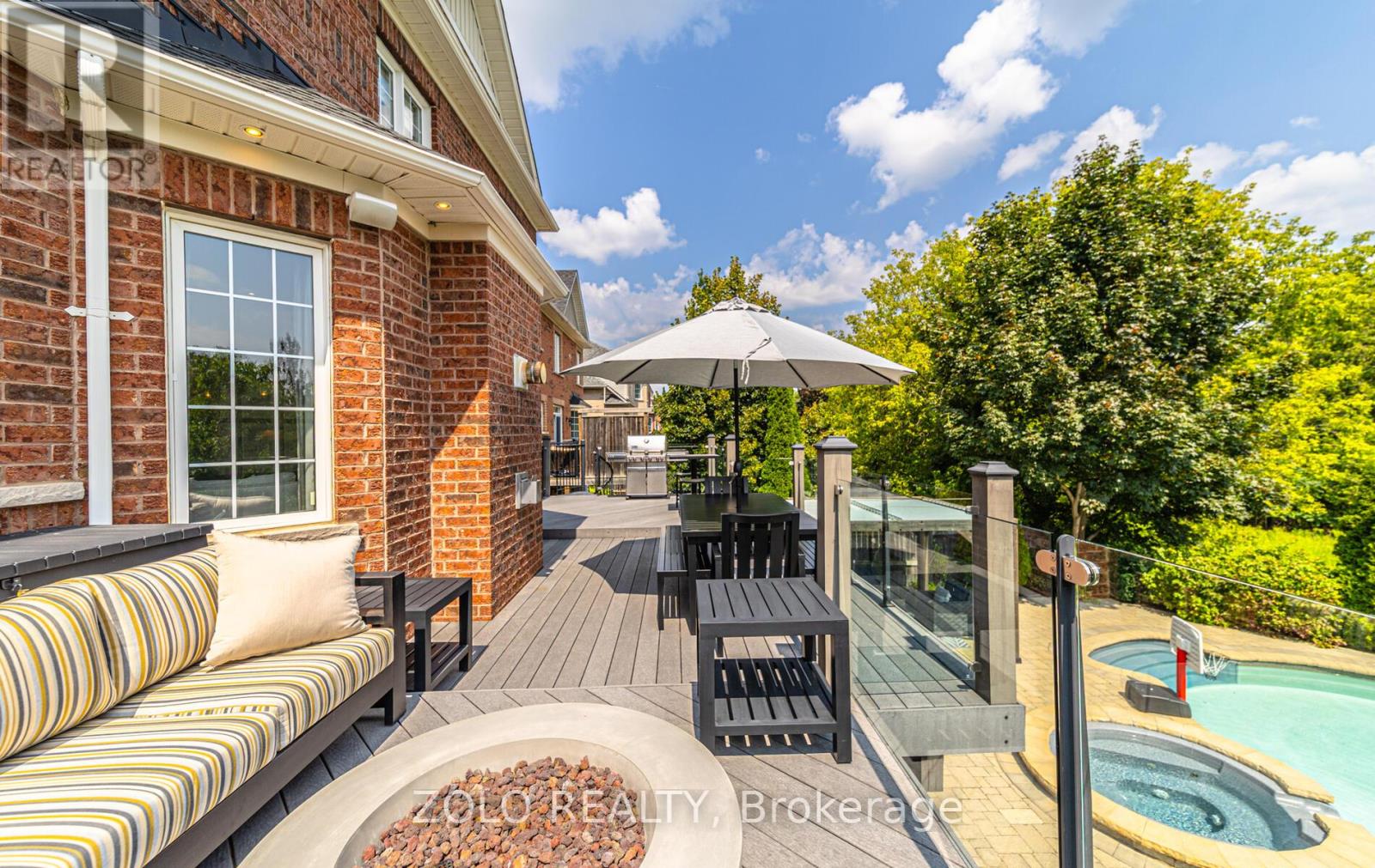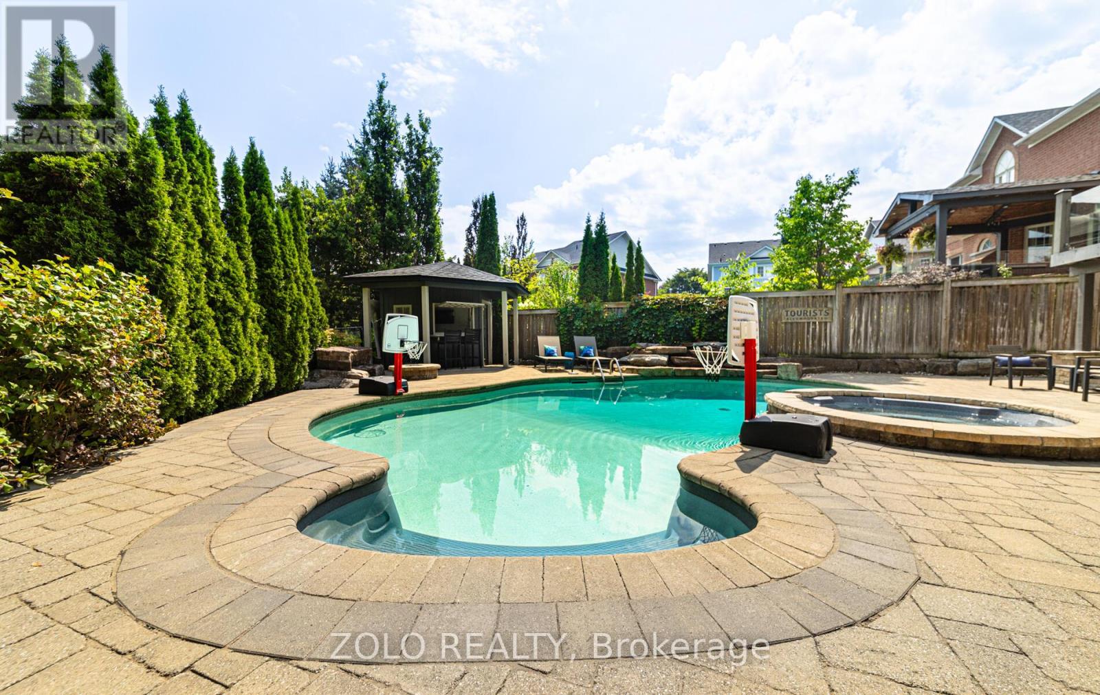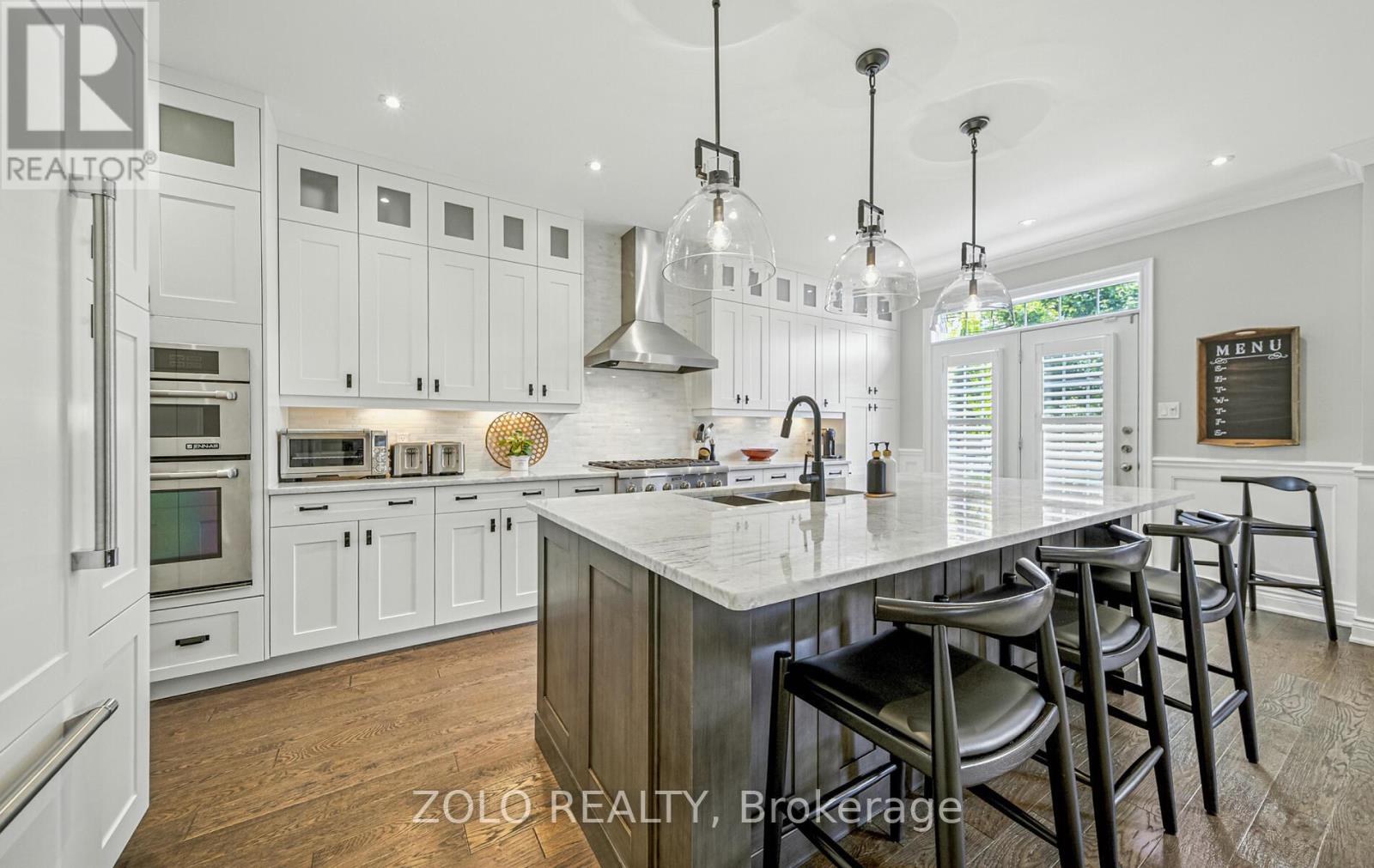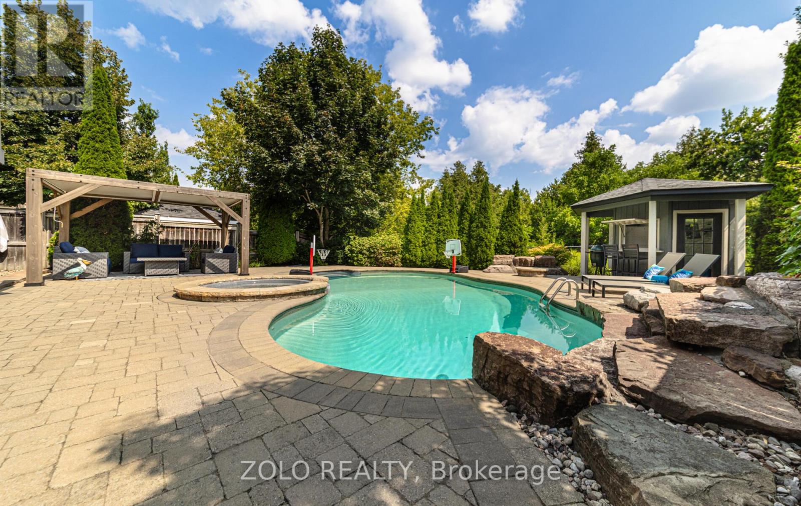 Set on one of Brooklin's most coveted streets, this exceptional Southampton Model Queensgate home offers over 4,000 sq. ft. of professionally designed & decorated luxury living space. Situated on a 50 ft lot backing onto greenspace, this home delivers both sophistication & serenity. The attention to detail is evident from soaring ceilings & rich hardwood flooring throughout to designer lighting & in-ceiling speakers that set the tone for effortless elegance. At the heart of the home lies the entertainers kitchen, outfitted with high-end appliances incl. a Jenn-Air fridge, wall oven, microwave, & Thermador cooktop. This culinary haven seamlessly opens to the oversized great room w/ gas fireplace, all overlooking the breathtaking ravine backdrop & walks out to custom Trex deck overlooking the Backyard Oasis. In addition to a separate Living & Dining Room, the main floor also features a home office (also ideal as a childrens playroom), a mudroom/laundry room w/access to a recently renovated garage. Upstairs, the primary suite is a true retreat, with tranquil ravine views, his-and-hers walk-in closets, & a spa-inspired 5-piece ensuite. Bedroom 2 enjoys its own 3-piece ensuite and walk-in closet, while bedrooms 3 & 4 share a spacious 4-piece Jack & Jill bath each with its own walk-in closet. The finished walk-out basement extends the homes entertainment space, a sprawling rec room w/built-in cabinetry, a wet bar & beverage fridge, plus an open games area ideal for hosting family gatherings or poolside celebrations. Step outside to your private backyard oasis, complete w/16 x 32 kidney-shaped in-ground pool, hot tub, pool cabana w/electrical, propane fire pit & extensive landscaping. All of this is within walking distance to top-rated schools & moments from downtown Brooklin, golf courses, the 407, shops, dining & more. Luxury. Privacy. Location. This is more than a home its a lifestyle. (41688080)