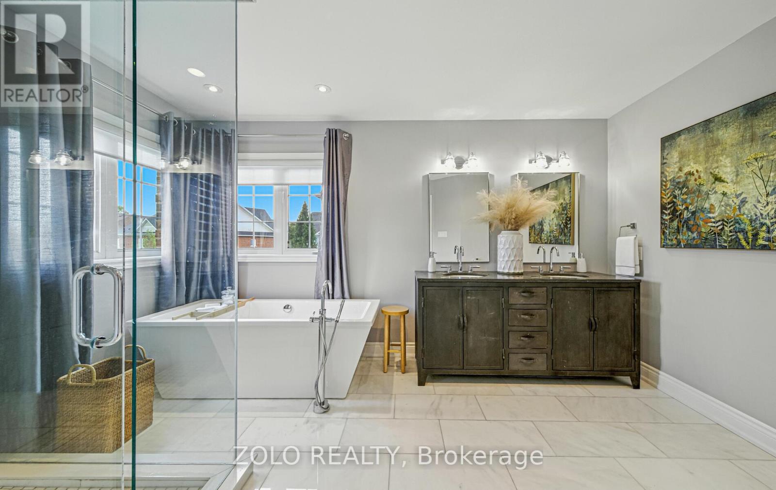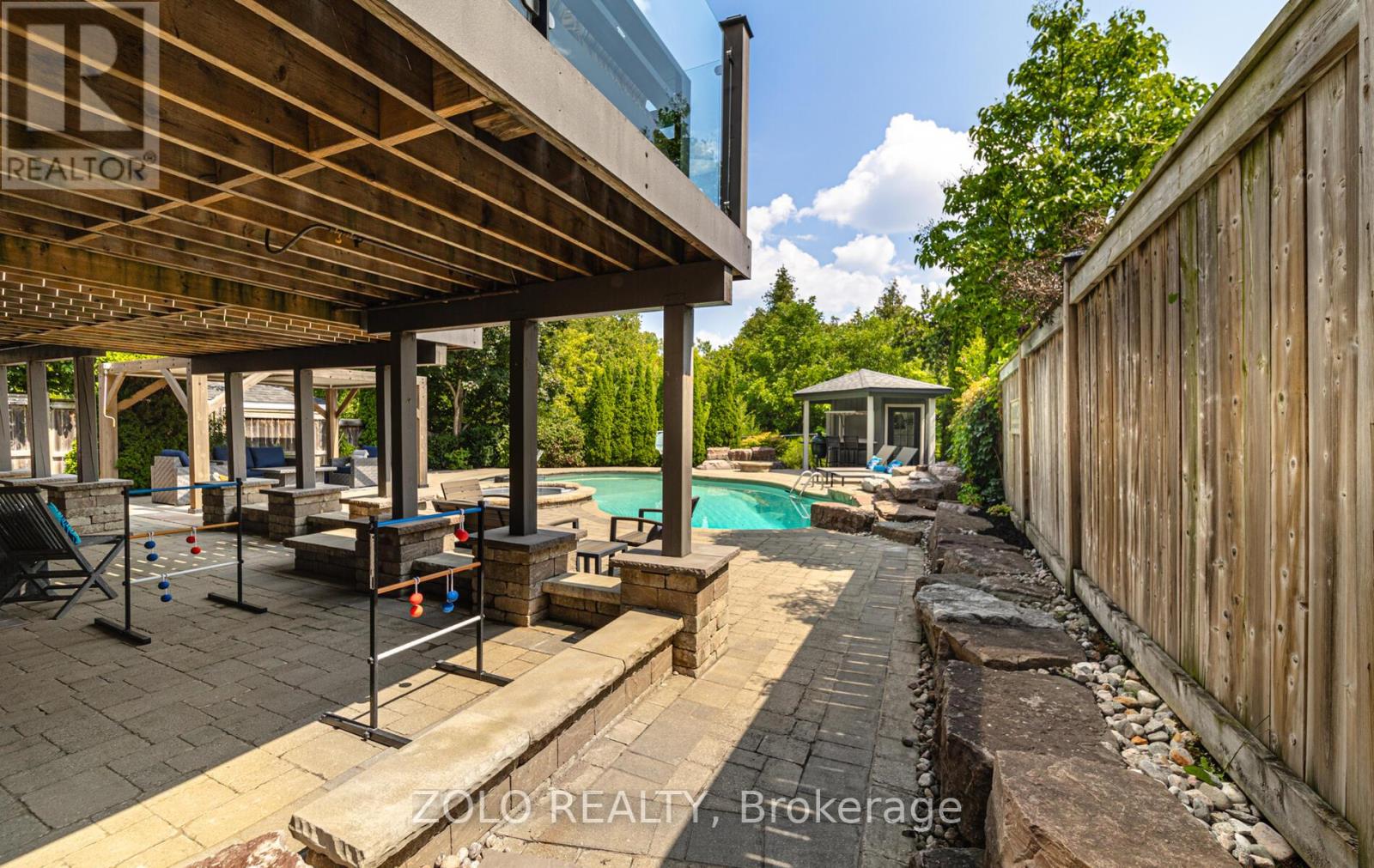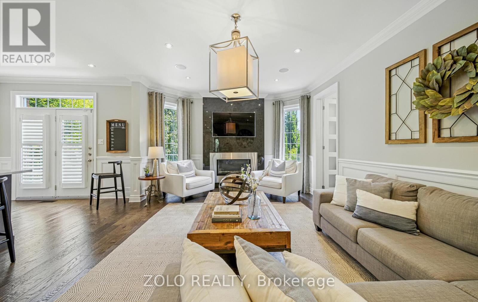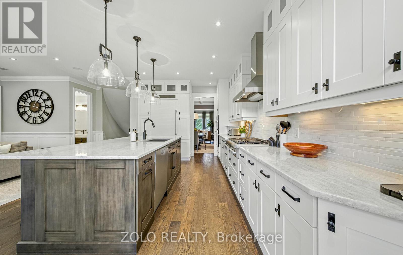 Set on one of Brooklin's most coveted streets, this exceptional Southampton Model Queensgate home offers over 4,000 sq. ft. of professionally designed & decorated luxury living space. Situated on a 50 ft lot backing onto greenspace, this home delivers both sophistication & serenity. The attention to detail is evident from soaring ceilings & rich hardwood flooring throughout to designer lighting & in-ceiling speakers that set the tone for effortless elegance. At the heart of the home lies the entertainers kitchen, outfitted with high-end appliances incl. a Jenn-Air fridge, wall oven, microwave, & Thermador cooktop. This culinary haven seamlessly opens to the oversized great room w/ gas fireplace, all overlooking the breathtaking ravine backdrop & walks out to custom Trex deck overlooking the Backyard Oasis. In addition to a separate Living & Dining Room, the main floor also features a home office (also ideal as a childrens playroom), a mudroom/laundry room w/access to a recently renovated garage. Upstairs, the primary suite is a true retreat, with tranquil ravine views, his-and-hers walk-in closets, & a spa-inspired 5-piece ensuite. Bedroom 2 enjoys its own 3-piece ensuite and walk-in closet, while bedrooms 3 & 4 share a spacious 4-piece Jack & Jill bath each with its own walk-in closet. The finished walk-out basement extends the homes entertainment space, a sprawling rec room w/built-in cabinetry, a wet bar & beverage fridge, plus an open games area ideal for hosting family gatherings or poolside celebrations. Step outside to your private backyard oasis, complete w/16 x 32 kidney-shaped in-ground pool, hot tub, pool cabana w/electrical, propane fire pit & extensive landscaping. All of this is within walking distance to top-rated schools & moments from downtown Brooklin, golf courses, the 407, shops, dining & more. Luxury. Privacy. Location. This is more than a home its a lifestyle. (41688080)