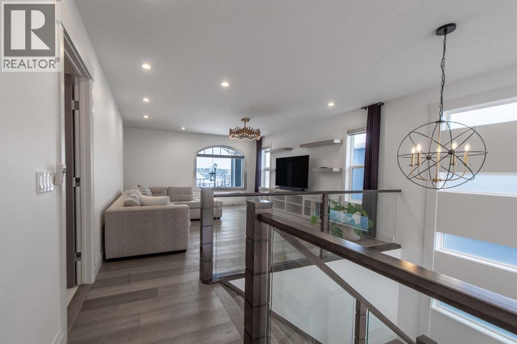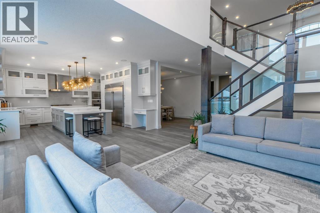 Welcome to Westmere, a lakeside community surrounded by parks, pathways, and natural wetlands. This gorgeous home sits directly across from a green space and offers over 4,300 square feet of thoughtfully designed living, including four bedrooms upstairs and two more in the fully finished basement.The main floor balances elegance and comfort with a private office, a formal dining room with tray ceilings, and a stunning open-to-above living room anchored by a cozy fireplace. The spacious kitchen is designed for both family life and entertaining, offering a large island, high-end stainless steel appliances, a walk-through pantry with direct garage access, and plenty of storage thanks to its ceiling-height cabinetry. From the kitchen, step out onto the glass-railed deck with a natural gas BBQ hookup, perfect for summer evenings.Upstairs, the layout truly shines with a generous bonus room with built-ins, convenient laundry, three well-sized secondary bedrooms, and a relaxing primary suite with a five-piece ensuite. The fully developed basement adds even more space to unwind or host gatherings, featuring a large recreation room with built-ins, a stylish wet bar, two additional bedrooms, a full bath, and two dedicated storage rooms for seasonal items and household extras.This beautifully maintained home also offers air conditioning, central vacuum, a water softener and filtration system, window coverings, built-in speakers, garage heater and a triple attached garage. With a landscaped and fenced yard, finished deck, and its location just minutes from Chestermere Lake, shopping, and everyday amenities, it is ready for you to move in and enjoy. (31396020)