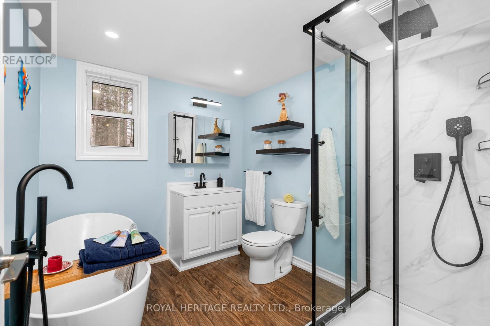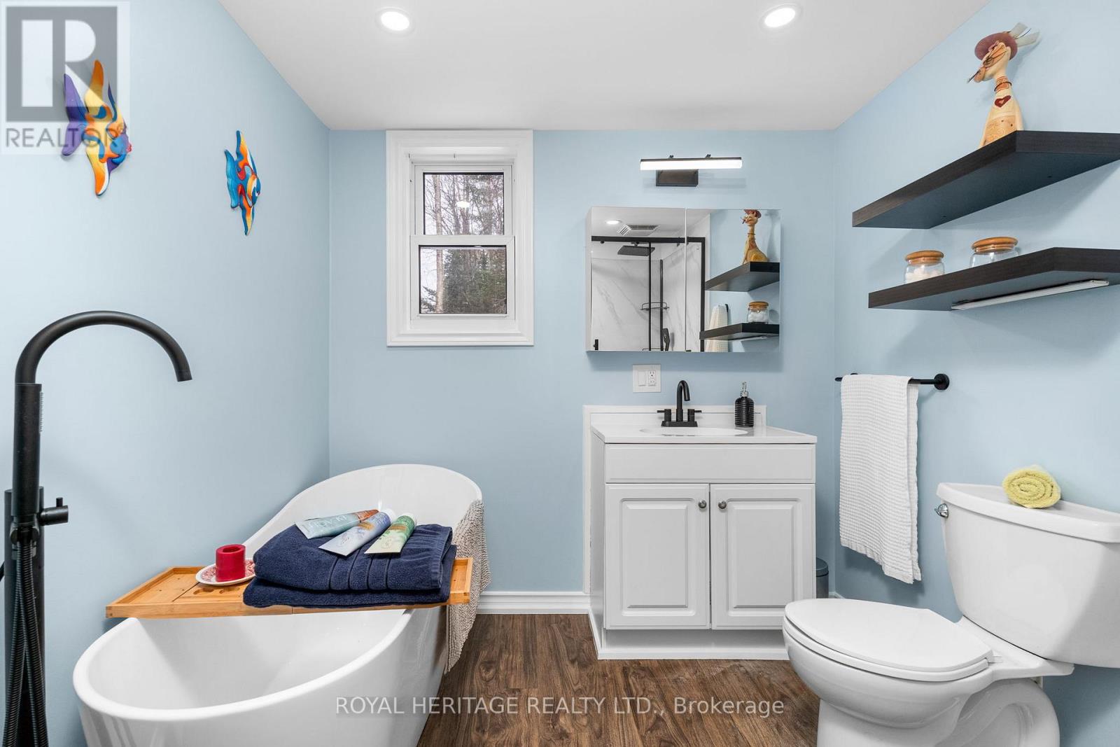 Nestled in the prestigious Chaffey community of Huntsville, this beautifully maintained and recently updated bungalow blends country charm with contemporary design. Newly finished with board-and-batten slate-blue vinyl siding and a durable metal roof, this home offers stylish curb appeal and low-maintenance living. Inside, you'll find a bright, open-concept layout where the living and dining areas flow seamlessly into a well-appointed kitchen featuring sleek finishes, a gas range, and convenient main-floor laundry. The cozy gas fireplace creates a warm, inviting atmosphere, especially as you enter through the covered, enclosed mudroom-ideal for shedding winter layers. The home offers two comfortable bedrooms with 2 6ft closets and a modern four-piece bath. Outside, enjoy privacy among century-old trees from the back deck. An insulated auxiliary bunkie with heat and electricity provides additional space and awaits your finishing touches. Located in a quiet waterfront community just 10 minutes from Huntsville and steps to Lake Waseosa offers, public access This property perfectly blends serenity with practicality. High-speed internet supports working or streaming from home. A new portable garage with 10 years remaining on the warranty is also included. Whether you're downsizing or purchasing your first home, this inviting bungalow-bathed in natural light with potential to expand-offers endless possibilities. Here are some of the updates: FULL RENOVATION 2023/NEW METAL ROOF/NEW SIDING/DRYWAY/ELECTRICAL/PLUMBING/PROPANE STOVE/BUNKIE/10 YEARS LEFT FOR PORTABLE 2 CAR GARAGE (2019)/REFRESH ON DRIVEWAY. First Time Buyers, Downsizer or Investors Dream Opporunity! (41690508)