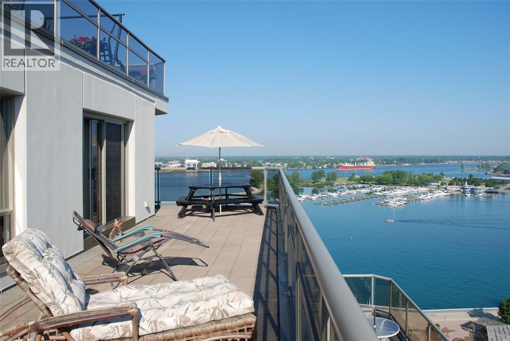 1844 SQ FT, LUXURY PENTHOUSE WITH WRAP-AROUND BALCONY OVERLOOKING SARNIA BAY & SPECTACULAR WATERFRONT VIEWS, AVAILABLE FOR LEASE. ENJOY STROLLS ALONG THE WATERFRONT & LIVE A CAREFREE LIFESTYLE, STEPS FROM SARNIA'S HOTTEST RESTAURANTS, SHOPS, ART GALLERY & THEATRE. THIS GORGEOUS, OPEN CONCEPT CONDO BOASTS SPECTACULAR WATERFRONT VIEWS FROM EVERY ROOM. THERE'S A SPACIOUS GREAT ROOM WITH FIREPLACE, SOLID CHERRY KITCHEN WITH GRANITE COUNTERS, DINETTE AREA, PLUS A SEPARATE DINING ROOM, 2 BEDROOMS & A DEN, INCLUDING THE MASTER SUITE WITH 5 PC ENSUITE & PRIVATE BALCONY, 2 BATHROOMS, & A COMBINED LAUNDRY/STORAGE ROOM. THE HUGE WRAP-AROUND DECK, OVERLOOKING THE ST. CLAIR RIVER, ALLOWS YEAR-ROUND OUTDOOR ENJOYMENT. THIS SECURE BUILDING OFFERS A FITNESS ROOM, LARGE PARTY AREA WITH OUTDOOR DECK, & A GUEST SUITE. 2 INDOOR PARKING SPOTS, JUST A FEW STEPS FROM THE ELEVATOR, ARE INCLUDED. LEASE PRICE IS PER MO.& INCLUDES ALL UTILITIES & CONDO FEE. (54155456)