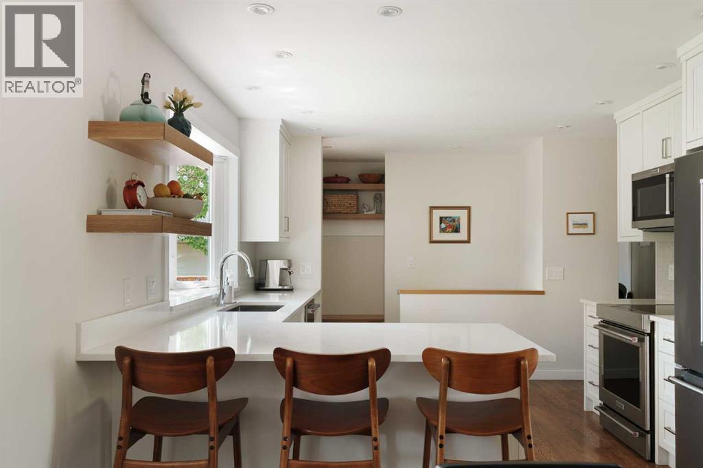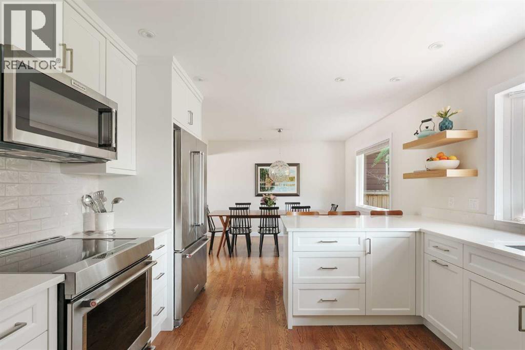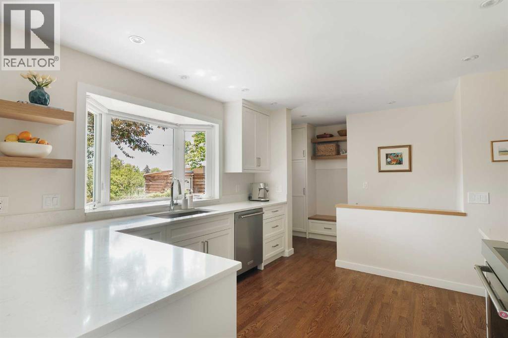 This updated bungalow situated in St. Andrews Heights, one of Calgary’s most established inner-city communities, spans a 6,049 sqft southwest lot. Inside you’ll see where timeless character meets elevated modern finishes. The redesigned kitchen features a peninsula layout, quartz countertops, stainless steel appliances, a garden window, white cabinetry, glossy subway tile, and open shelving. A custom mudroom area with built-in cabinetry sits just off the kitchen. Hardwood flooring flows across the main level, leading to three well-appointed bedrooms and a renovated full bath with quartz counters, coordinated cabinetry, and a sleek tiled shower. The lower level offers a spacious, inviting rec room anchored by a tiled gas fireplace, along with a combined laundry/bathroom area for added practicality. Outside, the private yard is framed by mature trees and features a hardscaped patio ideal for relaxed outdoor living. Set on a quiet, tree-lined street, this 1,271 sq ft bungalow enjoys a premier location steps from the Foothills Medical Centre, Alberta Children’s Hospital, University of Calgary, and McMahon Stadium. Residents benefit from nearby schools, such as Maria Montessori School and Briar Hill Elementary, off-leash parks, Bow River pathways, tennis and basketball courts, a skating rink, and sledding hill. With a 10-minute commute to downtown, easy access to local shops and restaurants, and a direct route to the mountains, this home offers an exceptional blend of lifestyle, convenience, and comfort. (31400526)