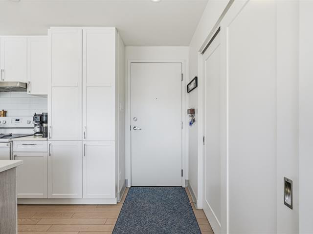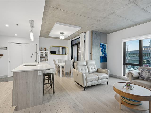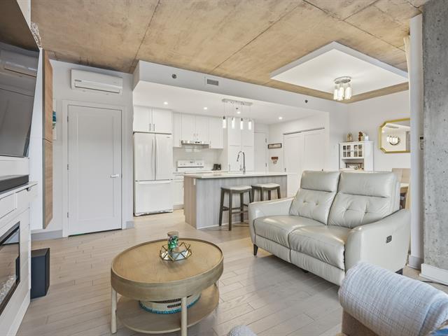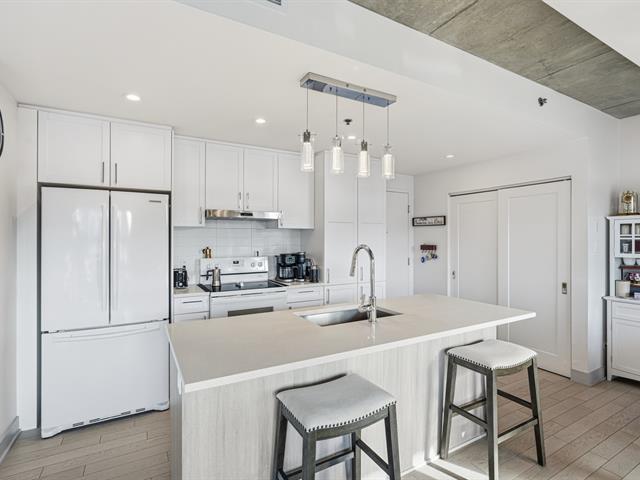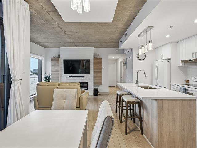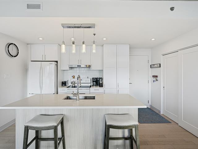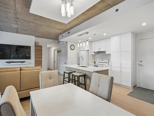 Welcome to this unit ideally located in the heart of Vieux-Longueuil. On the 3rd floor, it offers a direct view of downtown Montréal, Île Sainte-Hélène and its fireworks. The unit includes two bedrooms, one bathroom, a kitchen renovated in 2023 with high-end finishes, and large windows oriented toward the afternoon sun. Walking distance from essential services and less than one kilometre from the Longueuil terminal. The building offers a rooftop terrace with a swim spa, BBQs, gas fireplace, indoor lounge, gym, full security system, as well as an indoor parking space and a storage locker included. (54305606)