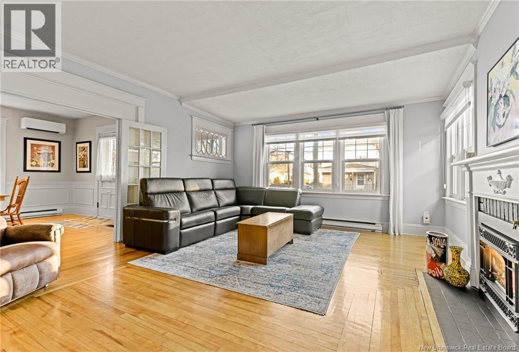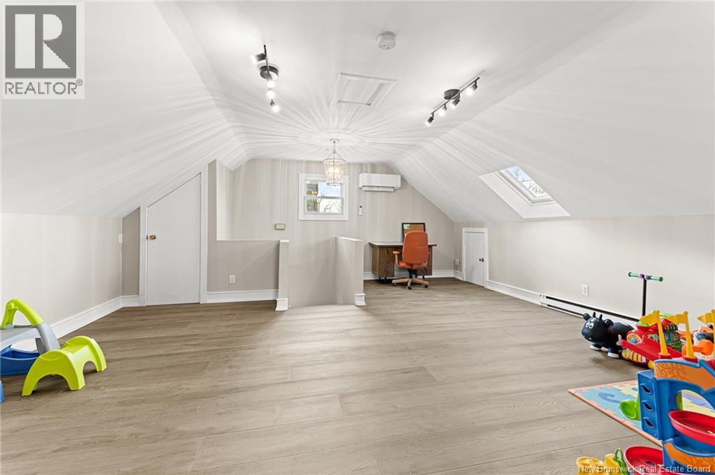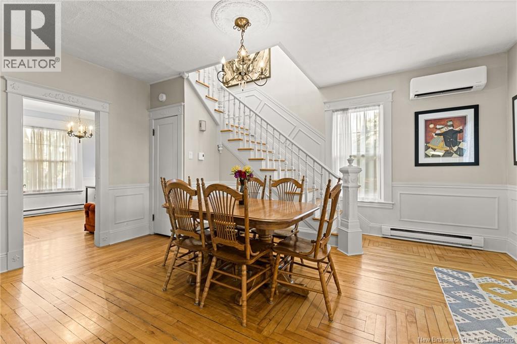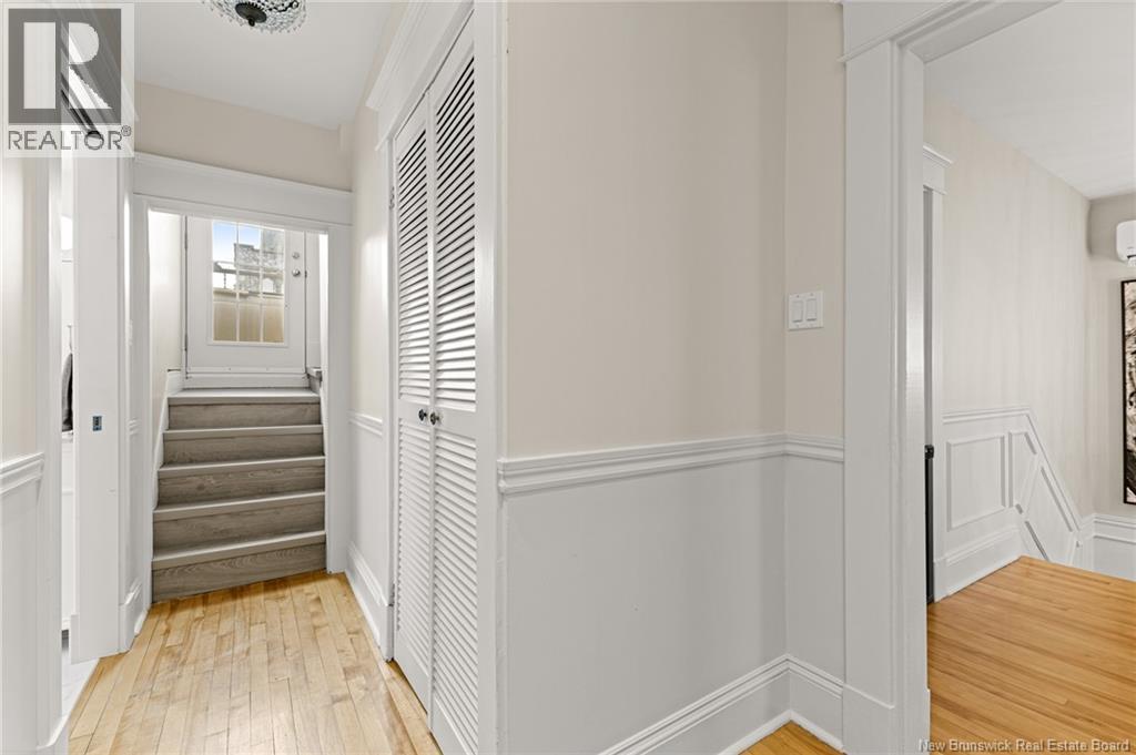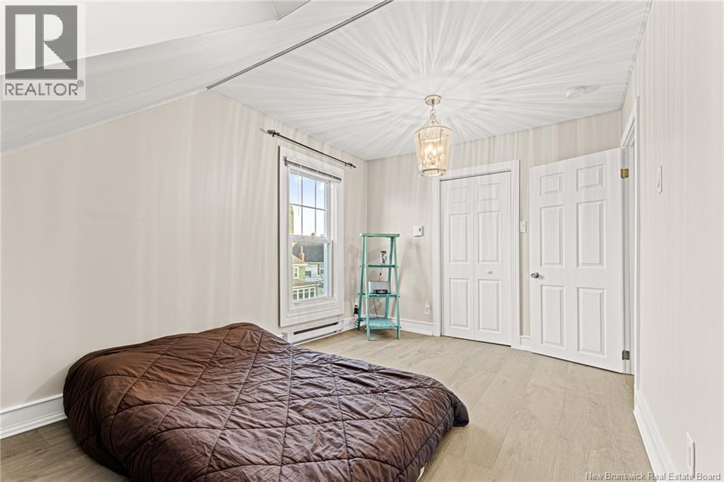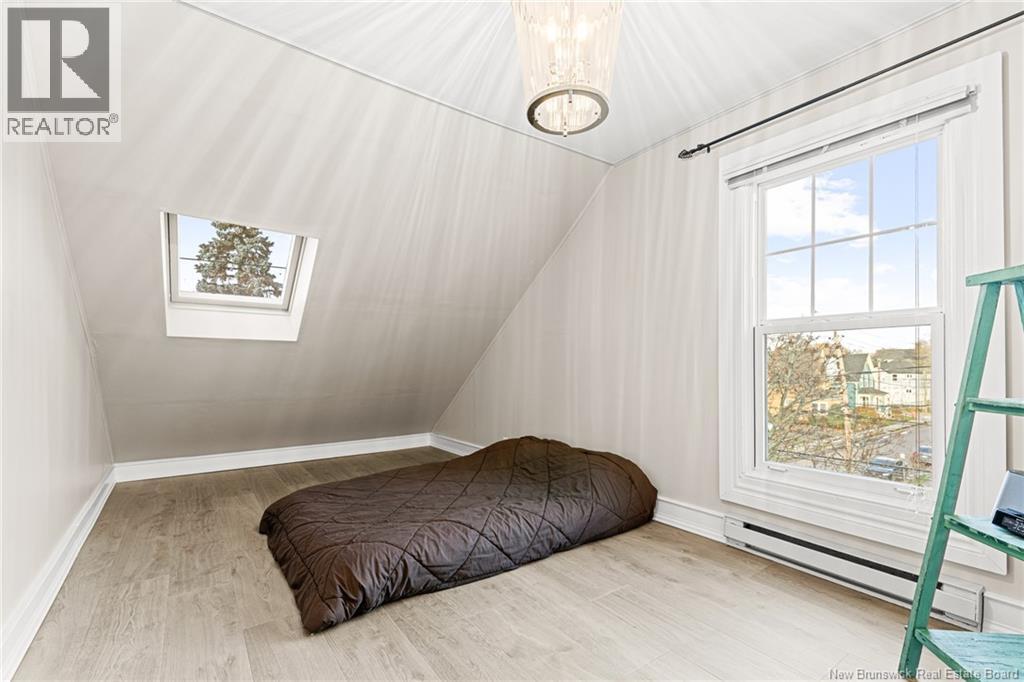 *** CHARMING DOWNTOWN 2.5-STOREY | CORNER LOT | 4 BRAND-NEW MINI-SPLITS | REFINISHED LOFT | TOP-LEVEL BALCONY | FENCED BACKYARD *** Welcome to 158 BONACCORD, ideally located in the heart of downtown Moncton, close to all amenities. This character home beautifully blends classic charm with modern updates. The main level welcomes you with a bright foyer/formal dining area featuring ELEGANT WAINSCOTTING AND DECORATIVE ACCENTS, leading through French doors to a sun-filled living room with a PROPANE FIREPLACE. This floor also offers a NEW MINI-SPLIT, a 2-piece powder room, a formal dining room currently used as an office, and an eat-in kitchen with dark-stained cabinetry and patio doors opening onto a LARGE DECK overlooking the FULLY FENCED BACKYARD with baby barn and mature landscaping. Upstairs, youll find another NEW MINI-SPLIT, a cozy sitting nook, ample storage, a spare bedroom, and a spacious primary bedroom with walk-in closet, leading to a stylish 4-piece bath with CUSTOM TILED SHOWER AND CLAWFOOT TUB. The top level is a true highlight, featuring a PRIVATE BALCONY WITH LOVELY VIEWS and a FULLY REFINISHED LOFT with BRAND-NEW FLOORING, fresh paint, NEW MINI-SPLIT, pot lights, skylights, flexible living space, and a third bedroom with large walk-in closet and cathedral views. The back staircase leads to this top level space which could be RENTED FOR AIRBNB due to its desirable downtown proximity. A must-see gem! (29260813)