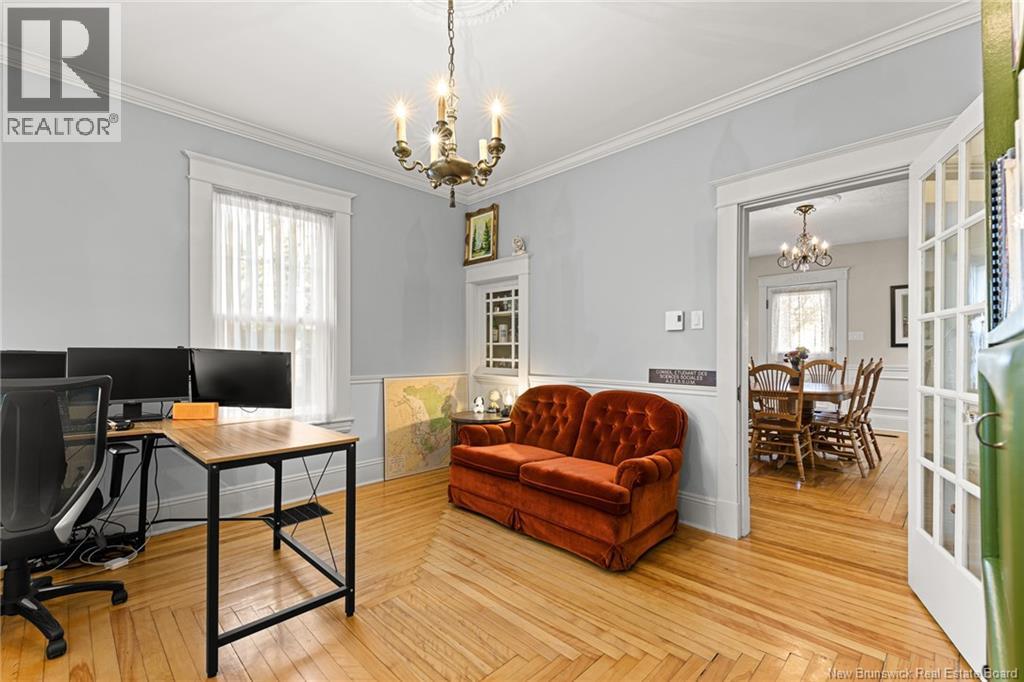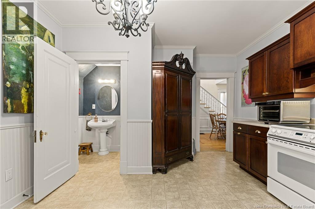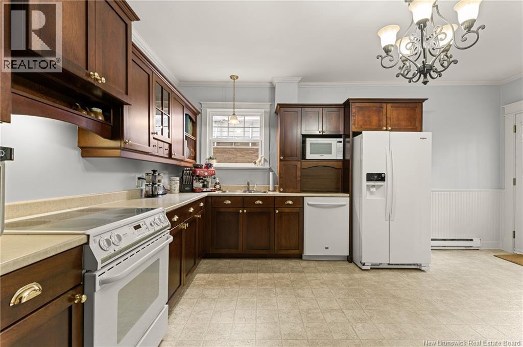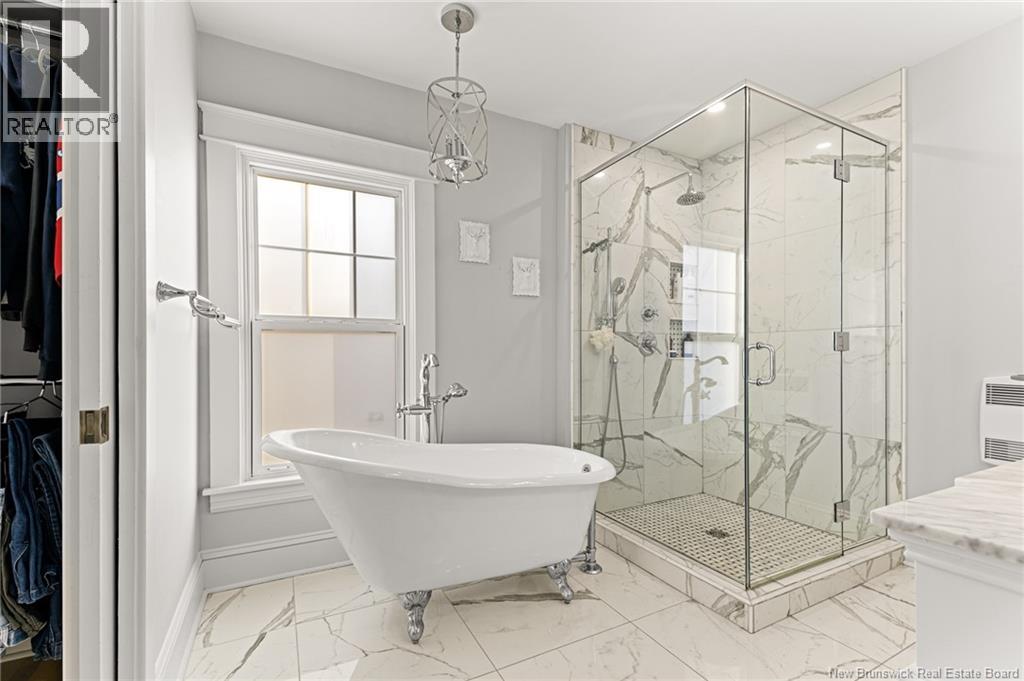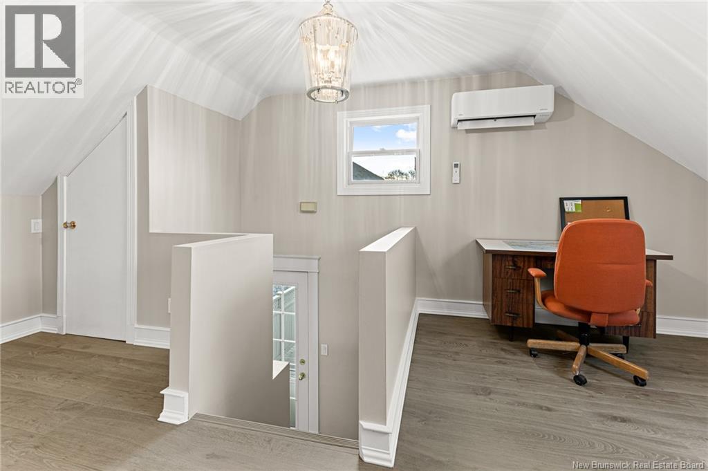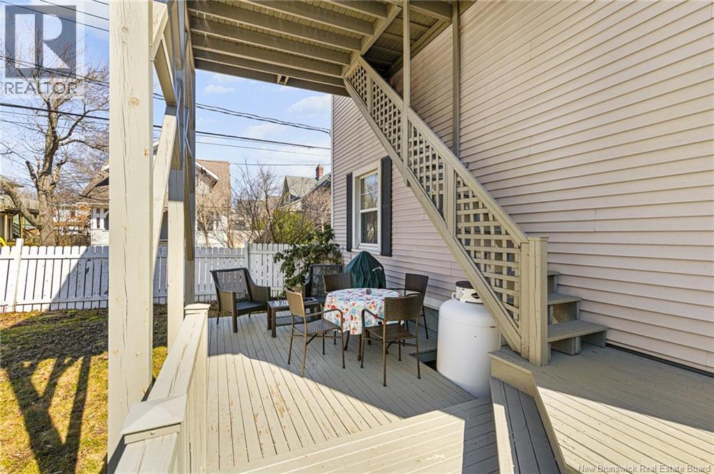 *** CHARMING DOWNTOWN 2.5-STOREY | CORNER LOT | 4 BRAND-NEW MINI-SPLITS | REFINISHED LOFT | TOP-LEVEL BALCONY | FENCED BACKYARD *** Welcome to 158 BONACCORD, ideally located in the heart of downtown Moncton, close to all amenities. This character home beautifully blends classic charm with modern updates. The main level welcomes you with a bright foyer/formal dining area featuring ELEGANT WAINSCOTTING AND DECORATIVE ACCENTS, leading through French doors to a sun-filled living room with a PROPANE FIREPLACE. This floor also offers a NEW MINI-SPLIT, a 2-piece powder room, a formal dining room currently used as an office, and an eat-in kitchen with dark-stained cabinetry and patio doors opening onto a LARGE DECK overlooking the FULLY FENCED BACKYARD with baby barn and mature landscaping. Upstairs, youll find another NEW MINI-SPLIT, a cozy sitting nook, ample storage, a spare bedroom, and a spacious primary bedroom with walk-in closet, leading to a stylish 4-piece bath with CUSTOM TILED SHOWER AND CLAWFOOT TUB. The top level is a true highlight, featuring a PRIVATE BALCONY WITH LOVELY VIEWS and a FULLY REFINISHED LOFT with BRAND-NEW FLOORING, fresh paint, NEW MINI-SPLIT, pot lights, skylights, flexible living space, and a third bedroom with large walk-in closet and cathedral views. The back staircase leads to this top level space which could be RENTED FOR AIRBNB due to its desirable downtown proximity. A must-see gem! (29260813)