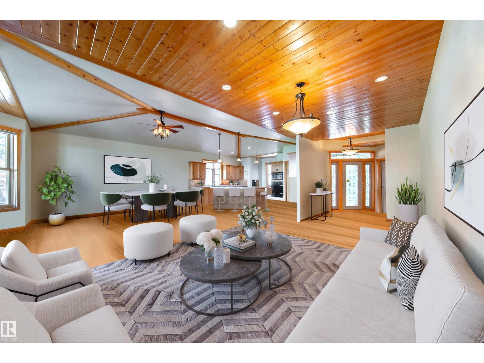 Lakefront Bungalow Retreat at Pigeon Lake!Enjoy year-round serenity in this beautifully upgraded lakefront property with stunning water views & a natural shoreline.Thoughtfully designed for comfort,relaxation & entertaining.This charming bungalow is the perfect escape for your weekend retreat or forever home that easily sleeps 10. Featuring an open concept,vaulted ceilings & textured walls,solid pine cabinets, baseboards,beams & ceilings.Granite countertops throughout with upgraded finishes & engineered hardwood flooring.Attached double heated garage with infloor heating. A detached spacious 357sqft guesthouse with 3-piece bathroom & a single attached heated garage. Over 80K in professional landscaping for low-maintenance living,composite decking & concrete landscaping blocks.Cement board siding & shingles 2 years old. Packed with first class amenities:Boating,Fishing,18 Hole Golf Course ,Playgrounds,Registered Kids Camps,Sailing Club,nearby restaurants & groceries. Some pictures virtually staged. (33602877)