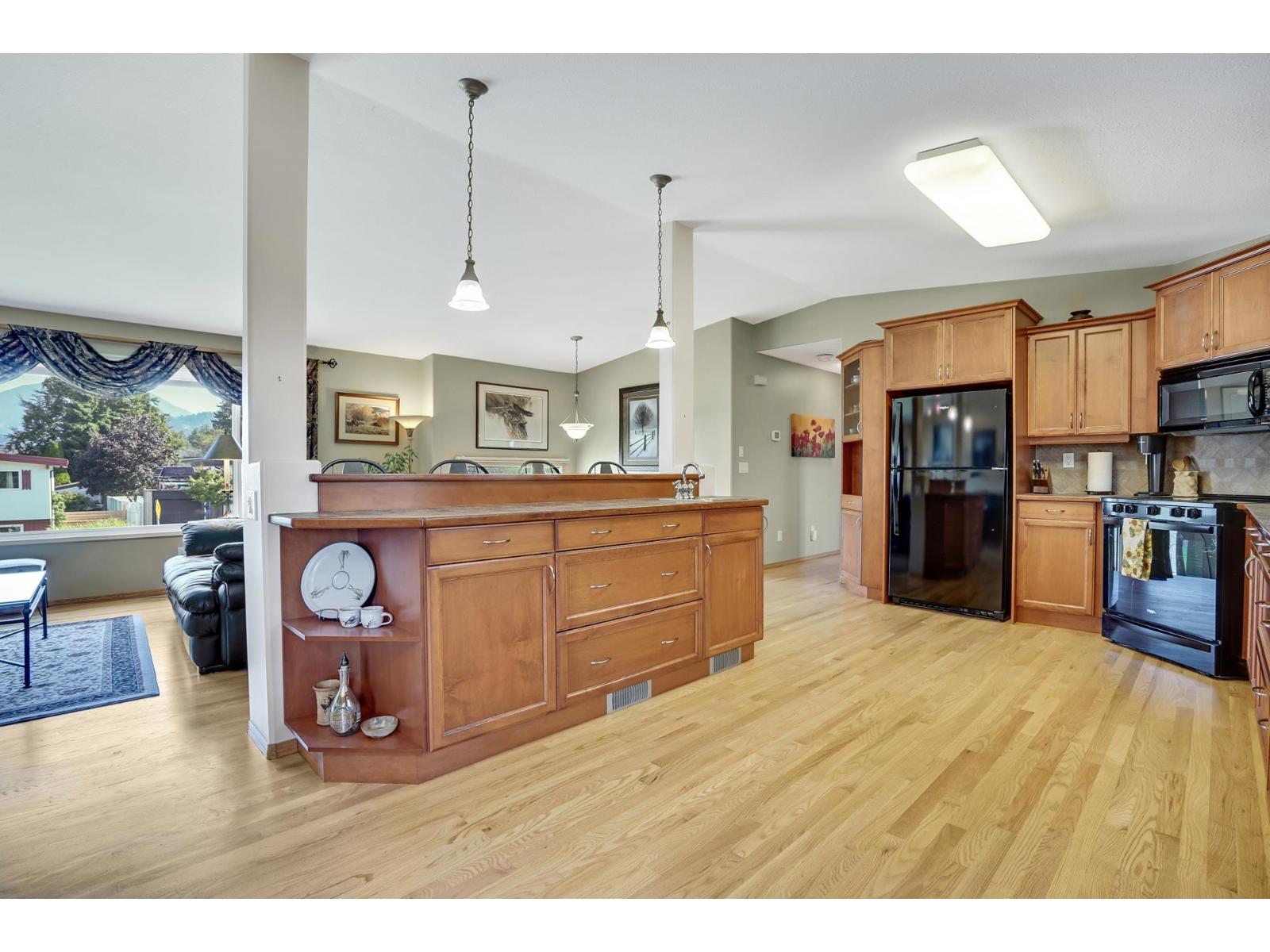 This is a meticulously maintained home in a fantastic SARDIS location BACKING ONTO WATSON PARK.Features a massive open concept kitchen w/breakfast bar, dining area & living rm w/newly refinished hardwood floors,vaulted ceilings & gas f/p. 3 beds up w/a gorgeous spa-like main bath w/a huge w-in shower & soaker tub. Down is the 4th bdrm, recrm w/a 2nd gas f/p, laundry w/sink,updated bath w/walk-in shower. Welcome to your own PRIVATE OASIS of a backyard w/a 12' privacy hedge, beautiful trees & plants w/pergola providing a serene setting w/complete privacy. There's an oversized covered deck for year round use-perfect for entertaining.Conveniently located within walking distance to Watson Elem, shops, restaurants, VEDDER RIVER & trendy GARRISON CROSSING. Furnace,fridge,dishwasher & W/D NEW 2024 * PREC - Personal Real Estate Corporation (32207293)