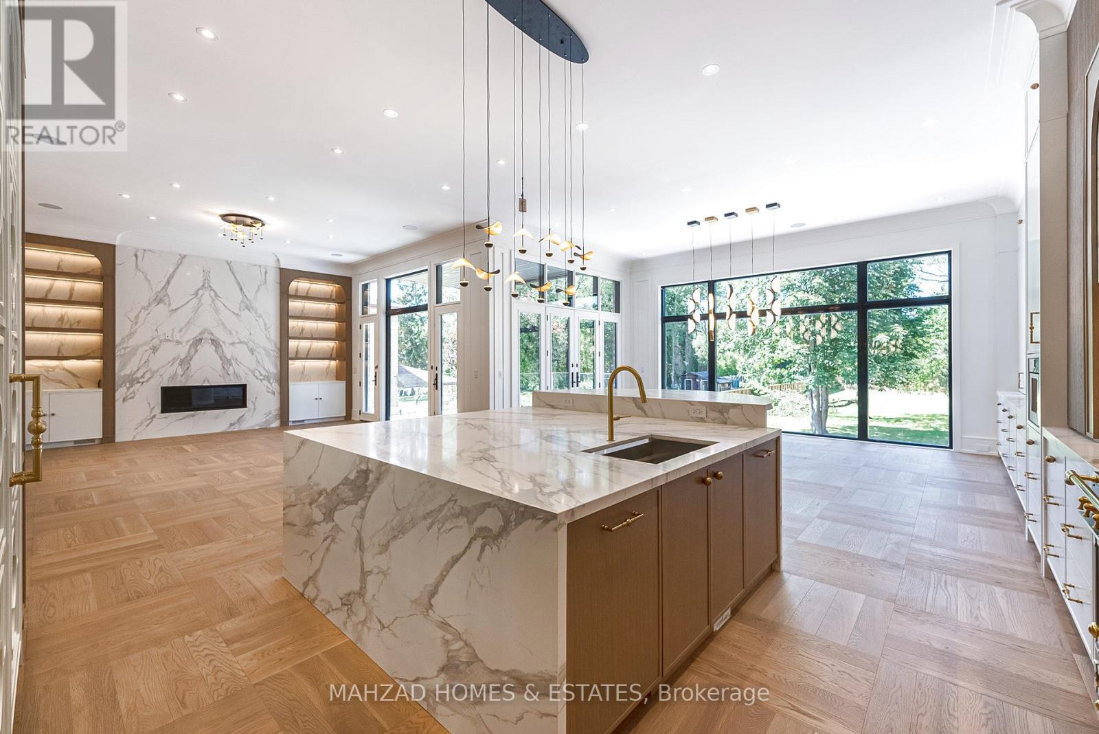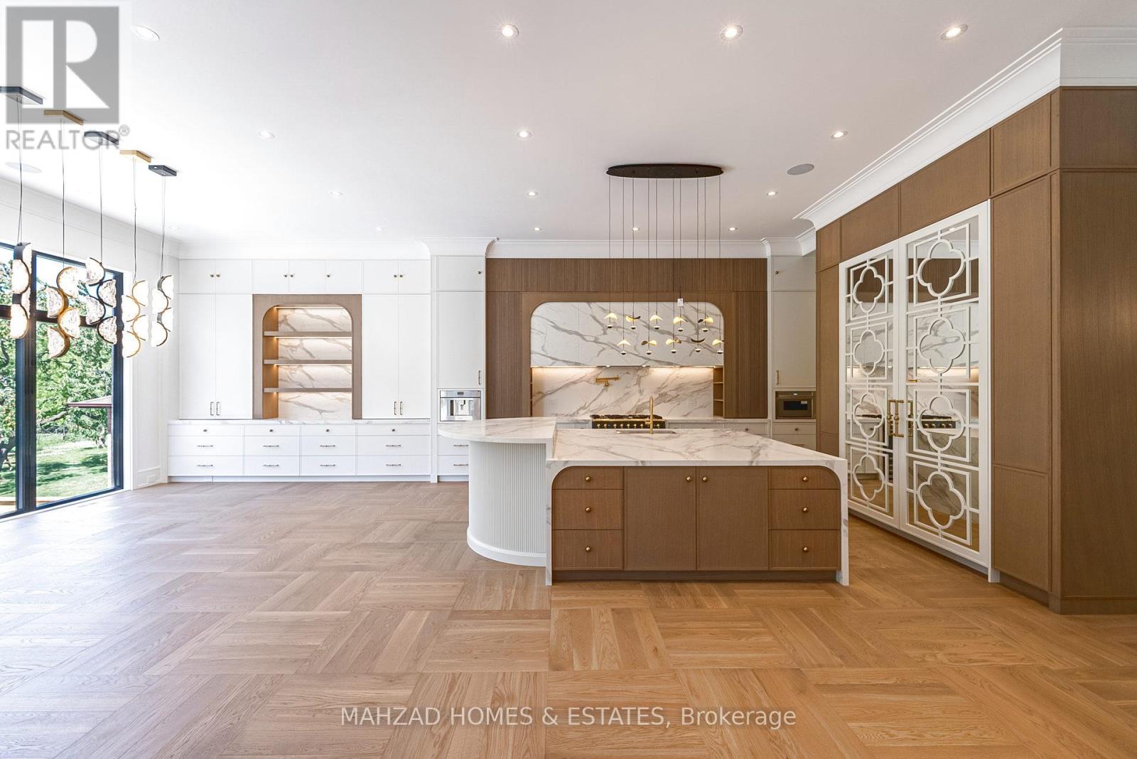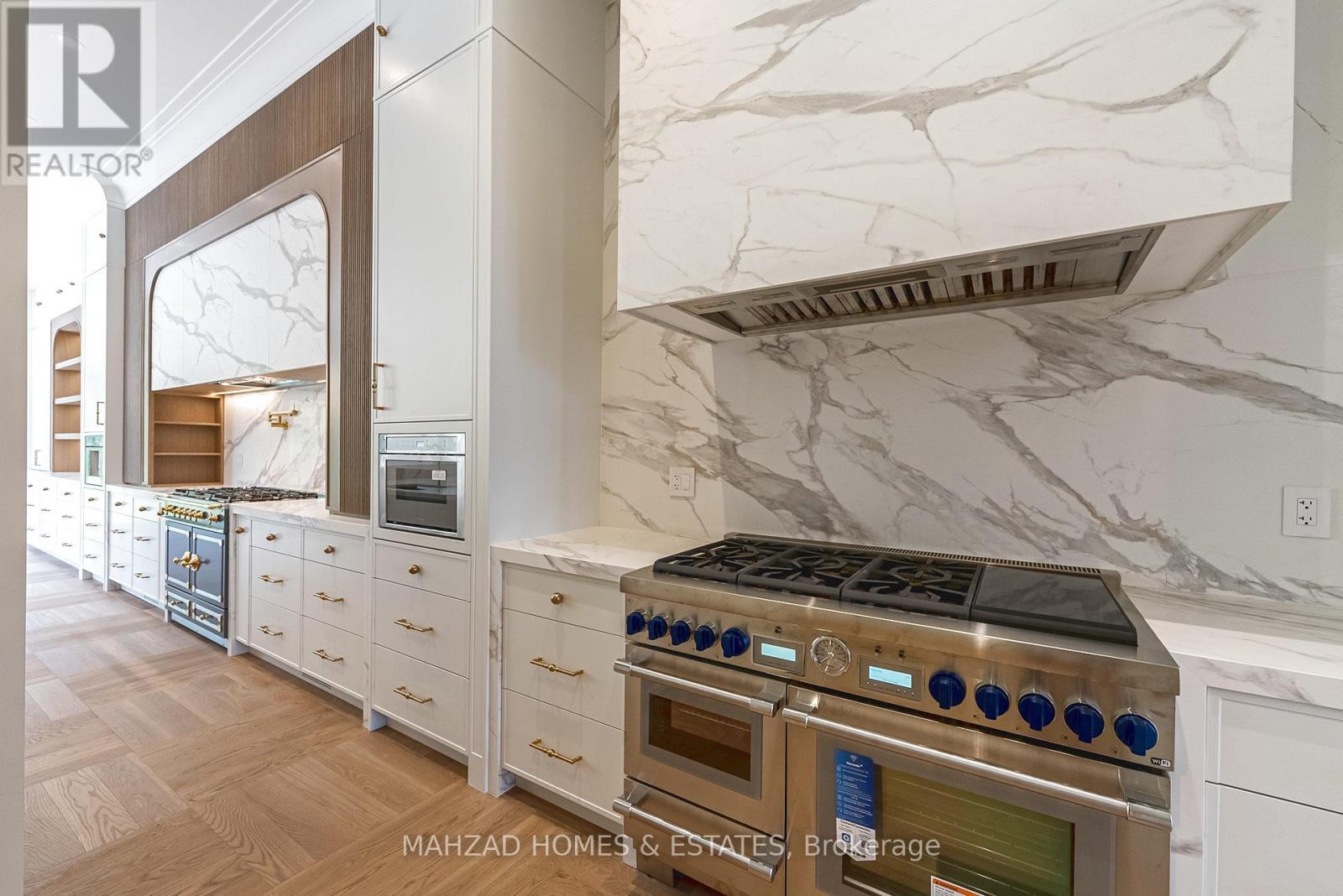 Exquisite Custom Estate in Prestigious South RichvaleCrafted by Mahzad Homes, this 50 feet wide sun-filled masterpiece offers 8000 sqft of refined luxury. Featuring soaring 12-ft ceilings, oversized windows, and elegant archways, the open-concept layout is both grand and inviting.The show-stopping kitchen is magazine-worthy a modern white oak and Calacatta marble dream, complete with a bar, oversized island, and full suite of German Thermador appliances in both the main and prep kitchens. Designed by an artist, the main gourmet kitchen is truly one of a kind.This home includes 5 spacious bedrooms with private ensuites, two laundry rooms, a luxurious mudroom, and a full-size elevator servicing all three floors. The basement is walk-out, with radiant heated floors, a stylish bar, home theatre, two extra bedrooms, and a large multipurpose room.Outside, enjoy an oversized covered concrete porch and a resort-style pool, surrounded by lush landscaping and extended grounds with potential to sever an additional lot in the future. The 3-car garage, snow-melt driveway, dual HVAC systems, and built-in smart features ensure seamless comfort.Located among Richmond Hills finest homes and steps from elite schools, golf, and amenities, this estate is a rare blend of craftsmanship, design, and future potential. (41715286)