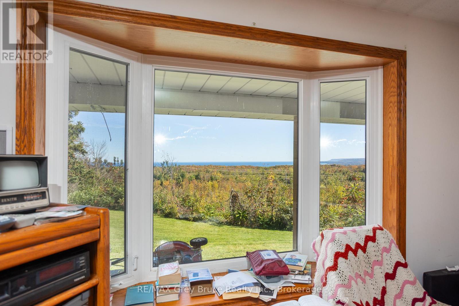 Discover the rare opportunity to own 78 acres perched high on sought-after Irish Mountain in the Township of Meaford, offering breathtaking panoramic views of Georgian Bay and the surrounding countryside. From sunrise over the water to rolling hills and farmland in every direction, the scenery is truly spectacular, and newer windows throughout the home allow you to take it all in from nearly every room. This two-storey home features a double garage, a large detached shop, and a layout full of potential. The main-floor features the kitchen which is open to the dining room and a breakfast nook as well has a main-floor office, convenient laundry room plus the living and additional family room. Upstairs, you'll find a spacious primary bedroom with a walk-in closet and ensuite, plus two additional bedrooms. The basement is unfinished and ready for development. While some cosmetic updates are needed, the property presents an exceptional chance to transform it into a stunning retreat. With its expansive acreage, incredible vistas, and prime location, this is a one-of-a-kind offering in beautiful Meaford. (41718313)