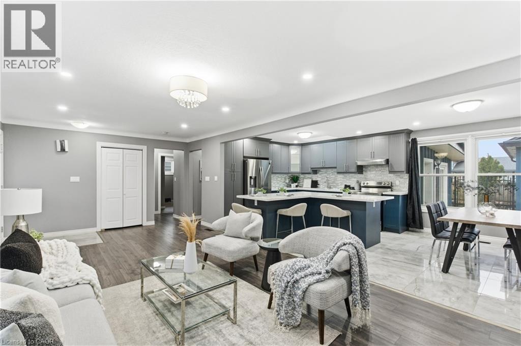 Welcome to 22 Colonial Street, a beautifully renovated 5-bedroom, 2-bath bungalow in a quiet, family-friendly pocket of North Welland. Just minutes from Niagara College, the Seaway Mall, and major amenities, this home combines convenience with serene suburban living. Inside, the open-concept main floor offers a bright and welcoming layout perfect for gatherings and everyday comfort. The spacious living area features a striking stone fireplace and large front window, flowing seamlessly into the modern kitchen with its stylish cabinetry, centre island, and abundant workspace. A stunning four-season sunroom with a circular skylight brings in natural light year-round and offers easy access to the fenced backyard, ideal for relaxing or entertaining. The fully finished lower level provides a complete in-law suite with its own kitchen, two bedrooms, and generous storage space, making it perfect for multigenerational families or added income potential. Additional features include a detached heated and insulated garage, new windows and roof (2023), and thoughtful upgrades throughout. A true move-in ready home that blends style, flexibility, and value. (69932977)