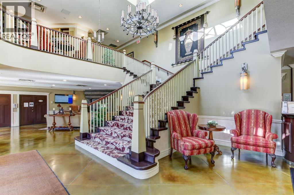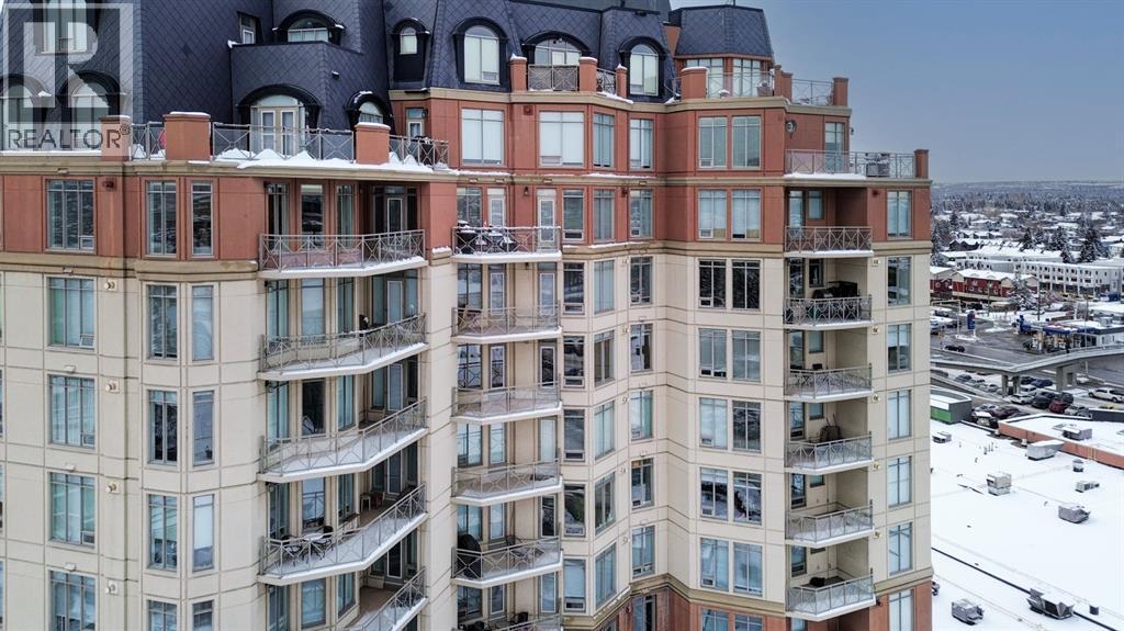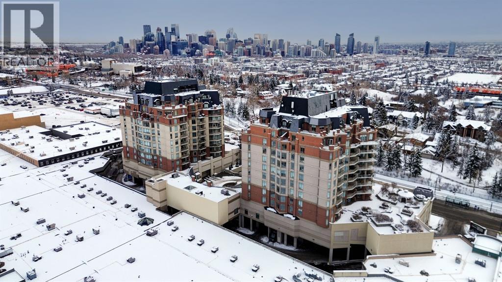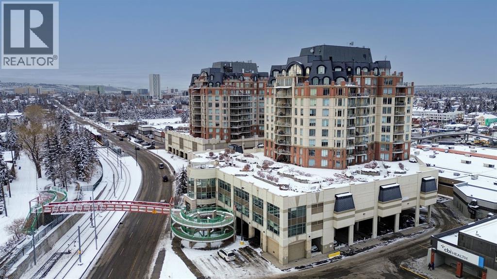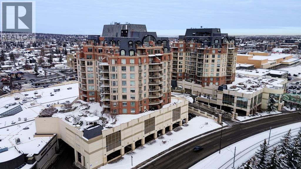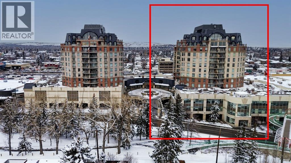 Welcome to the East Tower of the Renaissance 18+ condominium complex! This 2-bedroom, 2-bathroom condo has a very homey feel with hardwood floors, oak cabinets and a gas fireplace. The kitchen has stainless steel appliances, plenty of countertop area, and a cutout window that allows natural light into the kitchen from the large east facing living room windows and balcony door! There is a den conveniently located at the front door that has a coat closet. The living room and dining room areas have a bright and open concept. The spacious primary bedroom has access to the balcony that has an unobstructed view to the east. The 5-piece ensuite has a deep soaker tub, and a separate shower. A second bedroom offers private access to the 4-piece main bathroom with a stacked washer and dryer. This home also includes one titled, heated underground parking stall. The assigned storage unit is located on the main floor. Residents of the Renaissance enjoy exclusive access to amenities, including a 24 hour concierge, fitness centre, games and craft rooms, a movie theatre, meeting room, outdoor terrace, and guest suite. There is an elevator with direct indoor access to North Hill Shopping Centre. The Lions Park C -Train station is nearby. Easy access to downtown, SAIT, Jubilee Auditorium, and 16th Ave. Call your favourite Realtor to view this lovely property. Click on the 3D symbol at the top of the listing page to view the entre virtual tour. (31416685)