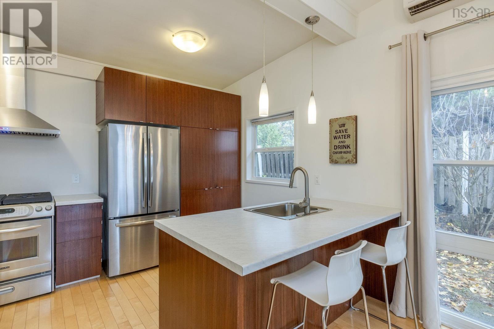 Prepare to be charmed by this stunning mid-century modern home, where vintage vibes meet modern comforts. This beauty is ready for its new ownersmaybe its you, if you play your cards right! Imagine yourself waking up each day in a place where this is your lifestyle. Located at the end of a quiet street, this property quietly boasts its fabulousness. The open-concept main floor feels light and airy. The wood stove insert is perfect for those cozy evenings when you want to make hot cocoa and watch the snow fall outside the wall of windows! The sleek solid-surface counters in the kitchen are not just for showtheyre begging for you to whip up some culinary masterpieces! Whether youre channeling your inner chef or simply assembling a crudité platter, this kitchen has got your back! With two delightful bedrooms upstairs and an extra bedroom down with a luxurious walk-in closet, this home fits a variety of lifestyles. The 2.5 baths mean no one is fighting for bathroom time in the morningthats a win for anyone with a busy schedule or teenagers! Dont forget the lower level! The spacious family room with full wood stove is perfect for family movies, cozy gatherings, and game nights! You'll love the added convenience of a full bath shared with the laundry, and a full bedroom! Speaking of cozy, the private fenced yard is the pinnacle of peacefulness. Perfect for lounging, barbecues, or letting your imagination run wild with garden dreams. And lets not forget the double detached garage with an adjoining carportideal for keeping your cars happy and sheltered, or maybe it's just a grand place to store all the things you absolutely need to tuck away out of the weather. So much warmth and personality radiate from this homeit practically invites you in for a warm hug. With its well-cared-for history and some stylish upgrades, this mid-century gem truly Feels Like Home! (231673783)