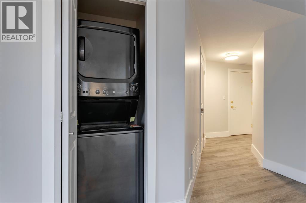 Available for immediate Possession! Freshly painted, substantially renovated 2 bedroom, 2 bathroom corner unit in Downtown West End. Very spacious, open concept with bright sunny west exposure & lovely river valley plus downtown views. Low maintenance laminate flooring throughout. Large peninsula kitchen with modern white cabinetry, quartz countertops, breakfast bar, stainless appliance package & a lovely window over the kitchen sink! Steps to the C-train free fare zone. This building offers security, concrete construction, underground parking plus fitness room. Walk to Kensington in 10 minutes, enjoy the Bow River pathway, restaurants and shops. (31420504)