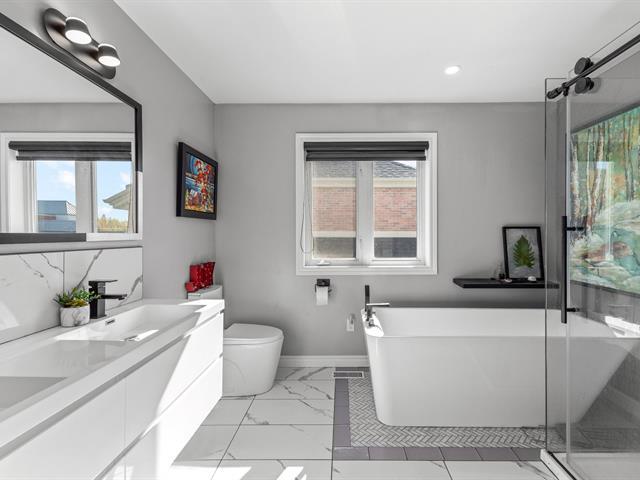 Superb, well-maintained family home in a sought-after neighbourhood, steps from Margaret Manson Elementary and near shops, parks, restaurants and cinema. Bright open-concept layout, two living rooms with wood-burning fireplace, renovated bathrooms, finished basement with family room, office, 4th bedroom and gym. Large landscaped backyard with inground saltwater pool and gardens. Double garage and beautiful curb appeal. Move-in ready--comfort, space and location all in one! (57691862)