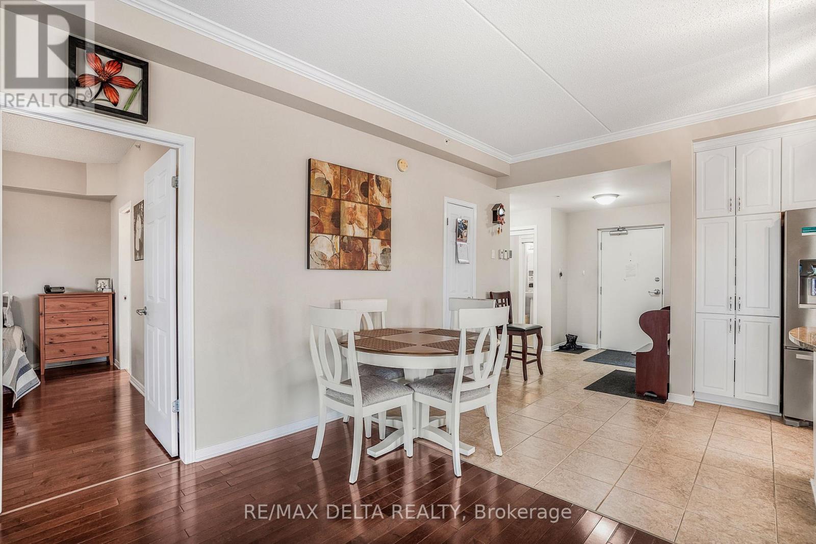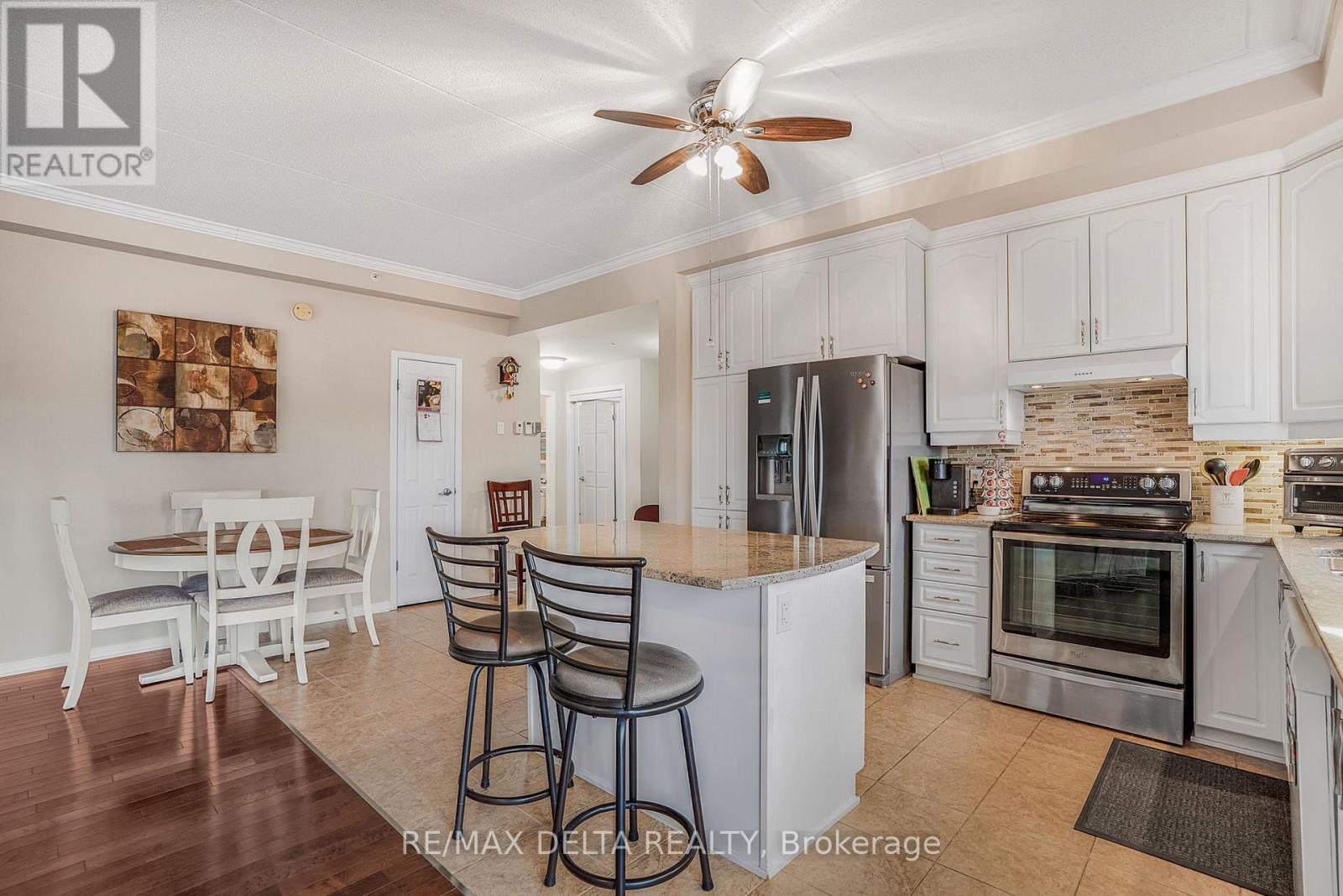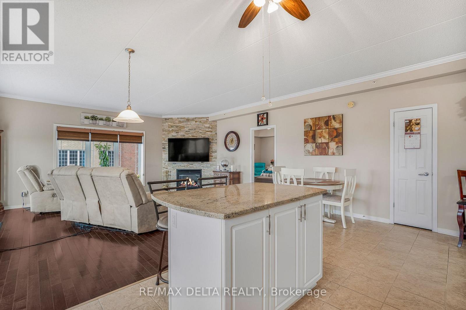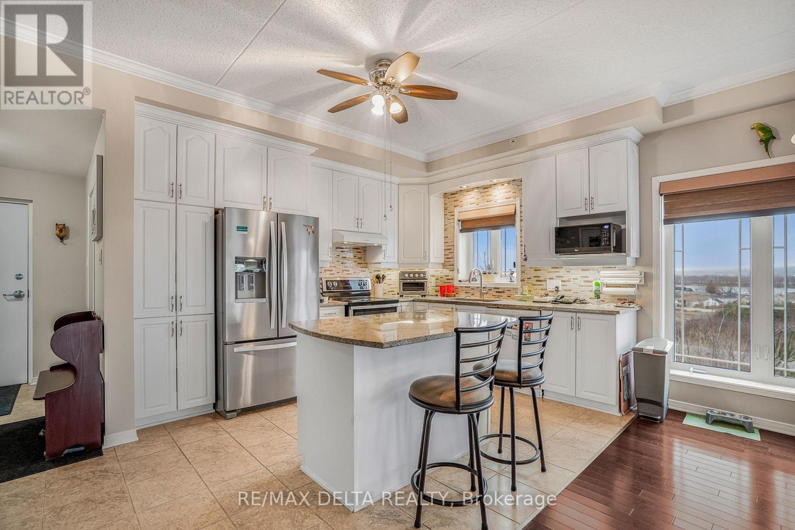 Welcome to this beautifully maintained northeast-facing 2-bedroom corner condo, offering breathtaking views of the river and mountains. Featuring hardwood and ceramic tile flooring throughout, this spacious and inviting unit is perfectly situated close to a variety of amenities.Step into a bright open-concept living space that includes: a spacious kitchen with abundant cabinetry and counter top space, a warm and welcoming living room with a natural gas fireplace, a dining area with patio doors leading to a generously sized balcony-perfect for relaxing. The large primary bedroom includes a walk-in closet and a full ensuite bathroom equipped with a step-in bathtub, thoughtfully designed for accessibility and safety. The second bedroom makes an ideal home office, guest room, or hobby space.A 3-piece main bathroom combined with a convenient in-unit laundry/mechanical room complete this well-laid-out condo. Additional features include: Heated underground garage parking (space #6), locker #38 for extra storage and elevator and secure intercom system. All appliances included in the asking price. As per Form 244: 24 hours irrevocable on all offers; Seller may respond sooner. Don't miss your chance to own this bright, comfortable, and ideally located condo with stunning views and exceptional features. Must be seen! (41743244)