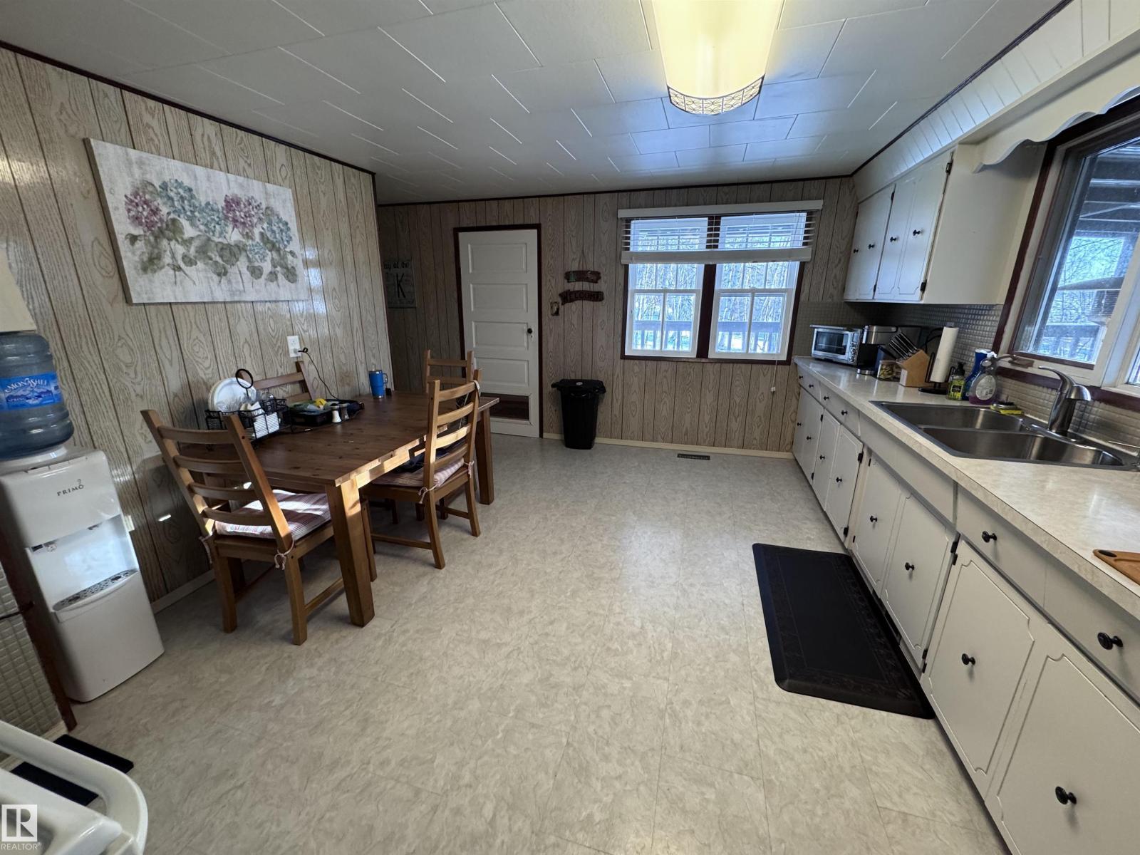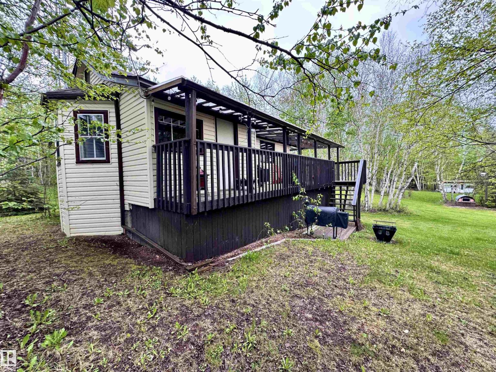 Set on a half-acre lot in the County of Two Hills, this move-in ready home offers both comfort and convenience. A well-maintained, insulated/heated 2 car garage with remote access adds practicality! Inside, the main floor showcases beautiful views of the area, featuring a bright kitchen and dining area, a cozy living room, a 3pc bathroom, and two spacious bedrooms. A staircase leads to a versatile flex space, perfect for guests or hobbies. The backyard is a private retreat with a deck ideal for morning coffee, patio seating nestled closer to nature for evening relaxation, a treed driveway, firepits, and sheds for storage or outdoor equipment. Recent upgrades include new shingles, a high-efficiency furnace, hot water tank, appliances, a new deck, and heat tracing on the roof overhang. This property blends modern updates with serene surroundings, making it the perfect all-season getaway. Furniture and outdoor items negotiable. (33623901)