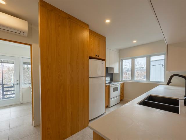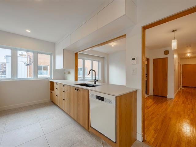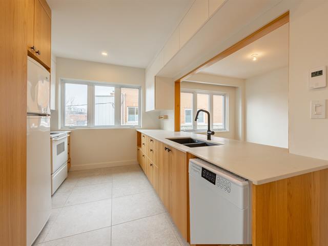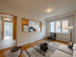 Stunning renovated 4 1/2 apartment located on one of Ahuntsic's most desirable streets, steps from Promenade Fleury and its amenities. The apartment features 2 bedrooms, a bathroom, an open-concept kitchen-living-dining area, a perfect office nook, and ample storage space in the basement. (49673651)
