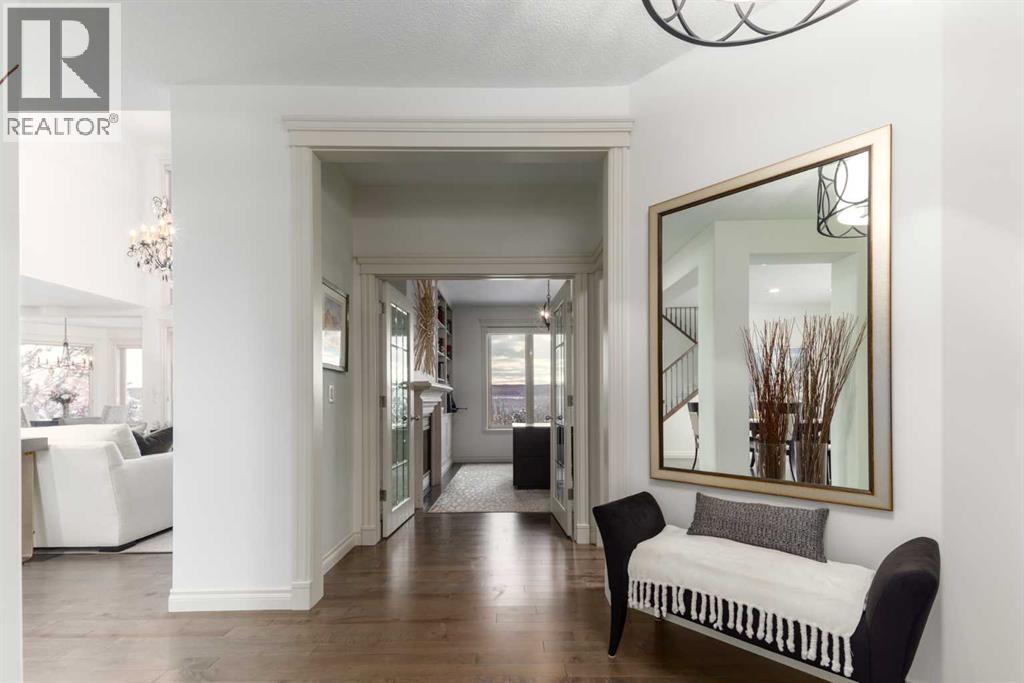 Tucked into one of the most coveted areas in Discovery Ridge is 33 Discovery Rise SW. Backing onto Griffith Woods Park & the Discovery Ridge Ponds, this beautifully updated South facing walkout home offers year-round views & daily connection to nature that is rarely found in the city. From glowing West sunsets & summer sun showers to winter mornings & dramatic seasonal skies, the scenery is always changing. Rocky Mountain views to the West paired with sweeping Elbow River valley landscapes delivers a rural feeling with the perks of city living. The front entrance is thoughtfully arranged with a private main-floor office tucked away alongside an elegantly updated powder room. As you enter, you are met with solid hardwood floors flowing throughout the main level, complemented by stain resistant carpet upstairs. The open concept main floor is designed for gathering, blending the kitchen, dining spaces, & living area into one cohesive experience. The great room boasts soaring ceiling heights featuring coffered details with oversized windows framing the stunning views. A striking fireplace finished in sleek tile is double sided to the office & a statement crystal chandelier adds elegance & warmth. Enjoy your updated gourmet kitchen featuring granite countertops, trendy tile backsplash, updated appliances, a spacious pantry, & refreshed two-tone cabinetry. A curated outdoor living space with glass inserts preserving open sightlines, low maintenance Duradek, & a motorized retractable awning come together to provide the perfect setting to get some shade from Calgary’s renowned sunny days or enjoy sun showers & electrical storms. Upstairs, an ideal family layout open to the lower level includes three bedrooms filled with natural light. The primary retreat captures South exposures & West evening glow. The thoughtfully updated ensuite includes a quartz topped dual vanity, stand alone soaker tub, heated floors, & a glass enclosed shower with floor-to-ceiling luxurious tile & a wood accent bench. This leads directly into your custom walk-in closet featuring plenty of hanging, drawers, & open cabinetry to display your favorite designer pieces. The two additional spacious bedrooms are complemented by a 4-piece bathroom, ideal for family & guests. Enjoy the walkout lower level adding remarkable flexibility with radiant in-floor heat, a dedicated fitness room, fourth bedroom, a 4-piece bathroom, & an open media/family space with room for a games area & future bar potential. The triple attached garage provides ample space for vehicles, storage, & seasonal gear. High efficiency furnaces, 2 A/C units, Nest thermostats, humidifiers, an air purification system, & central vacuum provide comfort & ease year-round. All of this is set within one of Calgary’s most desirable, nature connected communities with direct access to pathways & Griffith Woods. Enjoy the lifestyle, quick access to Westhills, downtown, & top tier schools. (31434117)
