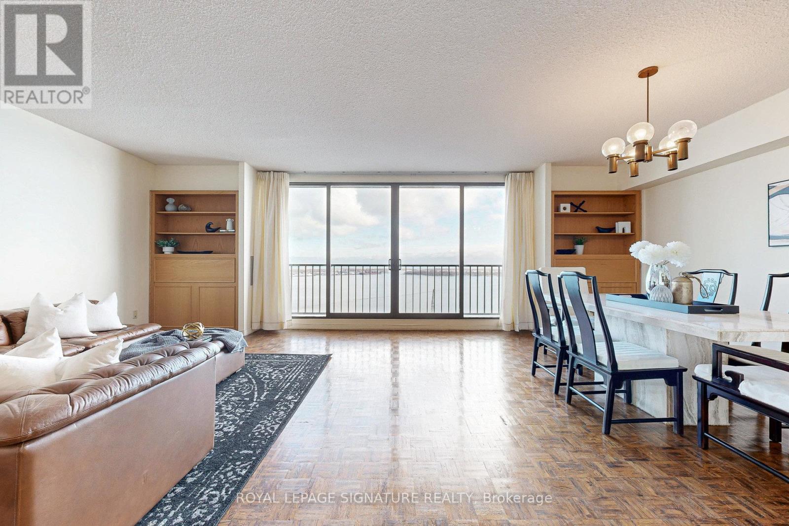 An incredible opportunity to create your own aesthetic masterpiece with this two-level Waterfront condo in the highly sought after Harbour Square complex. This spacious suite offers breathtaking, unobstructed, panoramic views of the lake from the main level, and a vibrant city vista from the oversized bedroom. 1,047 sq ft of functional space, with floor-to-ceiling windows and a large Juliette balcony. Loads of natural light, creating a bright, inviting atmosphere throughout. Residents enjoy extensive five-star amenities: 24/7 concierge/security, fully equipped fitness centre w/ Peloton bikes, indoor saltwater pool w/ walk out to an outdoor deck overlooking the lake, sauna, massive rooftop terrace w/ BBQ & picnic area, gardens and park, children's playroom, library, squash courts, an impressive lakeside Party Room, car wash and vacuum bays, a hobby room, and a rare downtown shuttle bus service. Prime location-just steps to Union Station, GO, PATH, Financial & Entertainment Districts, Jack Layton Ferry Terminal to Toronto Islands, Harbourfront Centre, Scotiabank Arena, Rogers Centre, Sugar Beach, boardwalk/ trails, dining, cafés, shopping and much more! Ample visitor parking. Maintenance fees include all utilities [heat, hydro, water] and Bell Fibe Cable + Internet. What truly sets this building apart is its people - at 33 Harbour Sq, you'll find a genuine sense of community, where neighbours look out for one another and take pride in calling this place home! (41761729)