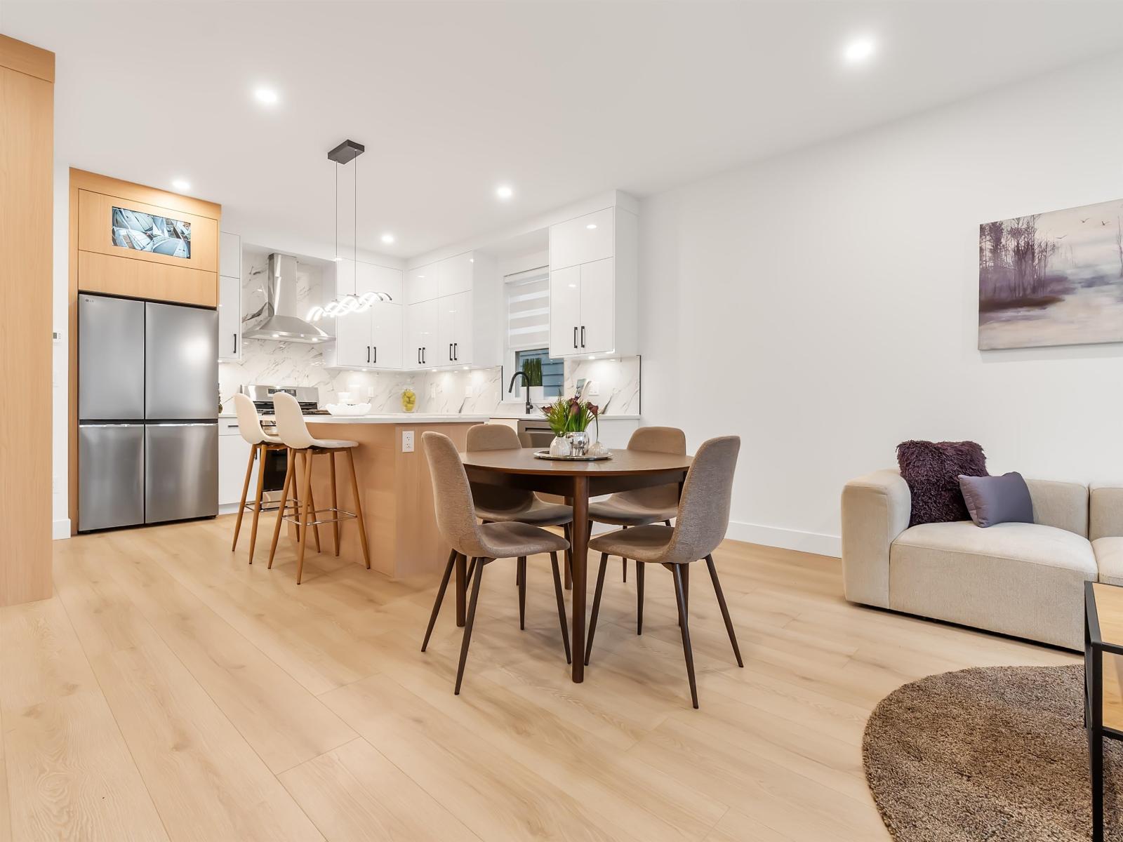 Presenting ALARA II by Symbolic Construction Group. This exclusive collection of front and back duplex homes offers luxury living without the burden of STRATA FEES. Each front unit is a 4 bed, 4 bath residence, thoughtfully crafted w/high-end finishes, featuring 9 ft ceilings throughout, expansive windows for abundant natural light, quartz countertops, premium appliances, built-in entertainment unit & security. AC & energy efficient natural gas heating built with STEP CODE 4 in mind. Tiled baths & elegant accent walls add a sophisticated modern touch. Enjoy 3 spacious levels of living, complete w/a large recreation room, a full bathroom, & an additional bedroom perfect as a mortgage helper! The detached garage is equipped w/220 volt power. Don't miss the chance to secure your dream home! (32236885)