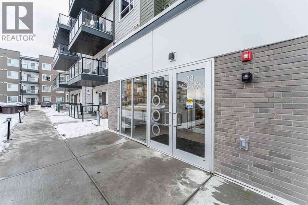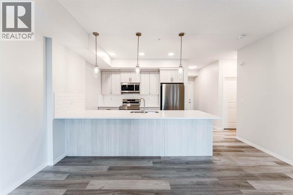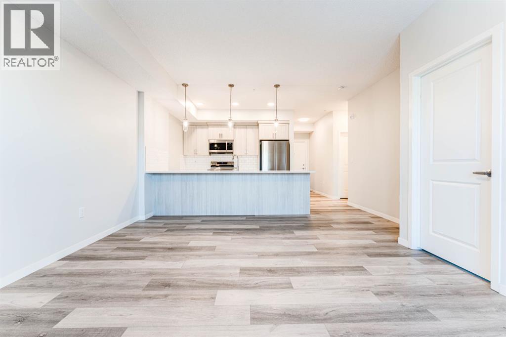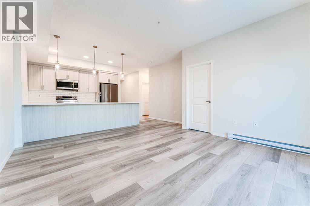 Welcome to this beautifully appointed 2-bedroom, 2-bathroom condo, perfectly located in the vibrant community of Carrington. Designed with a blend of modern style and everyday practicality, this bright, spacious home is ideal for first-time buyers, downsizers, or investors.Step into an open-concept floor plan highlighted by 9-foot ceilings and luxury vinyl plank flooring that flows throughout. Large windows fill the space with natural light, creating a warm and inviting atmosphere perfect for relaxing or hosting friends.The contemporary kitchen stands out with its full-height cabinetry, sleek quartz countertops, stainless steel appliances, and a large island with seating—ideal for casual dining or entertaining. The unit also includes titled underground parking for added convenience.The living area flows effortlessly onto a private balcony, offering a quiet space for your morning coffee or evening downtime. A thoughtful split-bedroom layout provides exceptional privacy—great for roommates, guests, or a dedicated home office.Both bedrooms are generously sized, with the primary suite featuring a walk-through closet and a modern ensuite. A second full bathroom and an oversized laundry/storage room add even more comfort and functionality.Located just steps from beautiful parks, walking paths, and Carrington’s growing mix of shops and amenities, this condo also offers quick access to Stoney Trail and Deerfoot Trail, making travel across Calgary simple and convenient.Stylish, practical, and perfectly situated—this Carrington condo is ready for its next owner. Book your private showing today. (31438780)